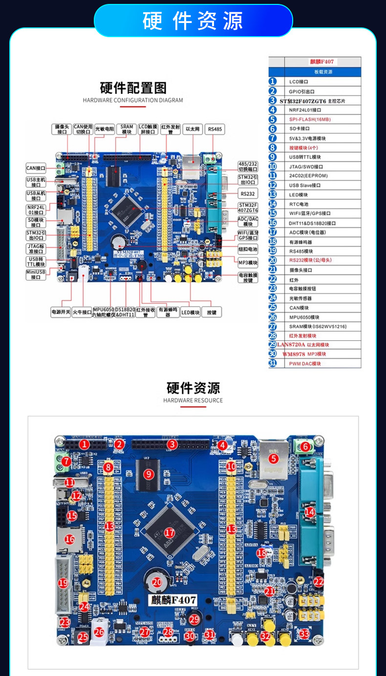 Puzhong War God Kirin Tianma Stm32F407Zgt6 Development Board Embedded Arm Kit Stm32 Expansion