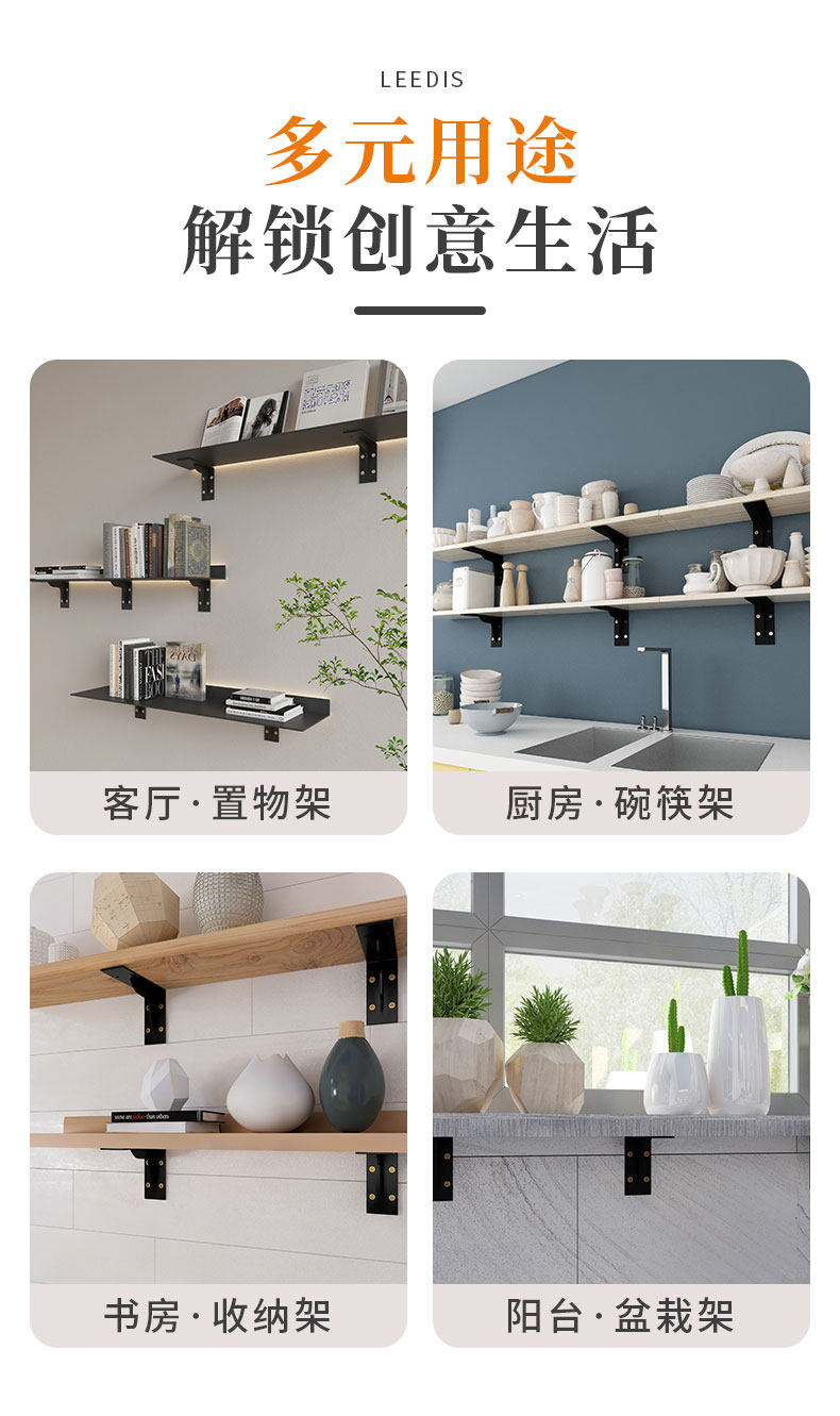 Triangular Support Bracket, Thickened Load-Bearing Bracket, Wall-Mounted Shelf, Hanging Cabinet Shelf Support, Fixed Right-Angle Bracket, Angle Iron