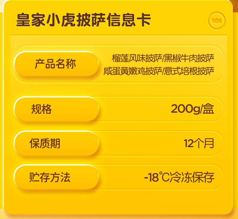 Royal Little Tiger Durian Pizza Semi-Finished Product Ready-To-Heat Ingredients Children's Breakfast Pizza Base Air Fryer Pizza