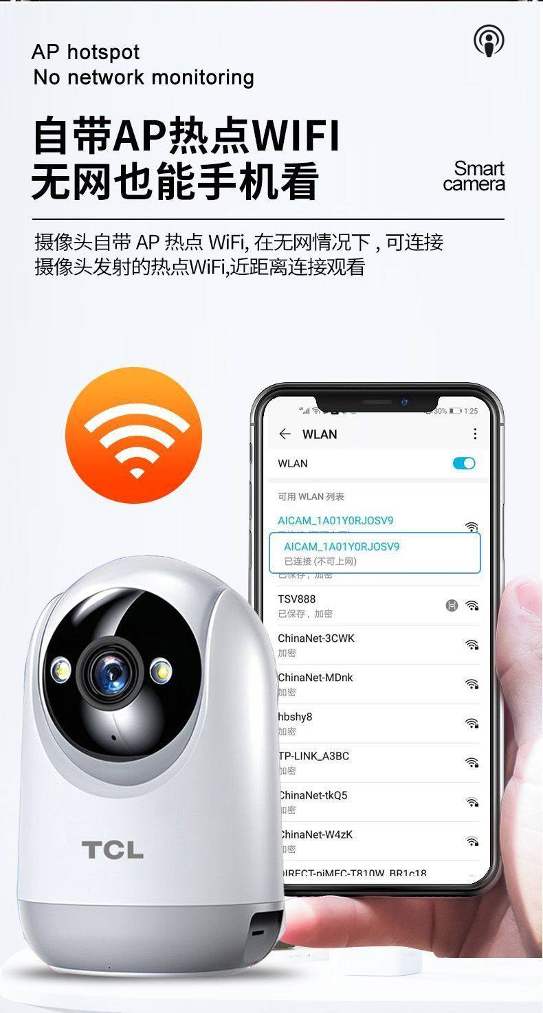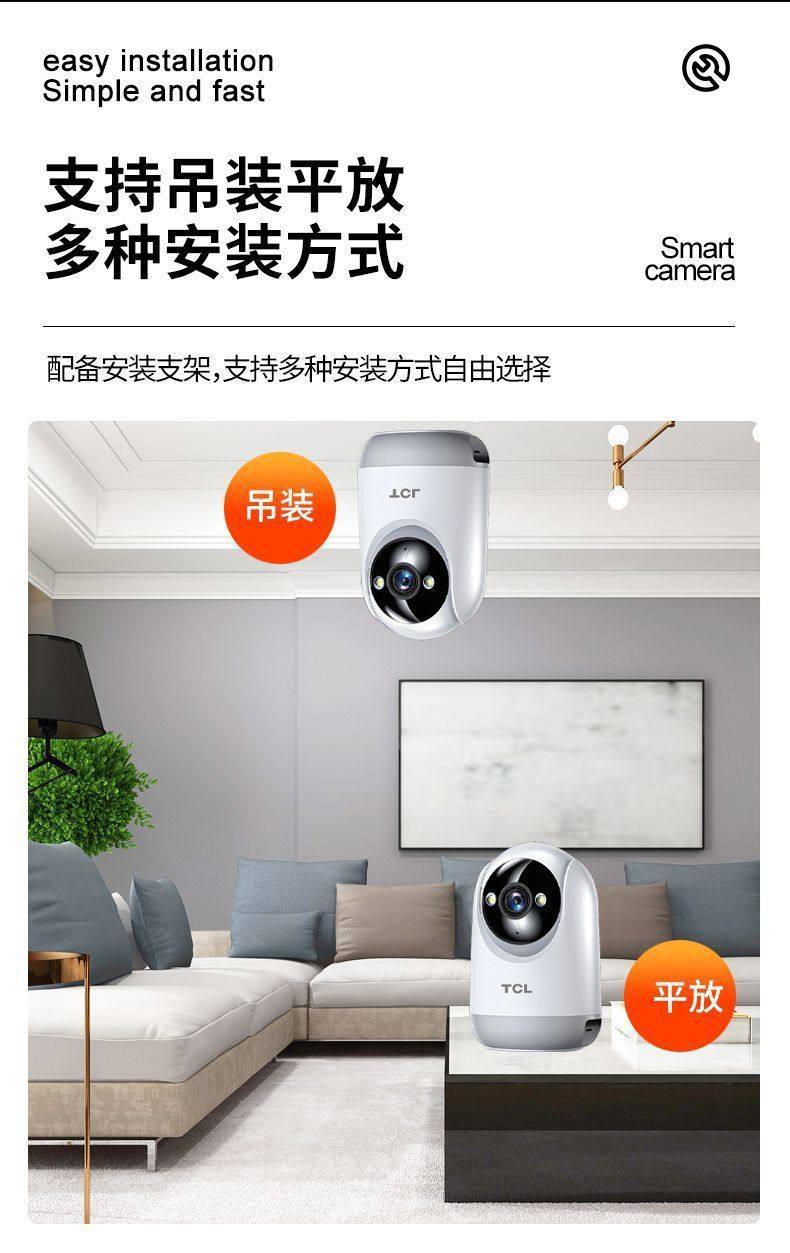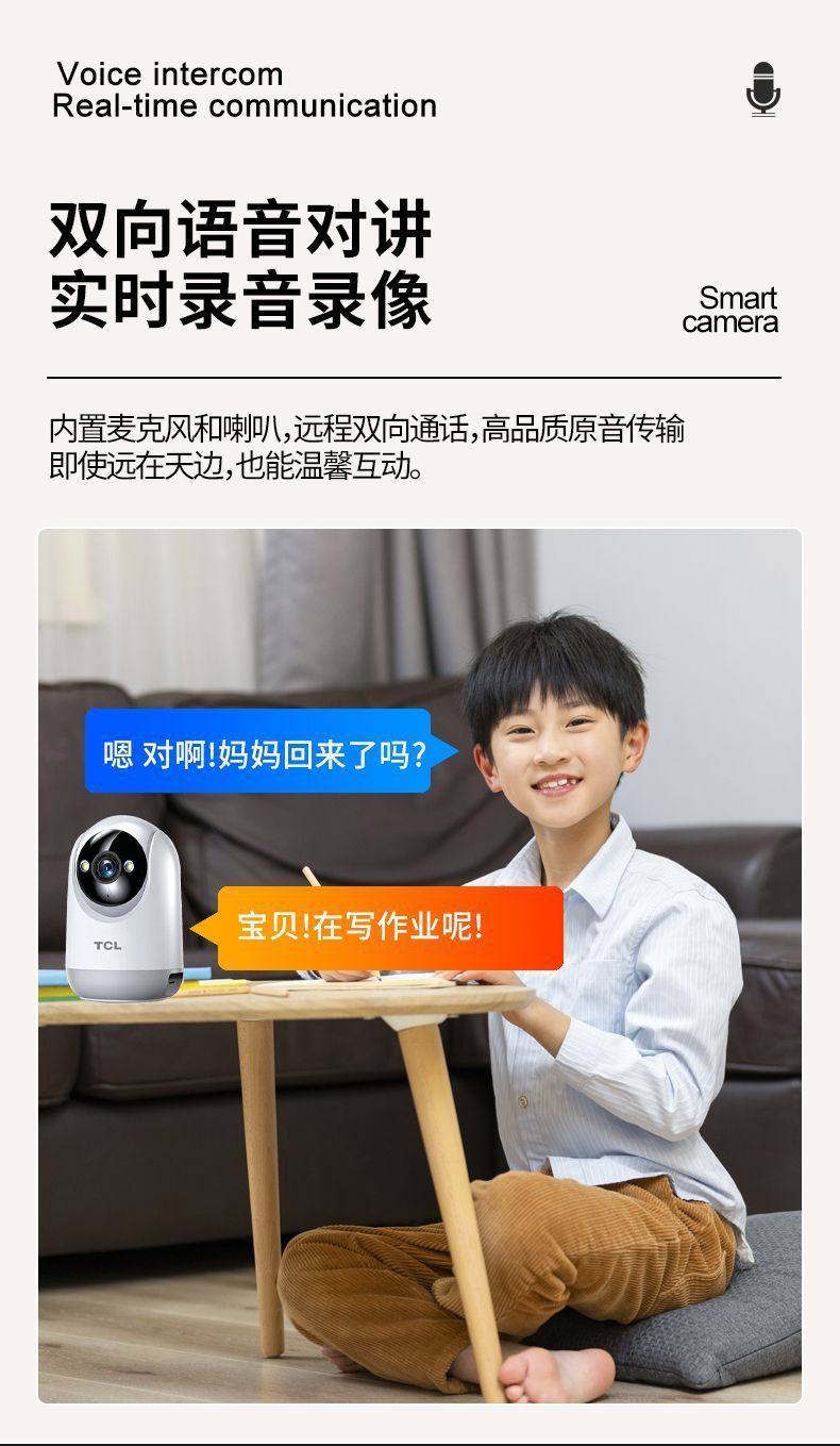 Tcl Indoor Surveillance Camera Home Monitor Two-Way Voice Intercom Mobile Phone Remote Hd 360 ° Panoramic