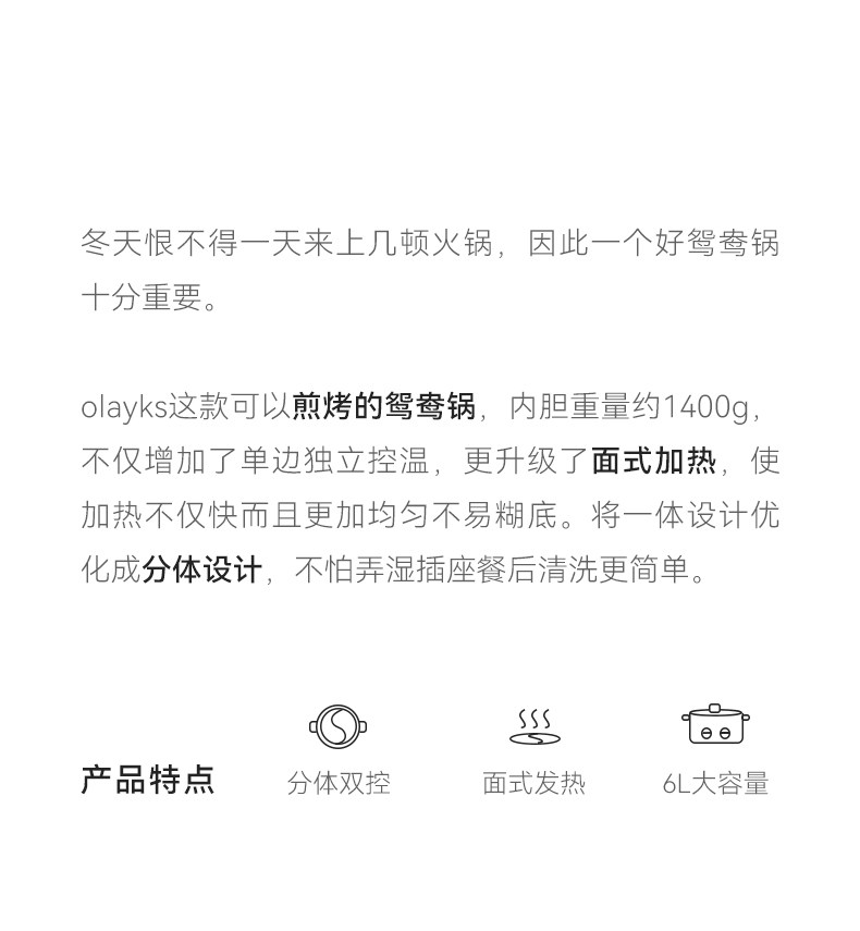 Olayks Instant Tai Chi Pot Electric Hot Pot for Home Use, Multifunctional Dual-Compartment 6L Large Capacity Cooking Pot with Ceramic Glaze