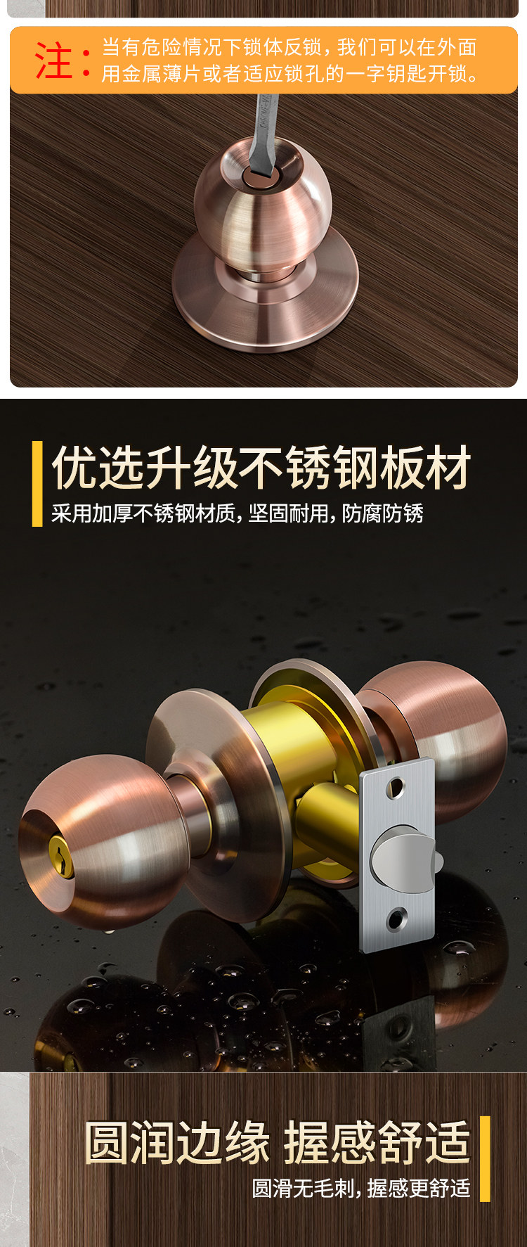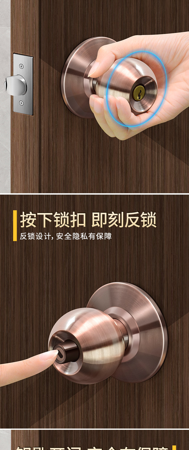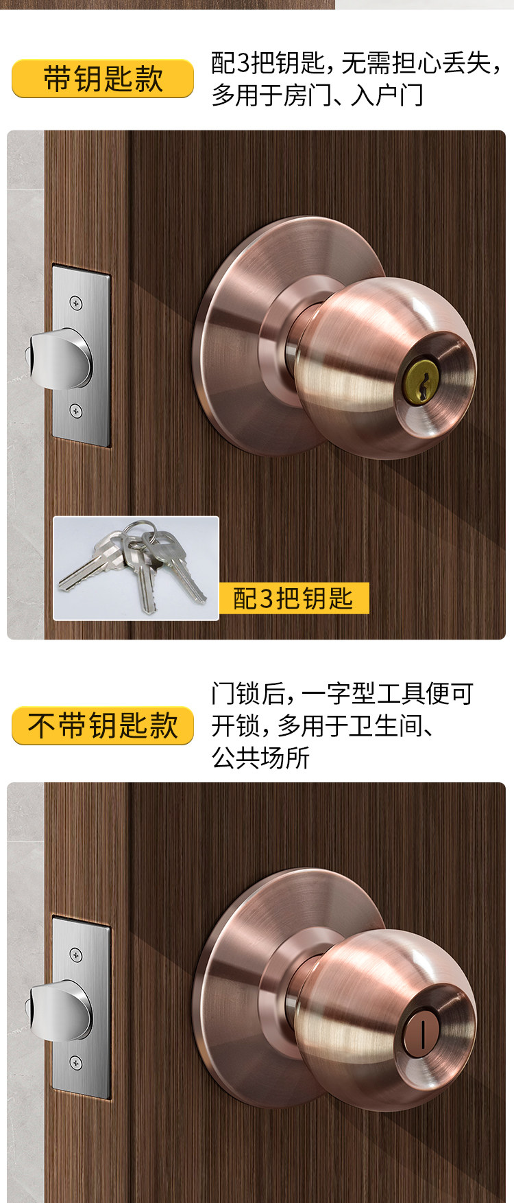 Universal Door Lock for Wooden Doors, Stainless Steel Bathroom Round Lock, Spherical Household Old-Style Door Indoor Lock for Bedroom