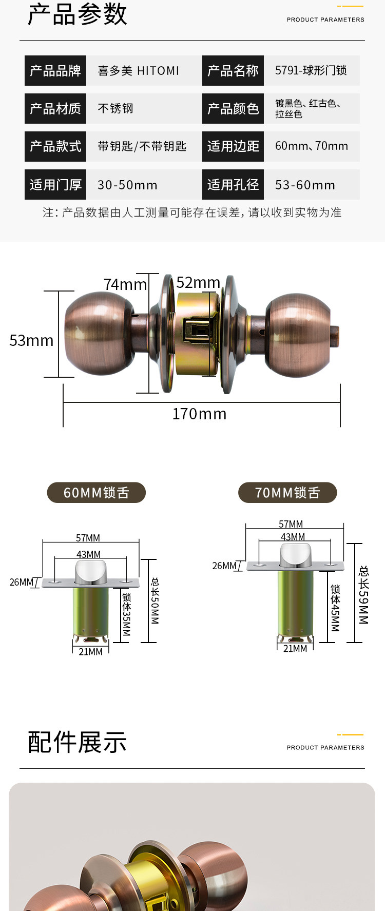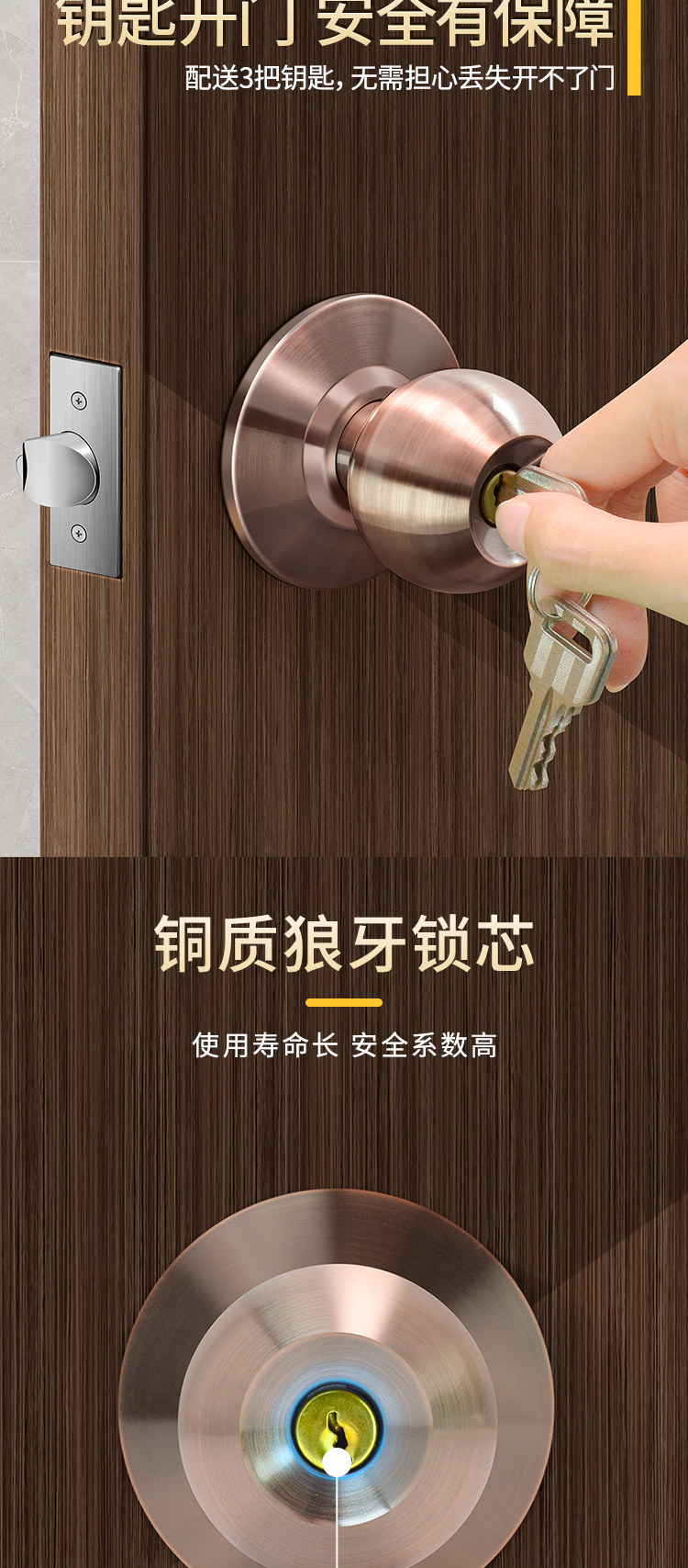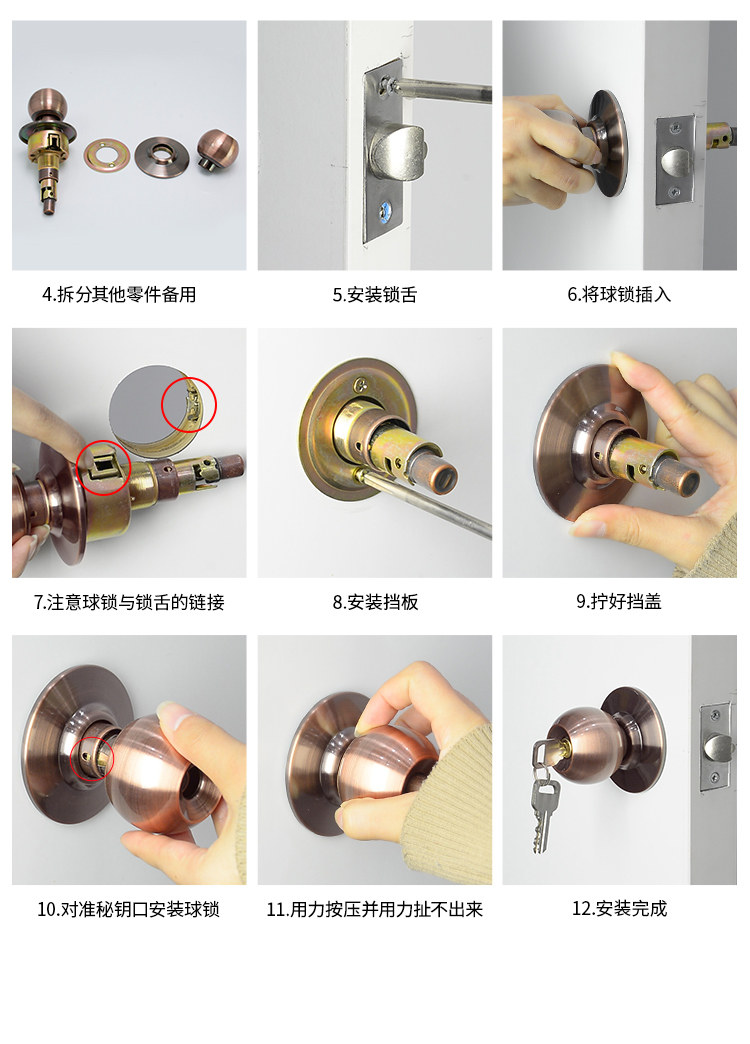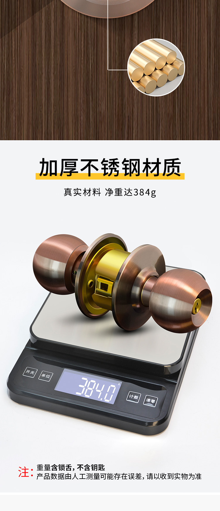 Universal Door Lock for Wooden Doors, Stainless Steel Bathroom Round Lock, Spherical Household Old-Style Door Indoor Lock for Bedroom