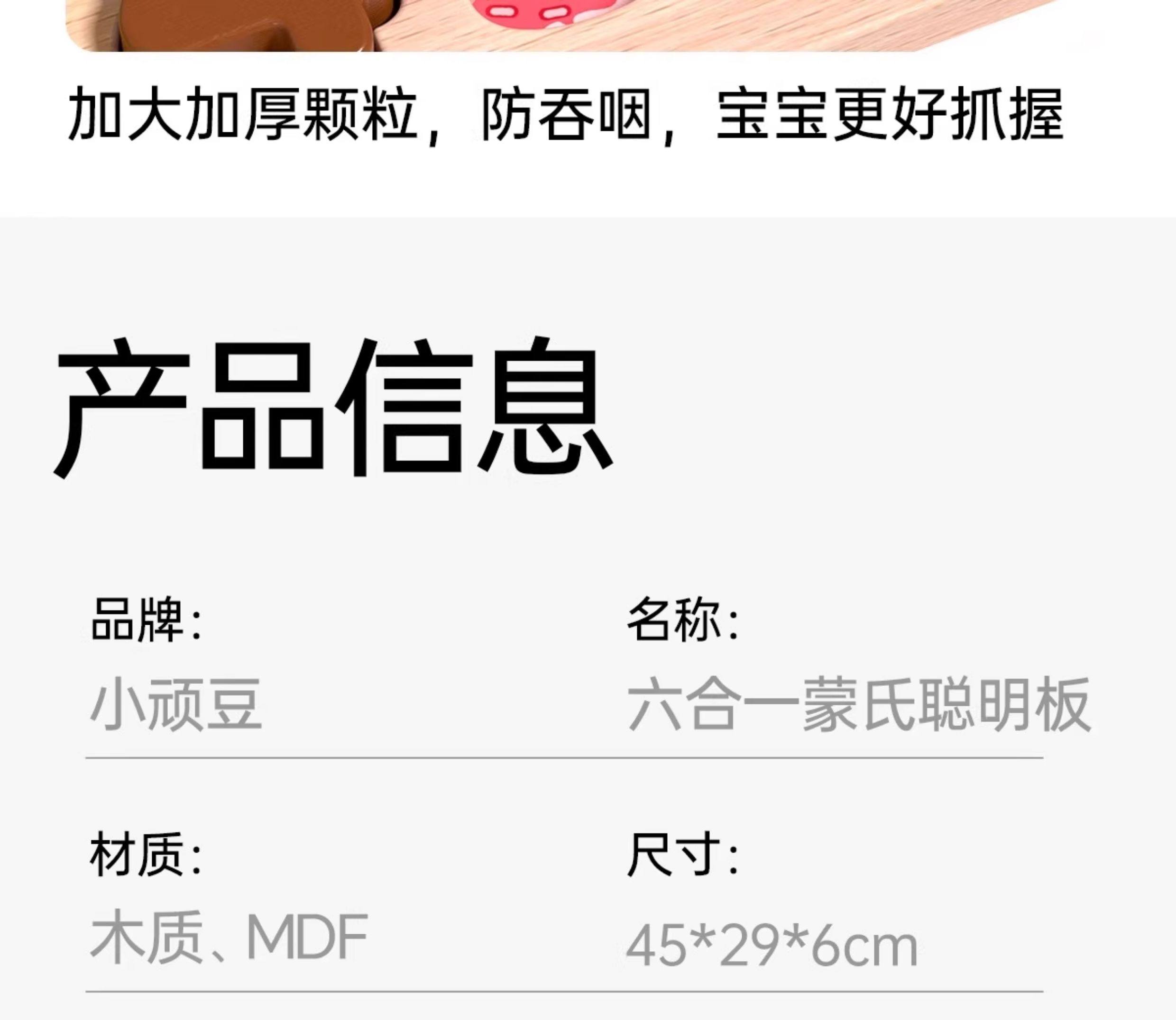 | Color Classification | Six-In-One Montessori Smart Board,Six-In-One Montessori Smart Board + 12-Hole Geometric Shape Panel,Six-In-One Montessori Smart Board + Montessori Coin and Ball Box,Six-In-One Montessori Smart Board + Letter Recognition Board,Six-In-One Montessori Smart Board + 11-Section Beech Magnetic Digital Train,Six-In-One Montessori Smart Board + Six-Track Glider with Parking Lot (7 Beech Wood Cars),Six-In-One Montessori Smart Board + 42 Large Beads (Animals/Transportation/Fruit and Vegetables),Six-In-One Montessori Smart Board + [Fire Truck + Engineering Vehicle + Mixer Truck] Traffic Buckle Puzzle,Six-In-One Montessori Smart Board + [Frog + Turtle + Crocodile] Evolution Snap Puzzle,Six-In-One Montessori Smart Board + Literacy and Object Recognition Encyclopedia (15 Topics),Six-In-One Montessori Smart Board + 108 Wooden Building Blocks,Six-In-One Montessori Smart Board + [5 Animal Puzzles] Lion, Tiger, Panda, Elephant, Cow,Six-In-One Montessori Smart Board + 16-Hole Oak Intelligence Box,Six-In-One Montessori Smart Board + Cactus Building Blocks [All Solid Wood],Six-In-One Montessori Smart Board + Four-In-One Magnetic Pen and Ball Maze,Six-In-One Montessori Smart Board + Stacking Board (Four-In-One Gameplay),Six-In-One Montessori Smart Board + [Drawing Board] 45*45cm Double-Sided Lifting + One-Click Storage |