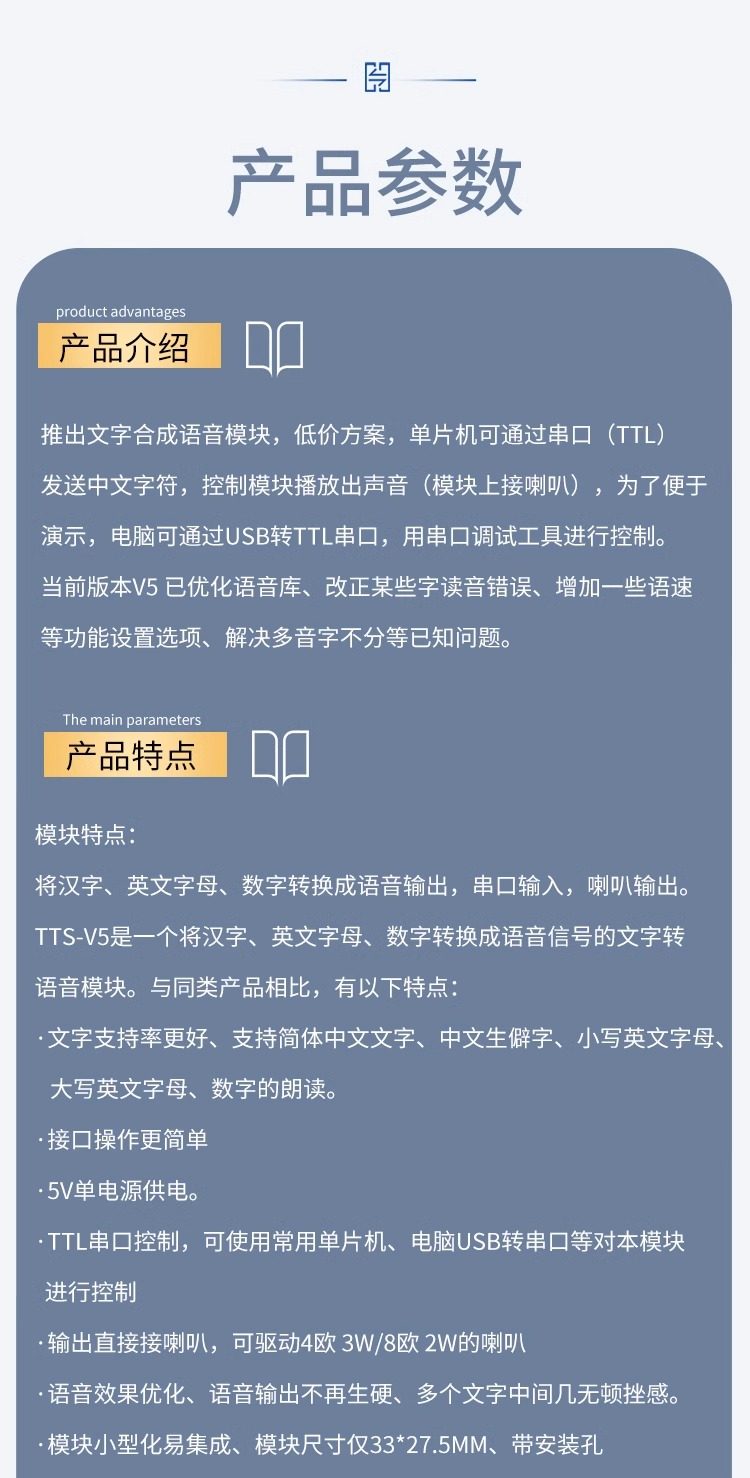 Chinese Tts Text to Voice Synthesis Module Replaces Syn6288 and Xfs5152 Sunlephant