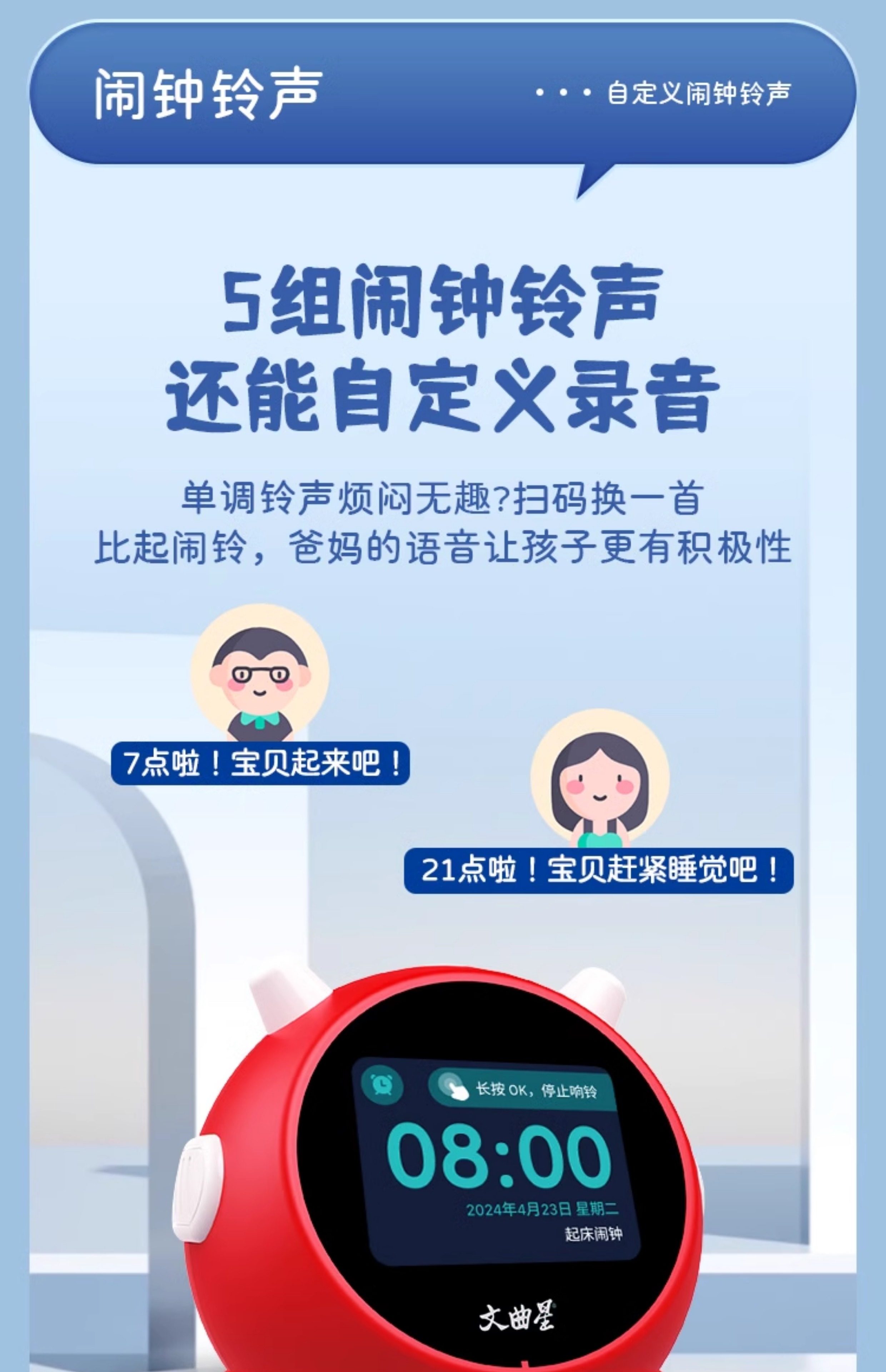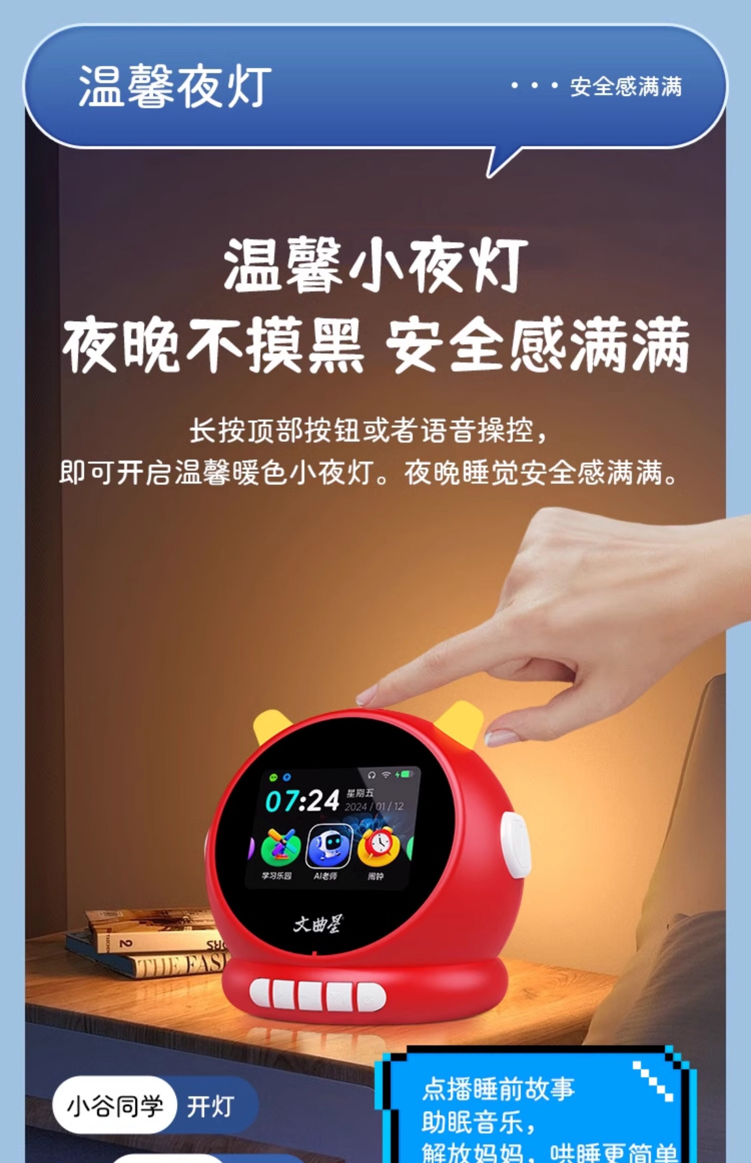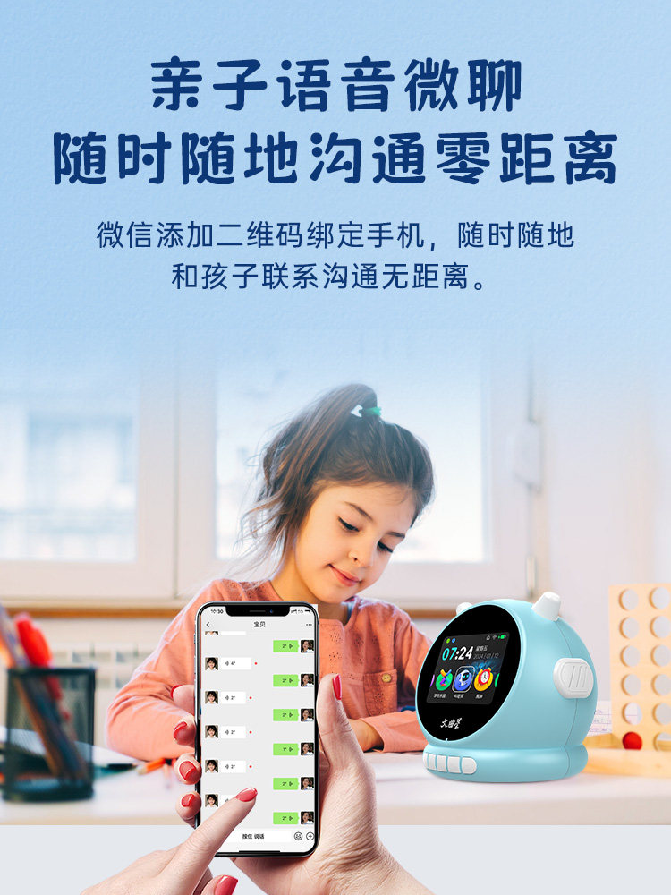 Wenquxing Ai Intelligent Voice Alarm Clock for Primary and Secondary School Students 2025 New Model Girls' Story Machine Early Education Enlightenment English Language Training Voice Control Conversation Wake-Up Gadget Children's Timer Alarm Clock