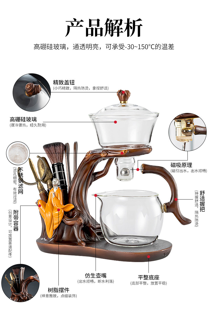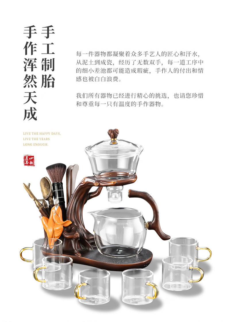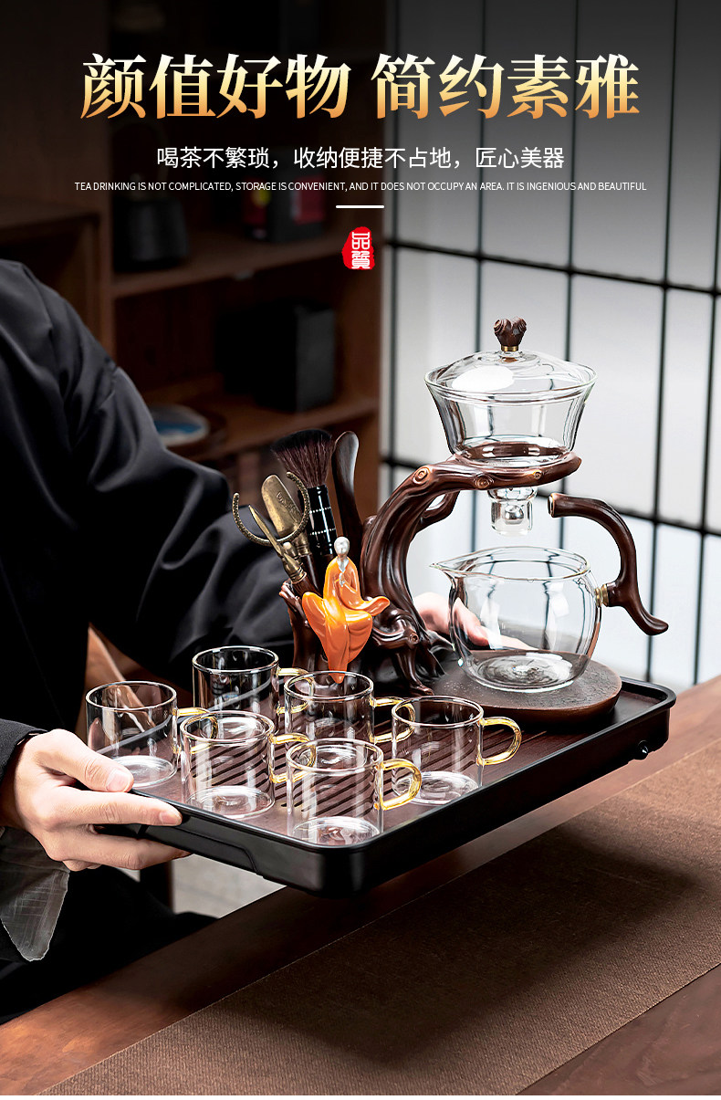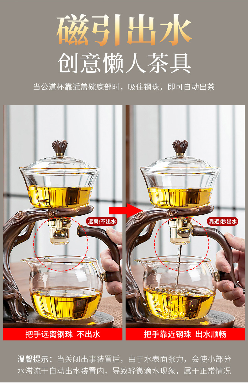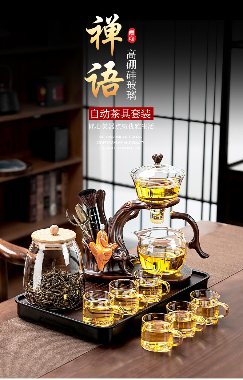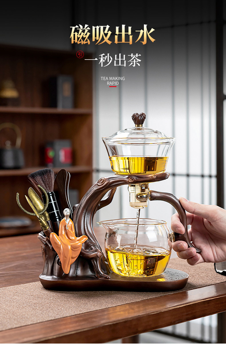Glass Automatic Kung Fu Tea Set, Thickened, High Temperature Resistant, Magnetic Tea Brewing Pot, Home Use, Entertaining Guests, Lazy Person's Tea Brewing Tool