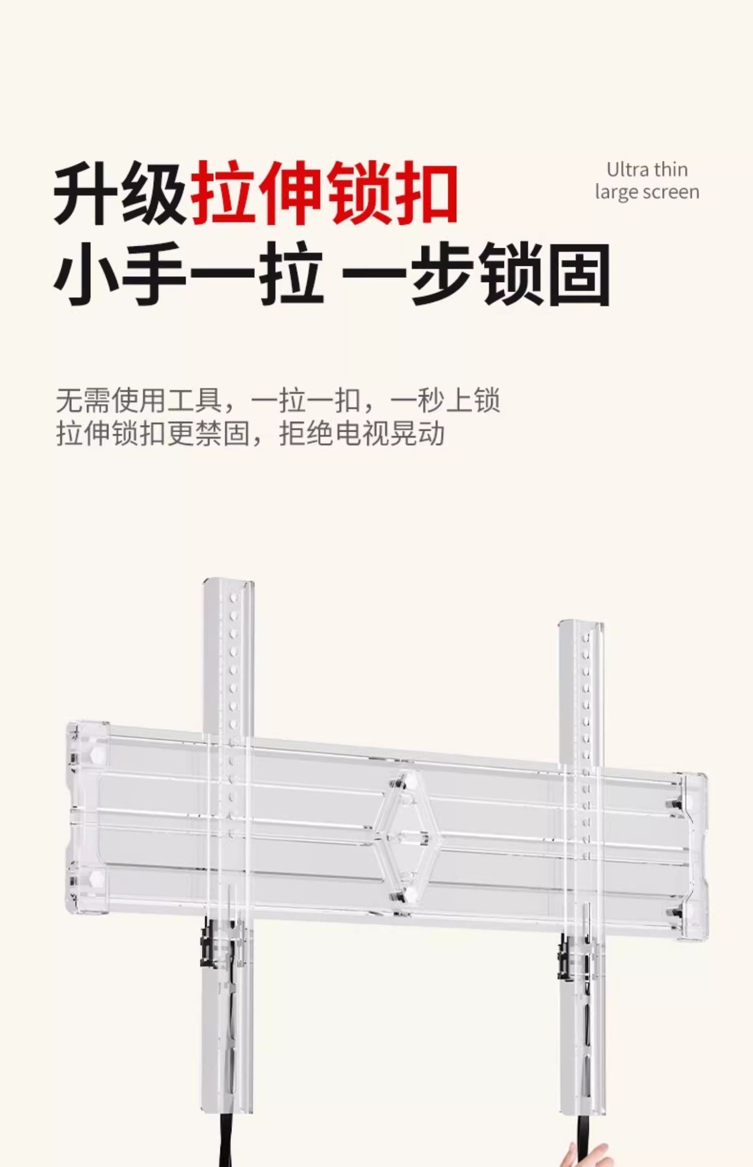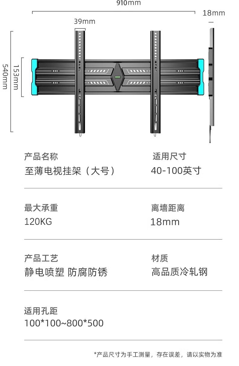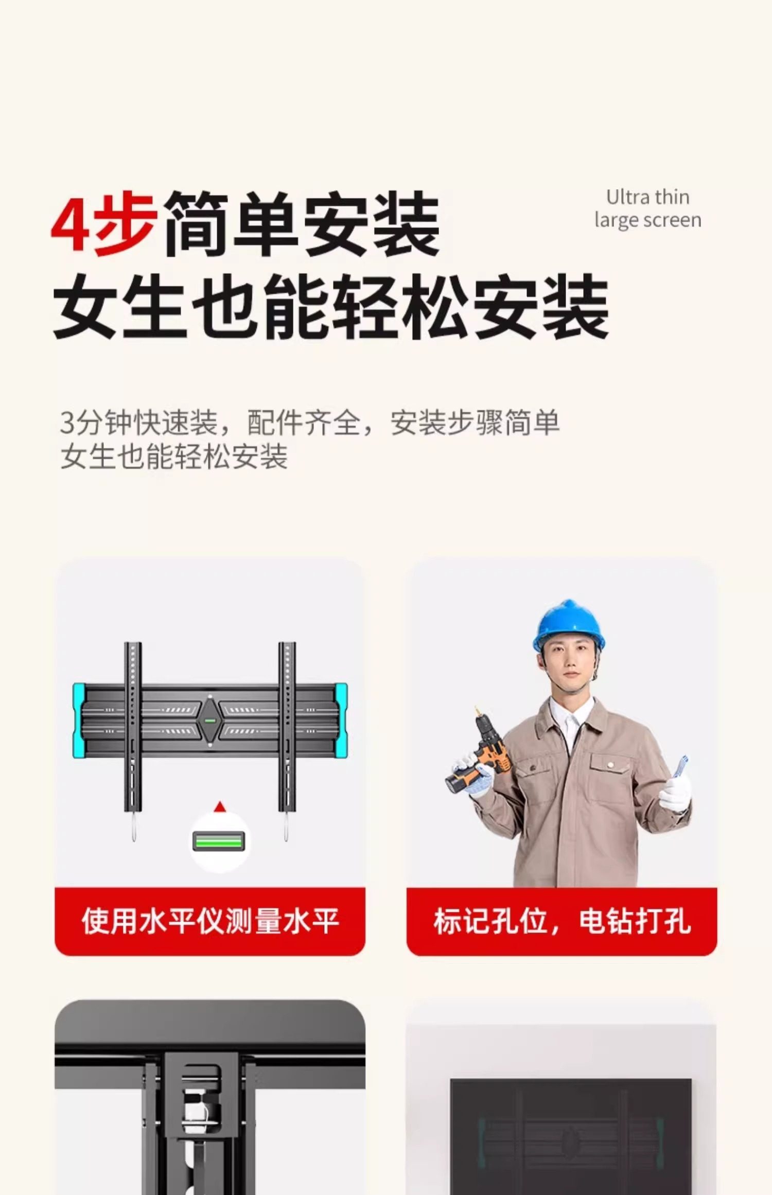 | Color Classification | [Featured Products on the Main Screen],Universal for All Brands[Within 43inch],1.8cm Ultra-Thin Wall-Mounted Design,Simple and Flexible Adaptation.,Universal for All Brands[Within 50inch],1.8cm Ultra-Thin Wall Display,Stable Load-Bearing.,Universal for All Brands[Within 55inch],1.8cm Ultra-Thin Wall-Mounted Process,Demonstrate Quality.,Universal for All Brands[Within 60inch],1.8cm Ultra-Thin Wall-Mounted Construction,A Good Choice for Watching Movies.,Universal for All Brands[Within 65inch],1.8cm Ultra-Thin Wall-Mounted Construction,Comfortable Viewing Angle.,Universal for All Brands[Within 70inch],1.8cm Ultra-Thin Wall Mounting Solution,Home Adaptation.,Universal for All Brands[Within 75inch],1.8cm Ultra-Thin Wall-Mounted Masterpiece,Visual Feast.,Universal for All Brands[Within 80inch],1.8cm Ultra-Thin Wall Sticker Model,Stable and Worry-Free.,[Ultra-Large Screen Flagship Series],Universal for All Brands[Within 86inch],1.8cm Ultra-Thin Wall-Mounted andā Thickened and Solid Material,Extraordinary Support.,Universal for All Brands[Within 100inch],1.8cm Ultra-Thin Wall Matchingā Thickened and Solid Material,Responsible for the Giant Screen.,Universal for All Brands[Within 110inch],1.8cm Ultra-Thin Wall Bondingā Thickened and Solid Material,Shocking Experience.,Universal for All Brands[Within 120inch],1.8cm Ultra-Thin Wall-Mounted Auxiliaryā Thickened and Solid Material,Ultimate Presentation.,[Upgraded Ultra-Thin Universal Model],ā Upgraded Ultra-Thin Modelā [32 - 80inch Universal],1.5cm Ultra-Thin Wall-Mountedā Thickened and Solid Material,Excellent Upgrade.,ā Upgraded Ultra-Thin Modelā [50 - 100inch Universal],1.5cm Ultra-Thin Wall-Mounted andā Thickened and Solid Material,High-End Choice.,ā Upgraded Ultra-Thin Modelā [50 - 120inch Universal],1.5cm Ultra-Thin Wall Stickerā Thickened and Solid Material,Luxury Experience. |