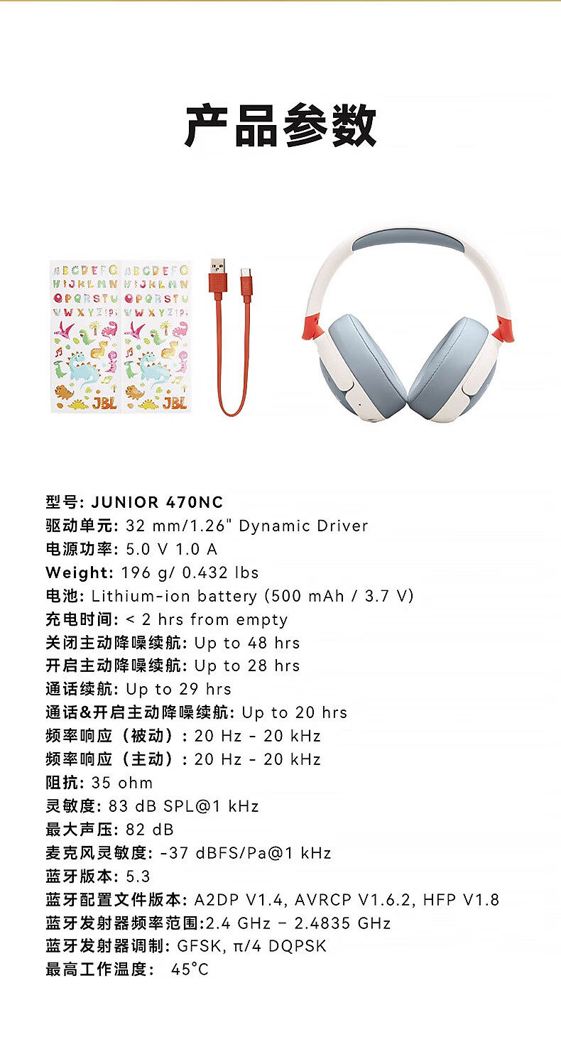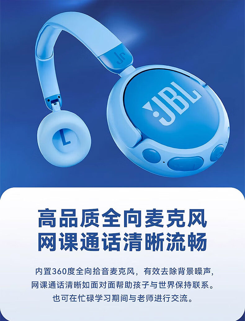 Jbl Jr470Nc Over-Ear Children's Bluetooth Headphones with Active Noise Cancellation for Online Classes and Studying with Microphone 3093