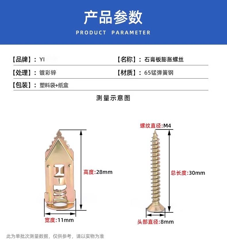 Expansion Screws for Gypsum Board, No-Drill Iron Expansion Tubes, Nails for Installing Light Fixtures and Curtains