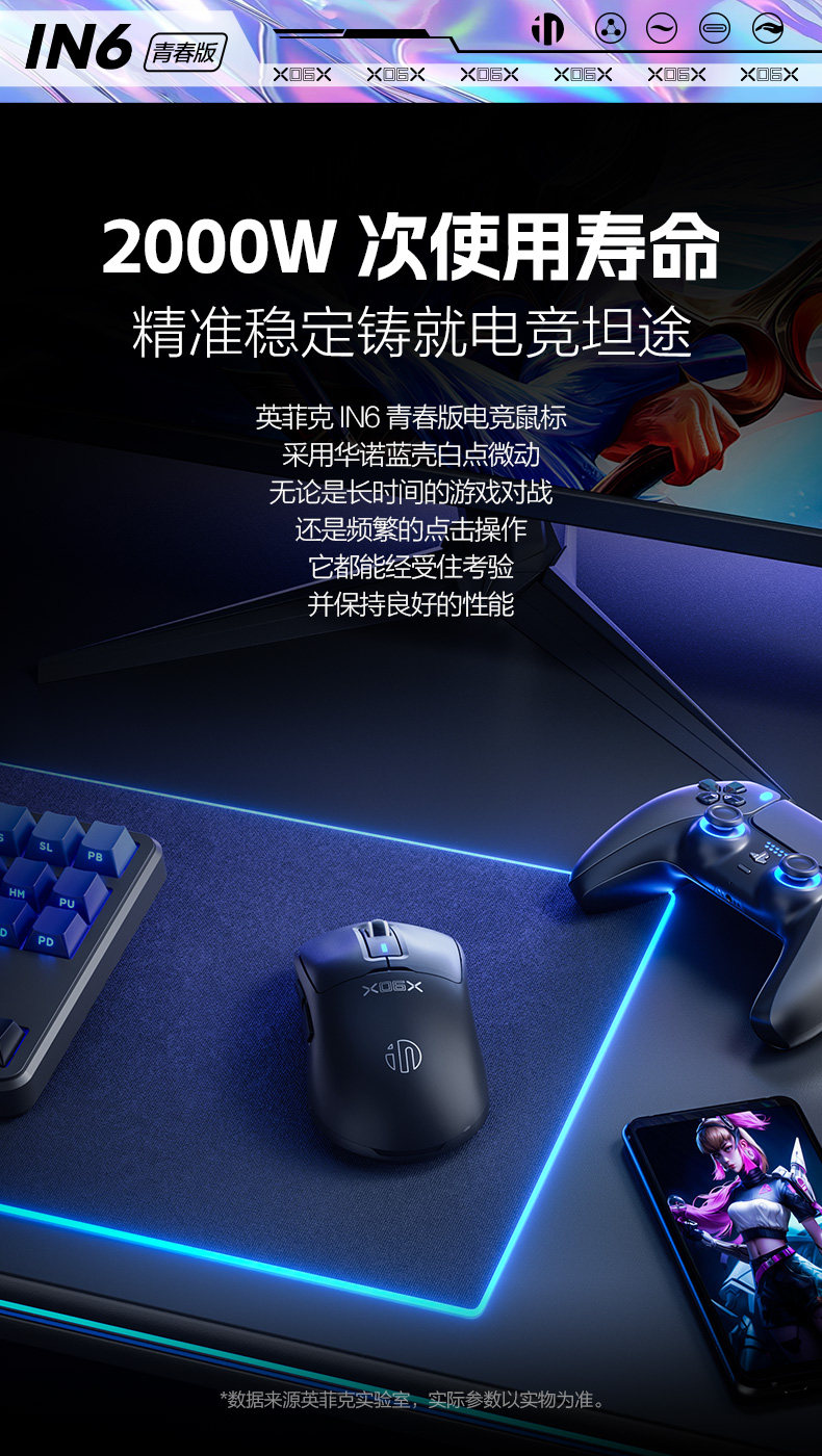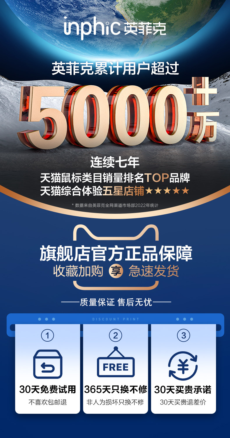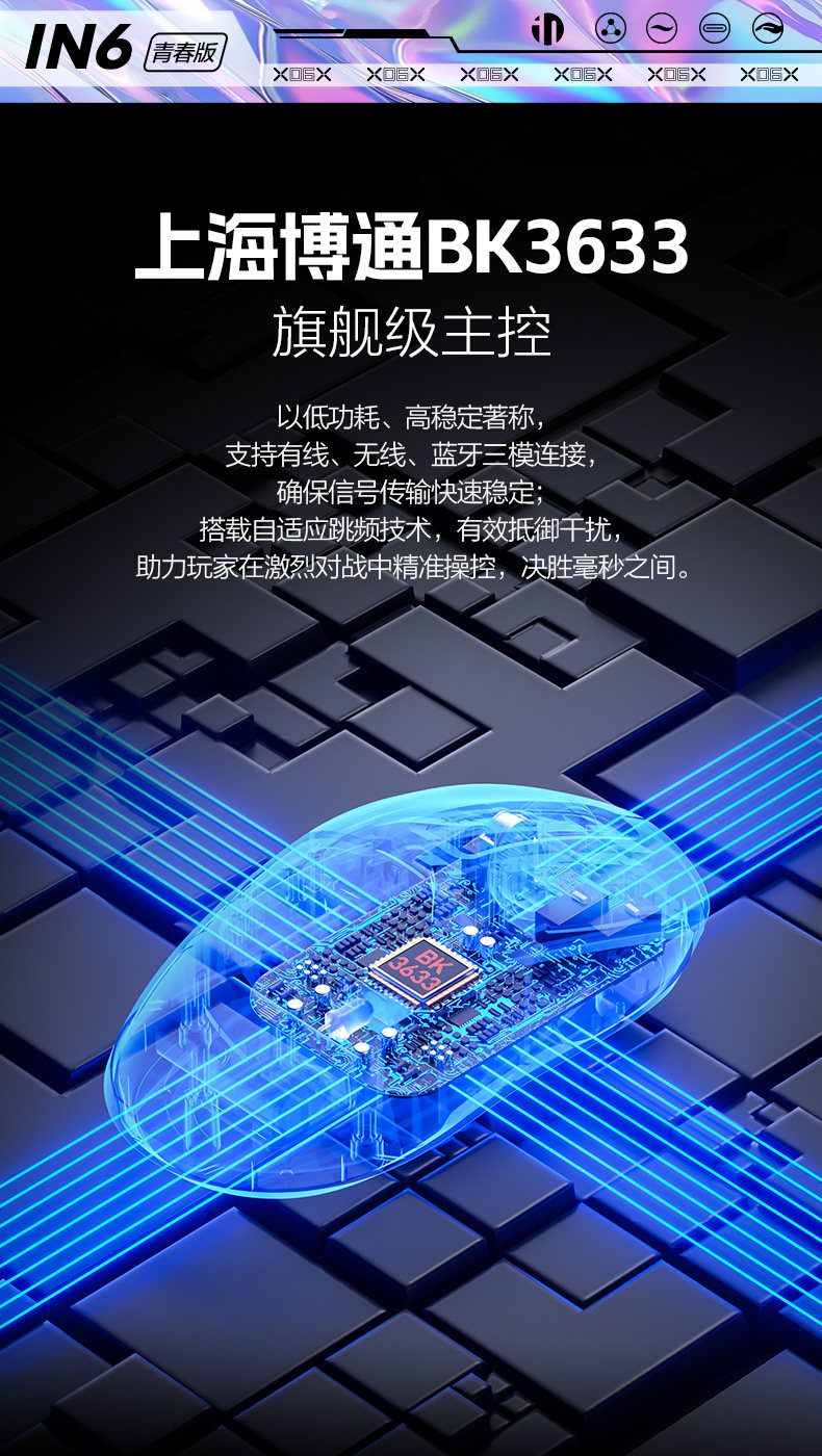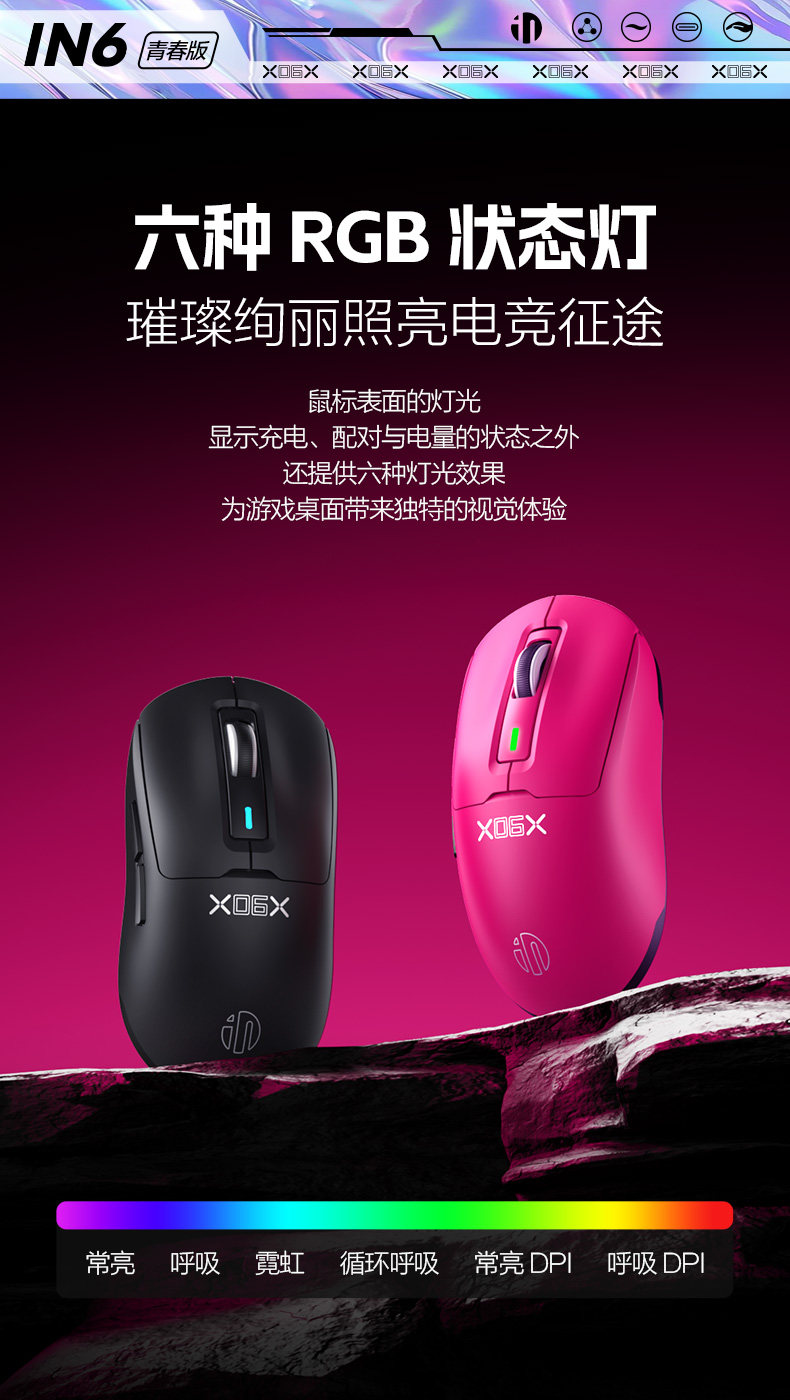 Inphic In6 Youth Wireless Mouse Wired Bluetooth Tri-Mode Computer Laptop 3311 Rechargeable Gaming E-Sports