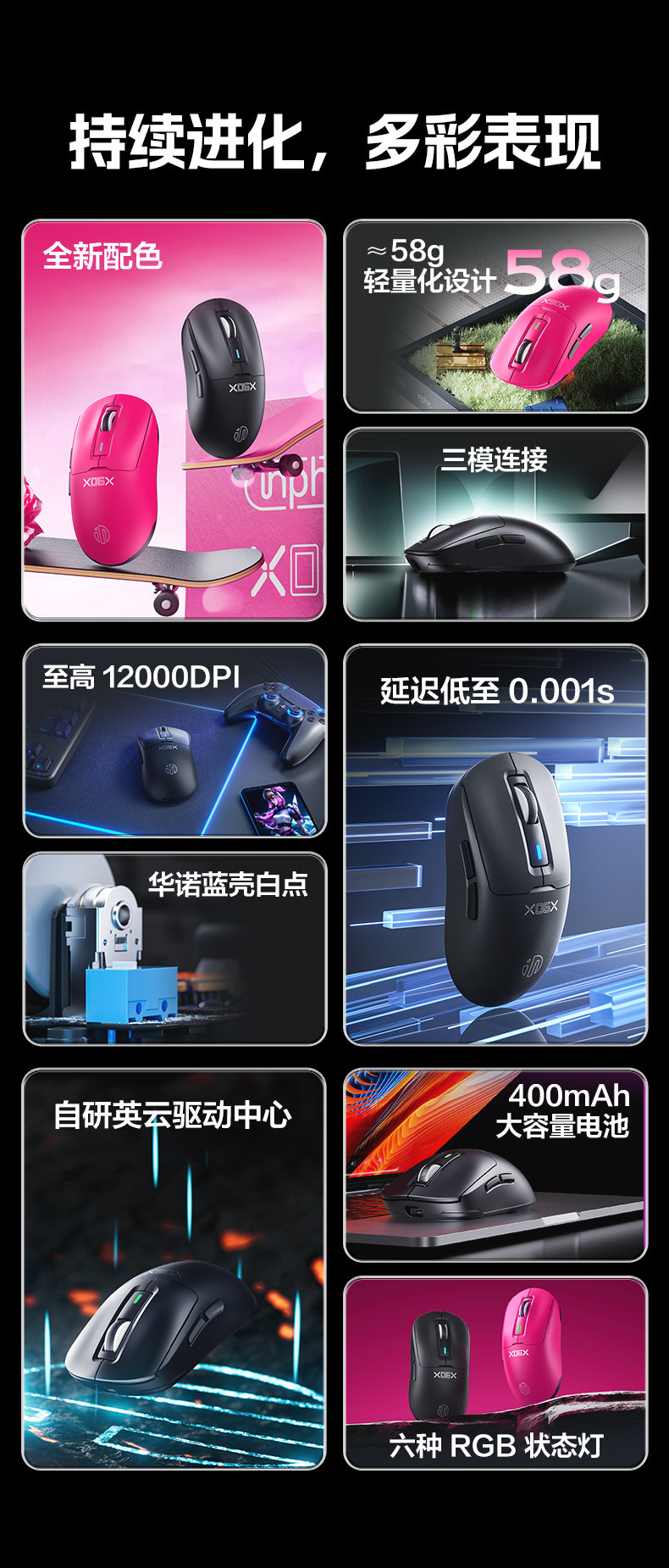 | Color Classification | Vitality Powder[New Three-Mode +12000Dpi],Extreme Night Black[New Three-Mode +12000Dpi],Mecha White[Inx Ultra-Light Version],Mecha White[Inx Long Battery Life Version] |
