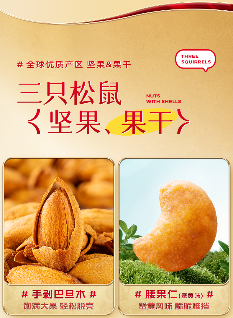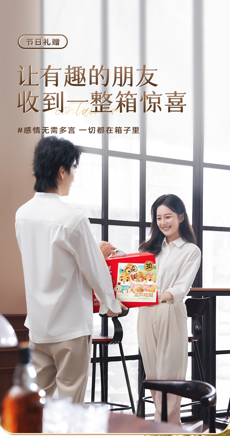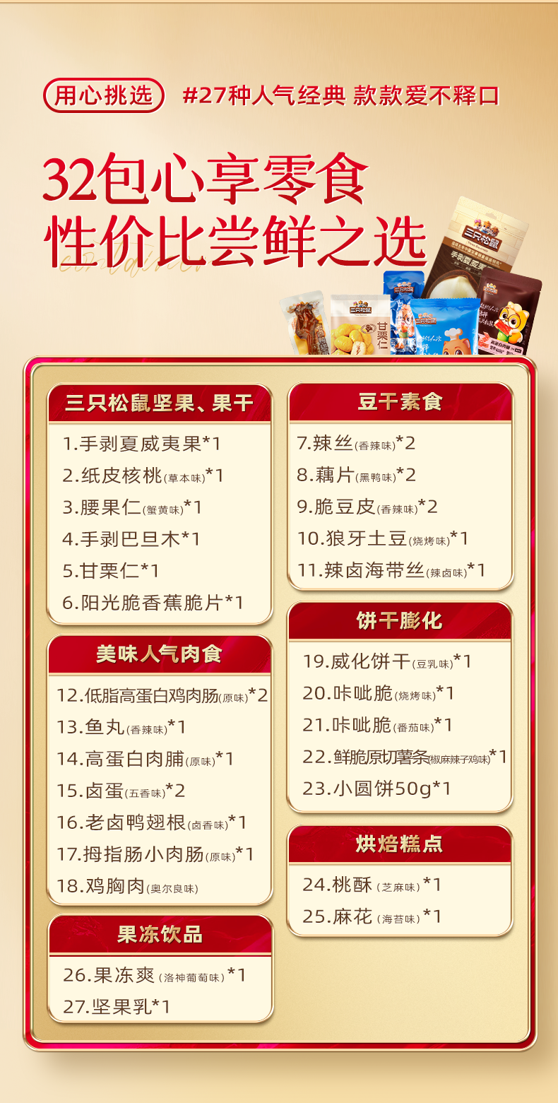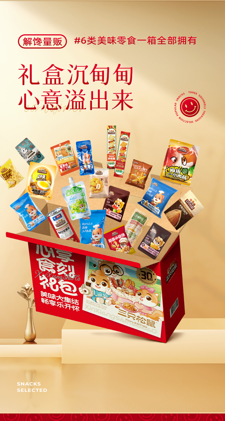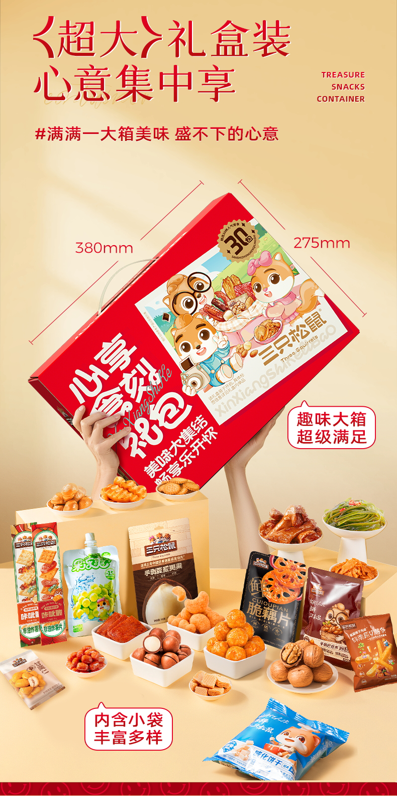 Three Squirrels Heart-Eating Delights Gift Pack 1383g/32 Packs Casual Snacks Nut Gift Box for Girlfriend