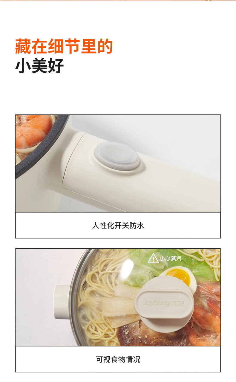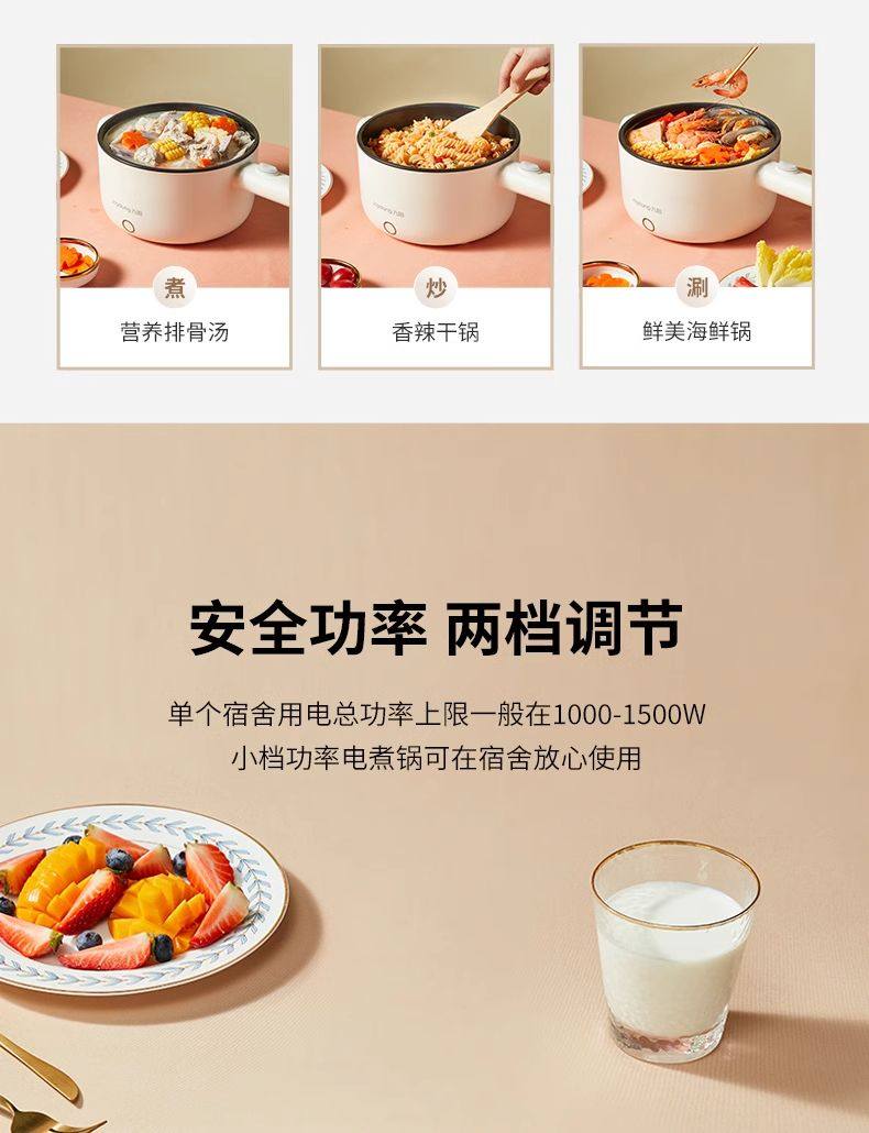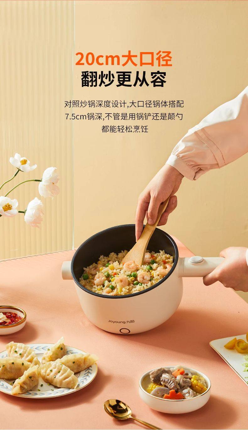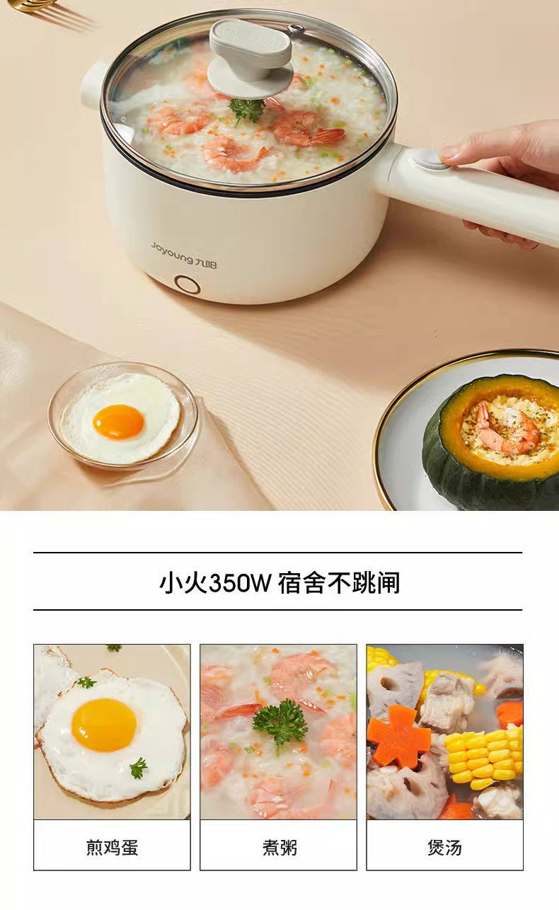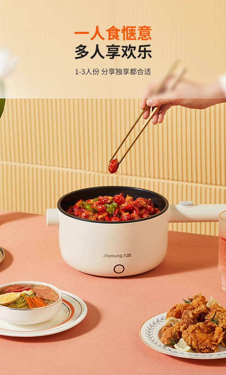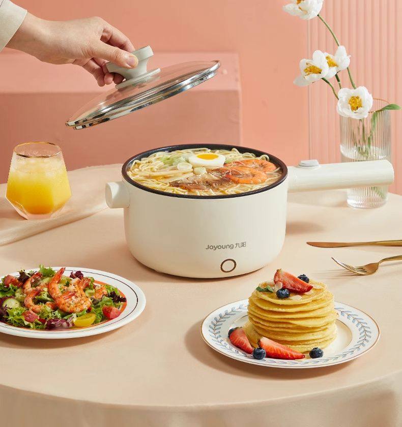 Joyoung Electric Hot Pot G180 Electric Frying Pan with Integrated Steaming and Cooking Functions for Dormitory Students, Small Electric Hot Pot for Cooking Noodles, 2L Capacity
