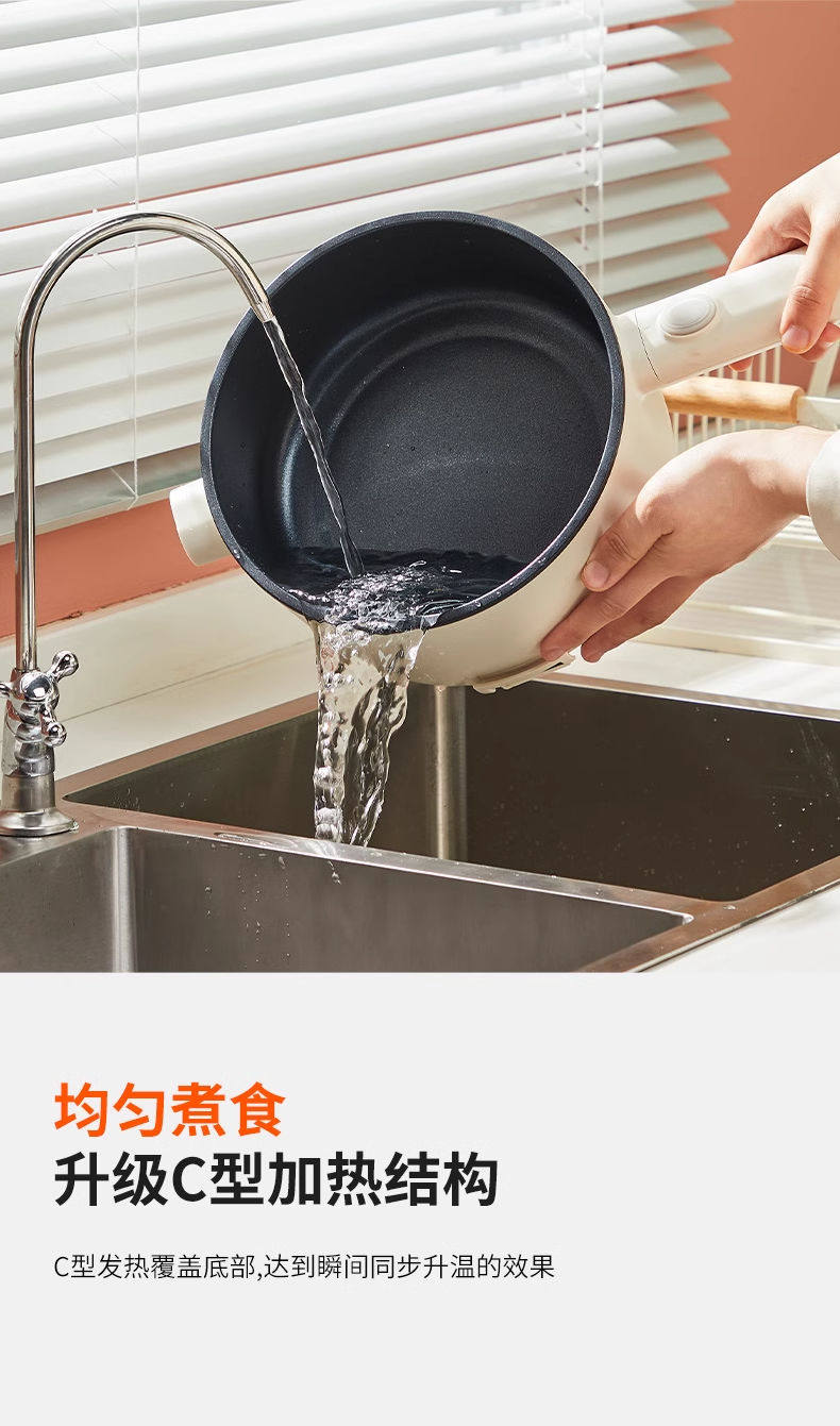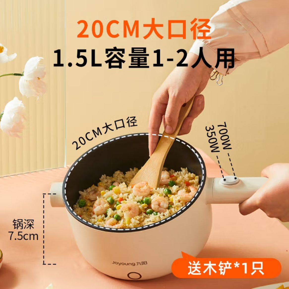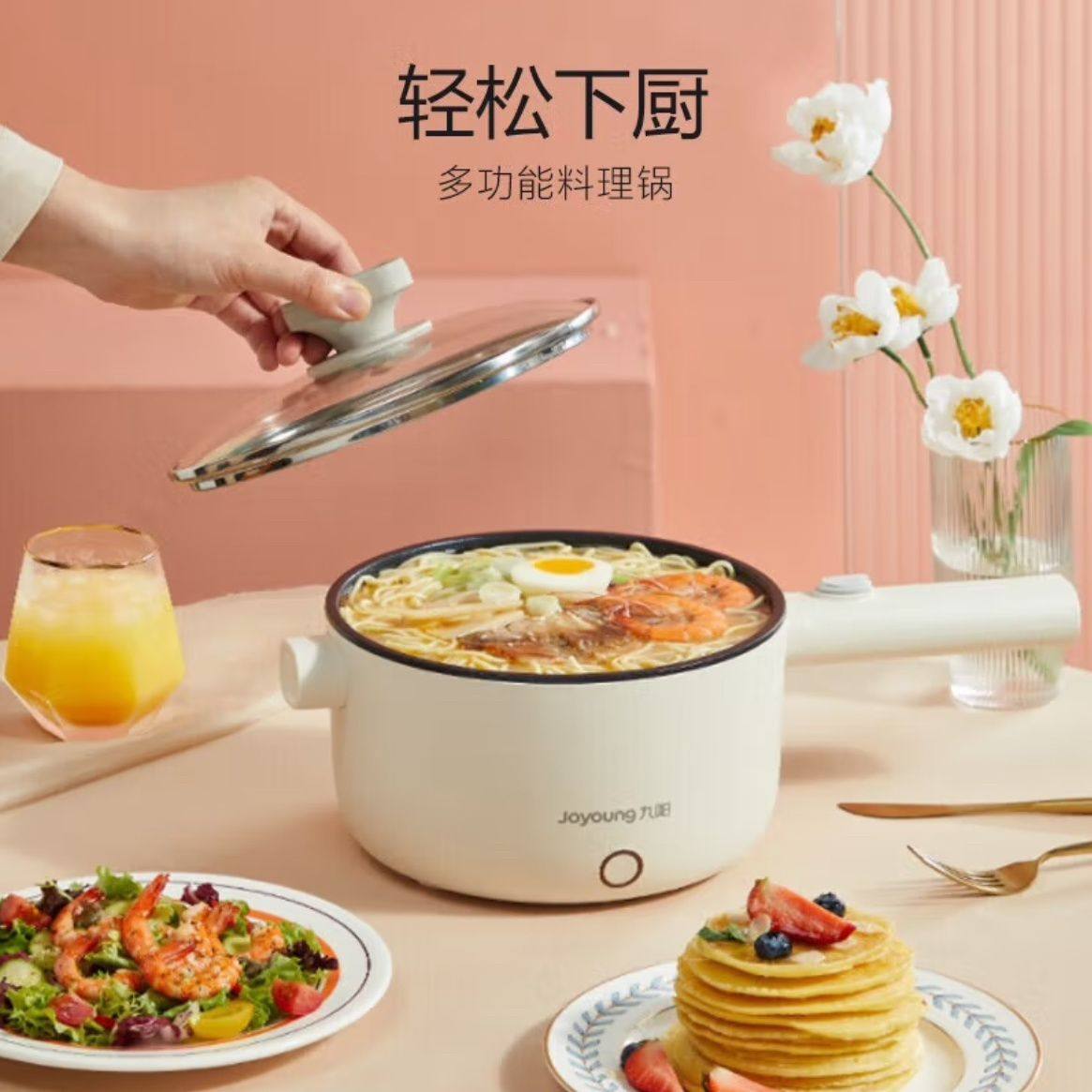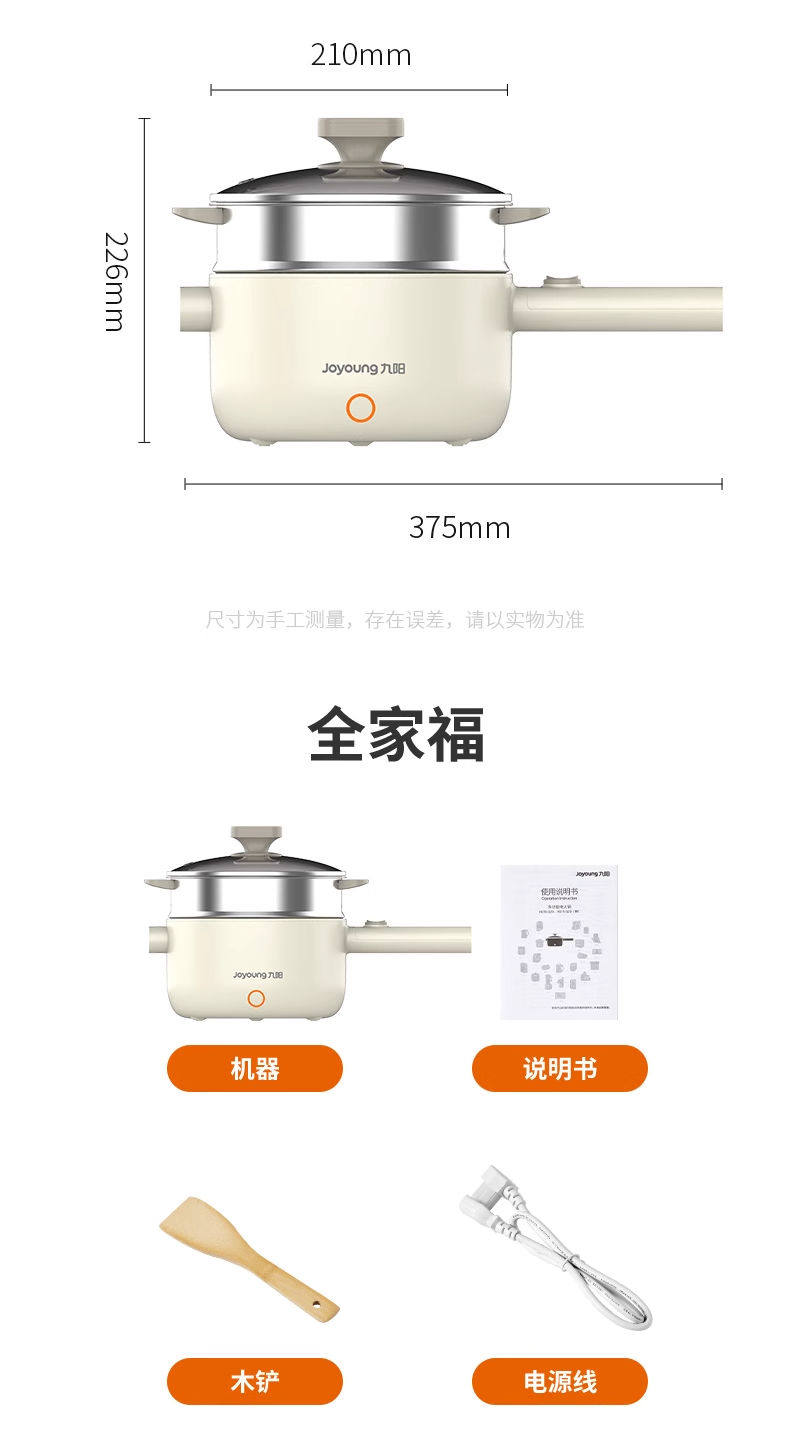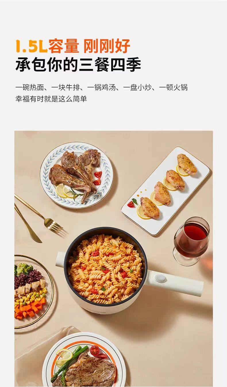 Joyoung Electric Hot Pot G180 Electric Frying Pan with Integrated Steaming and Cooking Functions for Dormitory Students, Small Electric Hot Pot for Cooking Noodles, 2L Capacity