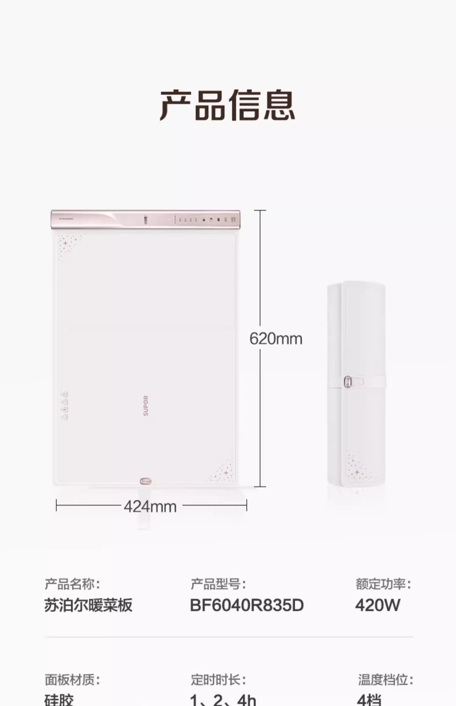 Supor Warming Chopping Board Household Heating Meal Insulation Board 2025 New Multi-Functional Coaster Hot Milk Artifact