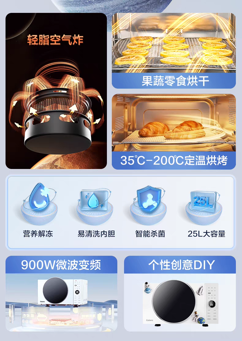 galanz D90F25Msxldv-Dr(W0) Flat-Panel Variable Frequency Steaming and Baking Integrated Air Frying Oven