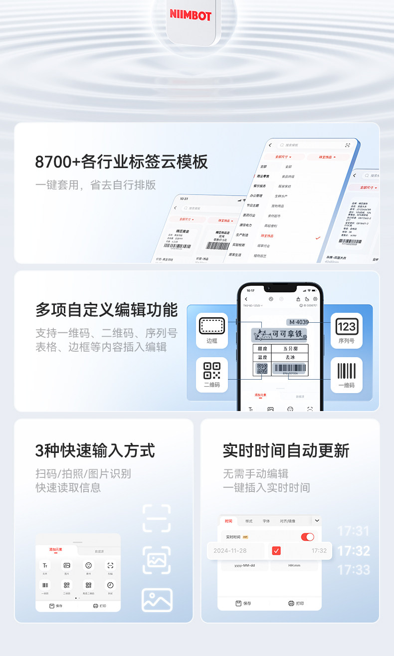 Jingchen K2 Label Printer Thermal Adhesive Food Production Date Drink Cup Sticker Clothing Tag Two-Dimensional Barcode Large Size Transparent Sticker Small Multi-Functional Commercial Smart Label Machine