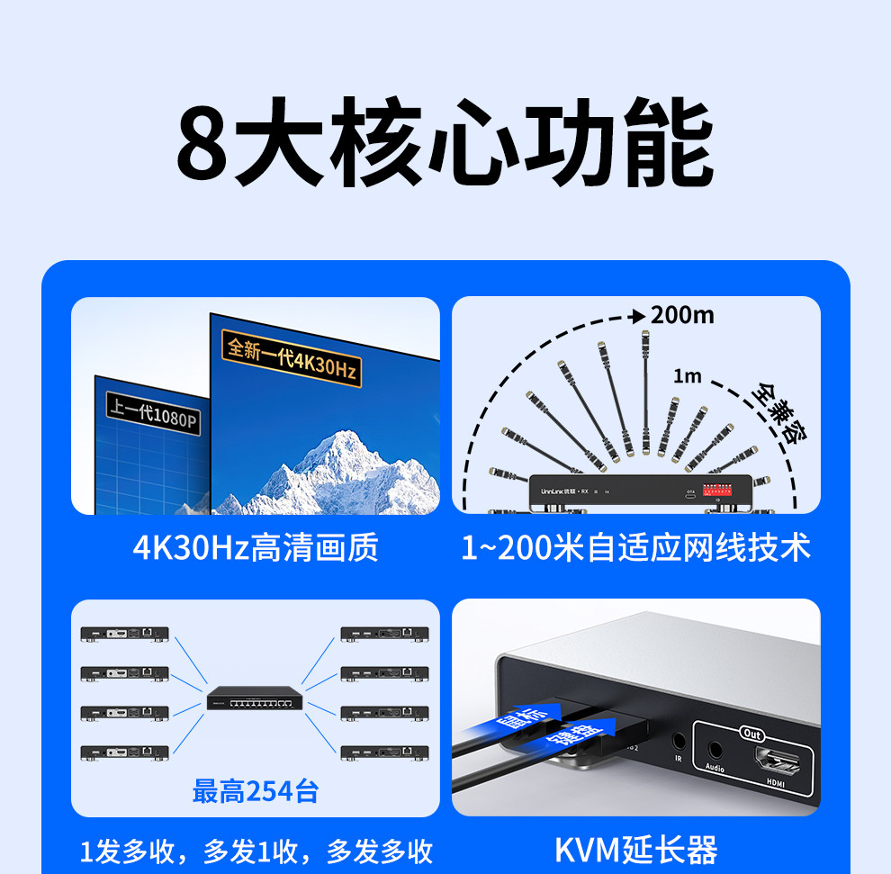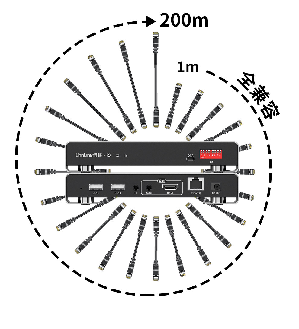 HDMI Network Cable Extender Kvm Network Transmitter with USB Keyboard and Mouse 4K High-Definition to Network Cable 200m Transmission Transceiver Surveillance Video Recorder Computer Laptop Audio and Video Transmission Amplifier