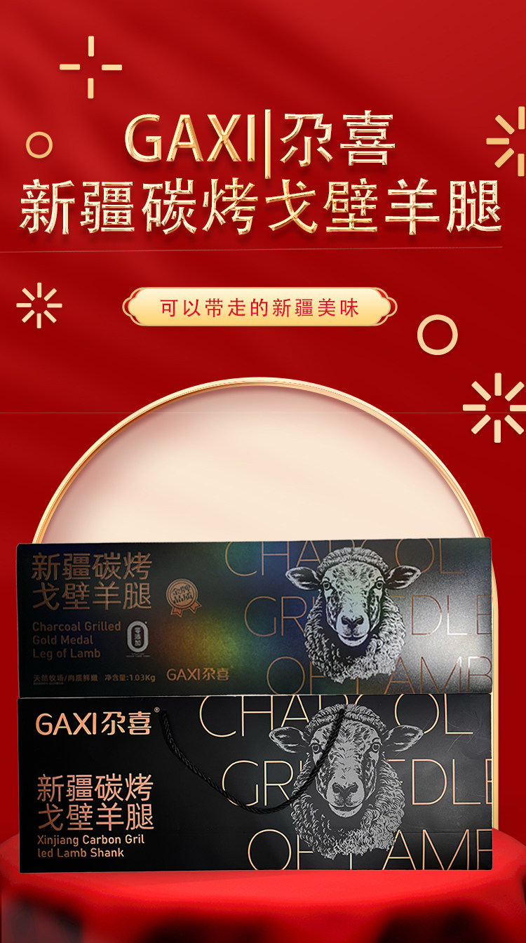 Xinjiang Gaxi Charcoal-Grilled Gobi Mutton Leg 1030G/Box, Ready-To-Eat Vacuum-Packed Gift Box