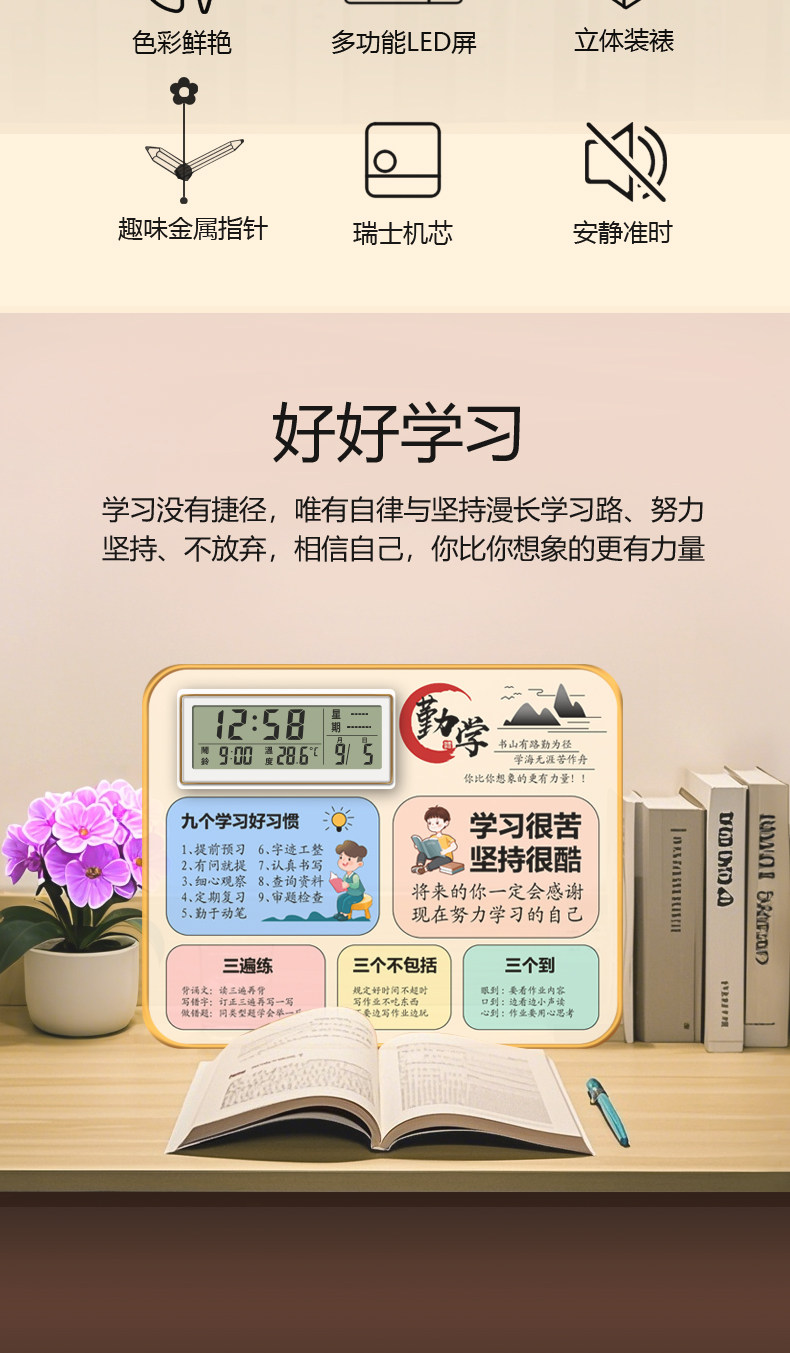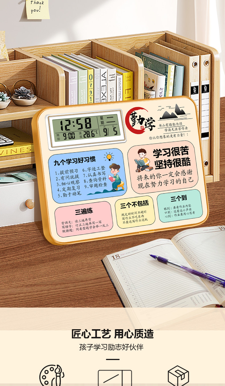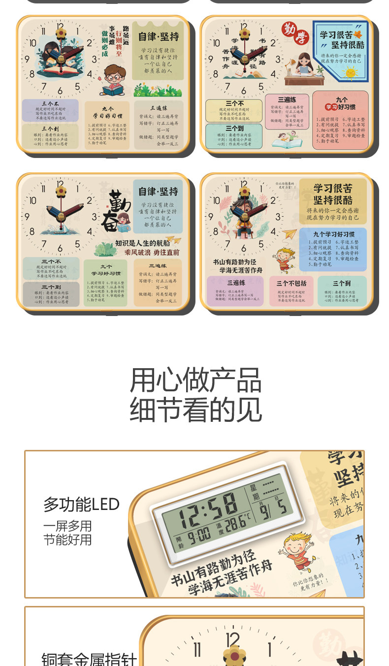 Desktop Motivational Ornament Student Alarm Clock Inspirational Desk Decoration Birthday Gift Promotion Gift Desk Clock Self-Discipline Perseverance