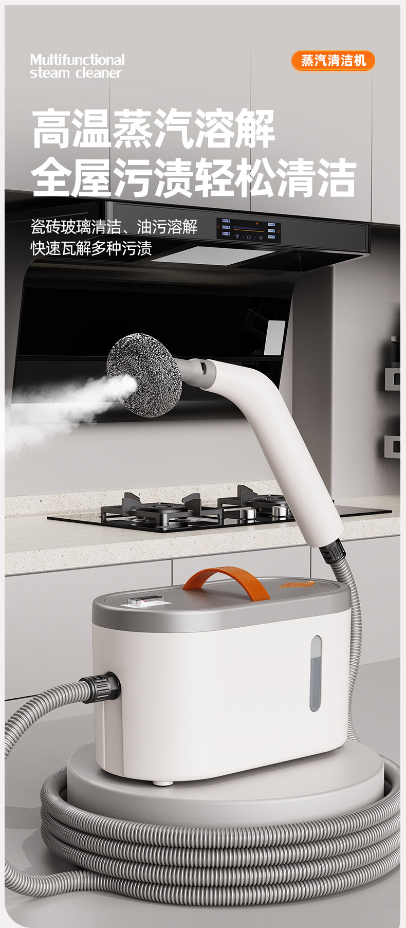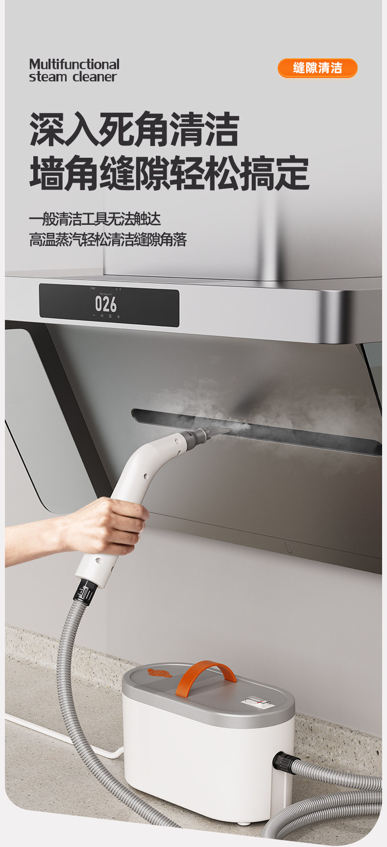High-Temperature Steam Cleaner for Household Cleaning, Kitchen Range Hoods, Window Glass, Gas Stoves, Air Conditioners, and Grout Cleaning
