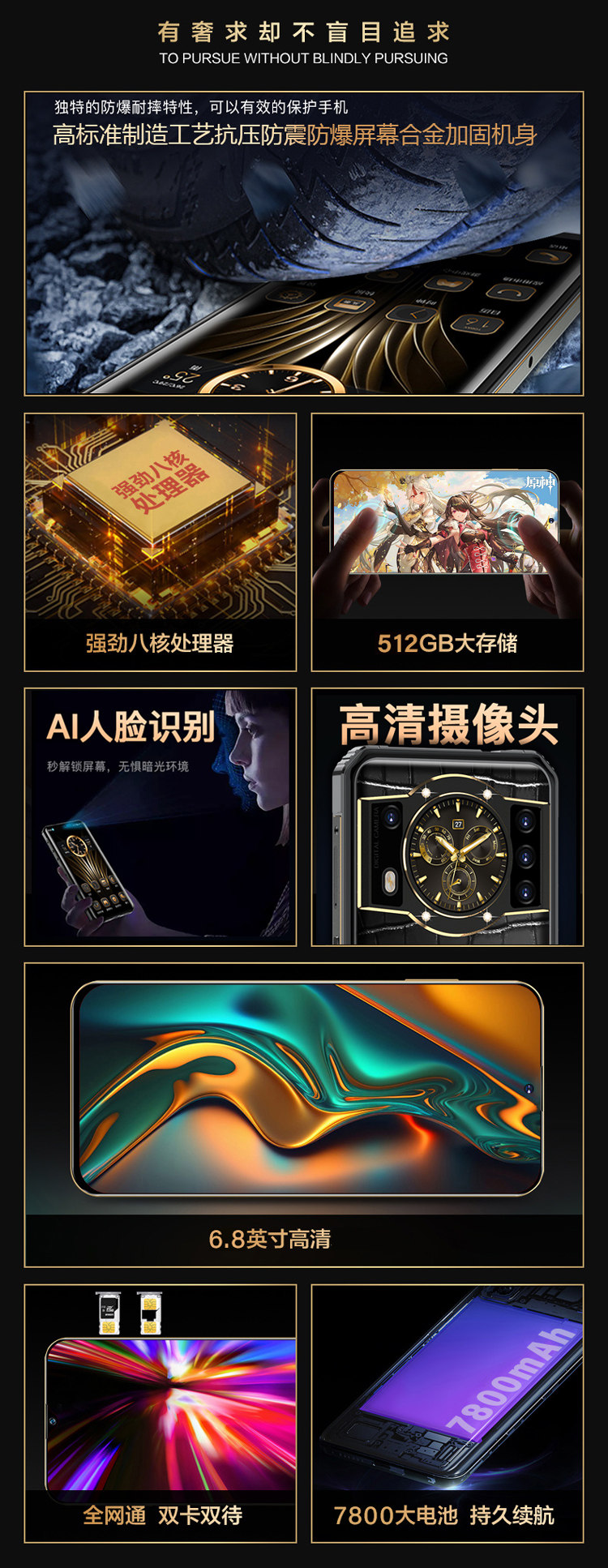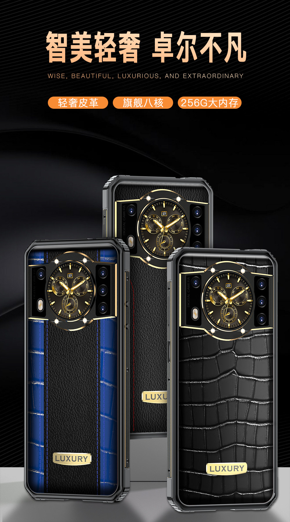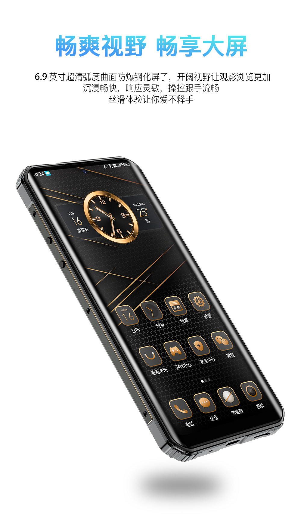 Official Curved Screen, Triple-Protection, Genuine Leather, Gold-Plated 7inch Smart Island V8848 Business-Grade Military Smartphone