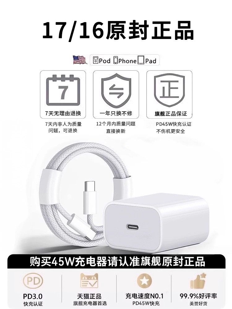 | Color Classification | [Authenticity Certification]Fits Apple iPhone 17-16 Series / iPad Universal Series,[Two-Year Warranty]Quality Assurance★Ready Stock, Quick Delivery★Boxed and Unopened★Any Dissatisfaction, Directly Return,Dual Type-C Interface[Single - Braided Style]Low Temperature Fast Charging★Safe and Does Not Damage the Machine★Worn Out Package Replacement[Speed Up 300%],Dual Type-C Interface[Two Pieces - Braided Style]Low Temperature Fast Charging★Safe and Does Not Damage the Machine★Worn Out Package Replacement[Speed Up 300%],[Fast Charging Combo Set]20W Charging Head + Dual Type-C Braided Cables[Speed Up 500%],[Fast Charging Combo Set]30W Charging Head + Dual Type-C Braided Cables[Speed Up 600%],[Fast Charging Combo Set]45W Charging Head + Dual Type-C Braided Cables[Speed Up 900%] |