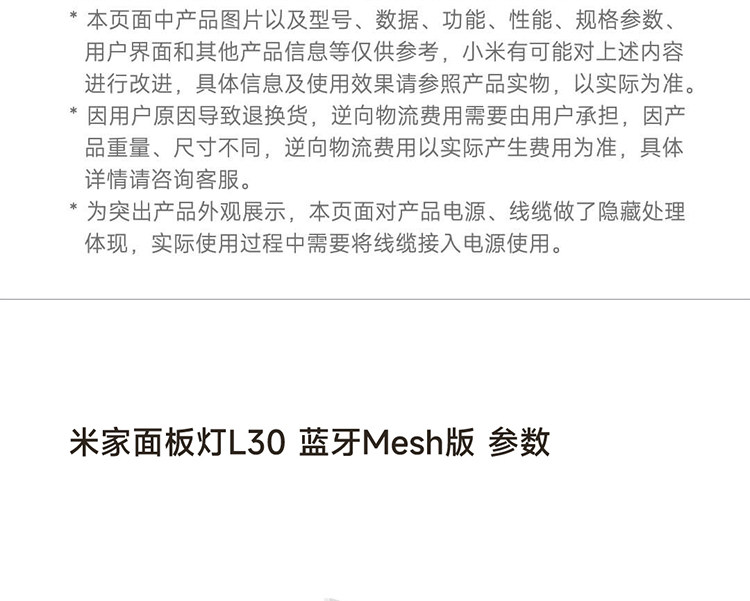 | Model | Mijia Panel Light L30 Bluetooth Mesh Version |
