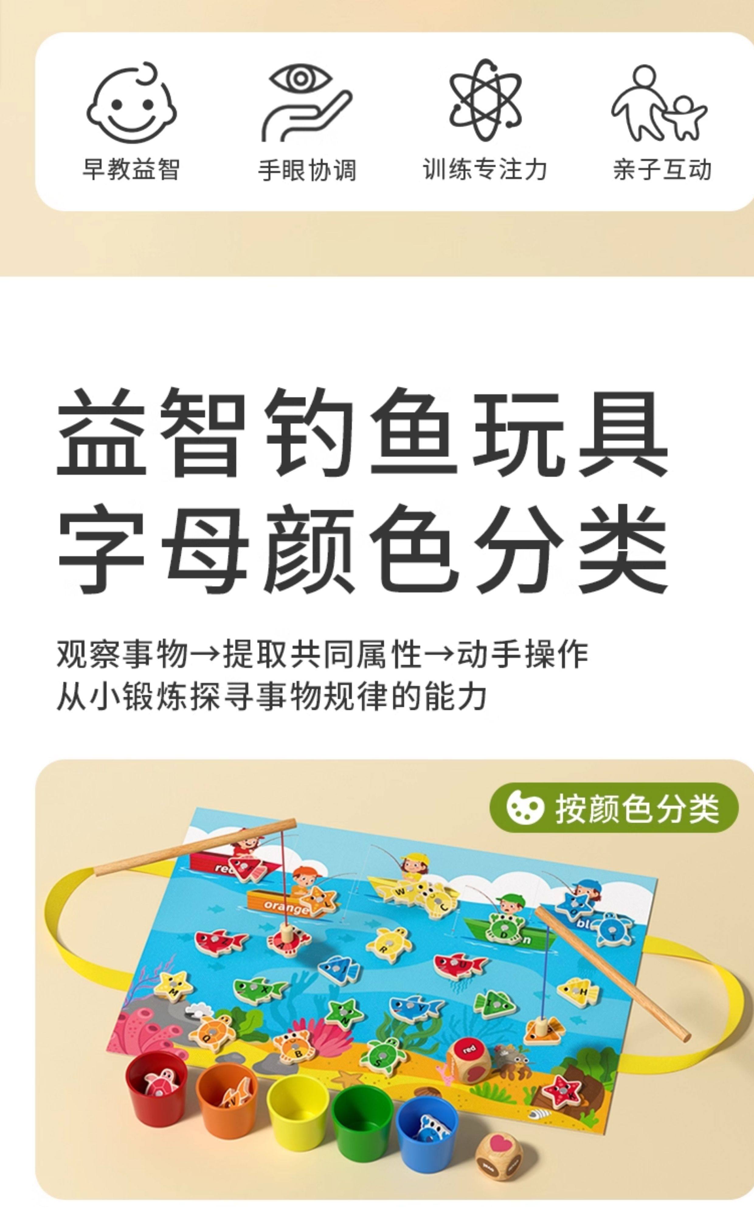 | Color Classification | Fishing Color Sorting Cup [Color Classification/Alphabet Recognition],Alphabet Pond Fishing [Alphabet Cognition/Number Cognition],Fishing Color Sorting Cup + 40 Thread Beads,Fishing Color Sorting Cup + Color Sorting Cup,Fishing Color Classification Cup + Fruit Column Threading,Fishing Color Sorting Cup + Montessori Coin Drop House,Fishing Color Sorting Cup + Double-Sided Geometric Sorting,Fishing Color Sorting Cup + Double-Sided Donut Sorting,Fishing Color Sorting Cup + Save the Cheese,Fishing Color Sorting Cup + Animal Threading Toy,Fishing Color Sorting Cup + Animal Stacking Game,Fishing Color Sorting Cup + Rainbow Stacking Toy,Fishing Color Sorting Cup + Toolbox,Fishing Color Sorting Cup + Calendar Clock,Fishing Color Sorting Cup + Montessori Multifunctional Coin Box,- |