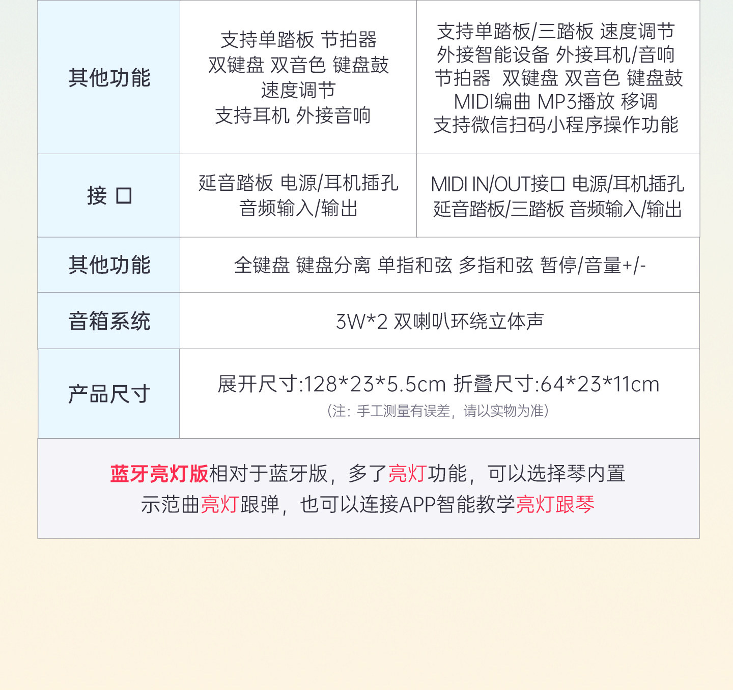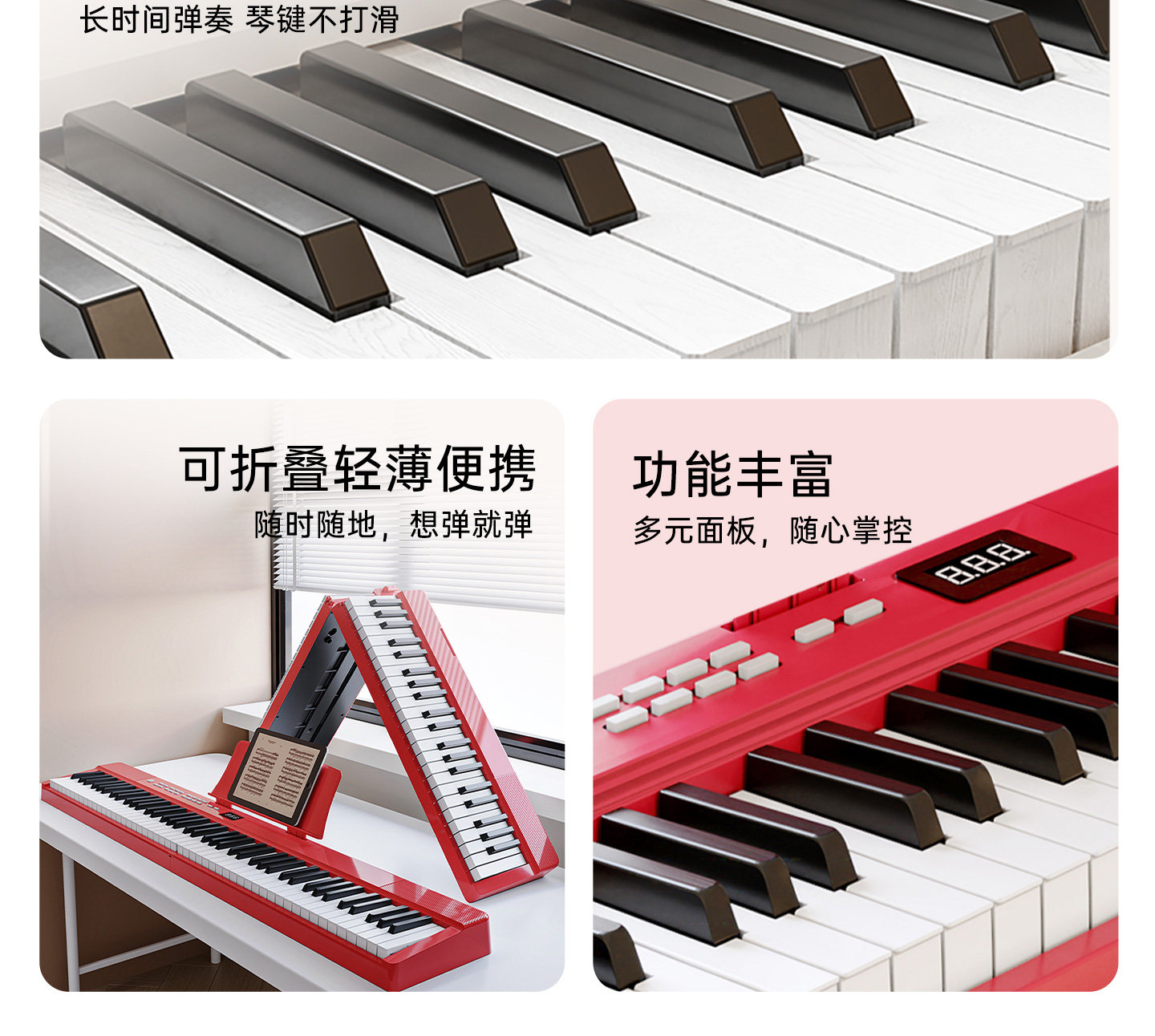 | Color Classification | [Vibrant Red Folding] 88-Key Standard Edition,[Vibrant Red Folding] 88-Key Strength Bluetooth Version,[Vibrant Red Folding] 88-Key Bluetooth Illuminated Version,[Sakura Pink Folding] 88-Key Standard Edition,【Sakura Pink Foldable】88-Key Graded Response Bluetooth Keyboard,【Sakura Pink Foldable】88-Key Weighted Bluetooth Illuminated Keyboard,[Rose Pink Folding] 88-Key Standard Edition,[Rose Pink Folding] 88-Key Bluetooth Version,【Rose Pink Foldable】88-Key Weighted Bluetooth Light-Up Keyboard,[Cool Black Folding] 88-Key Standard Edition,【Cool Black Foldable】88-Key Sustain Bluetooth Version,【Cool Black Foldable】88-Key Weighted Bluetooth Illuminated Edition,[Fashion White Folding] 88-Key Standard Edition,【Stylish White Foldable】88-Key Graded Response Bluetooth Keyboard,【Stylish White Folding】88-Key Weighted Bluetooth Illuminated Edition |