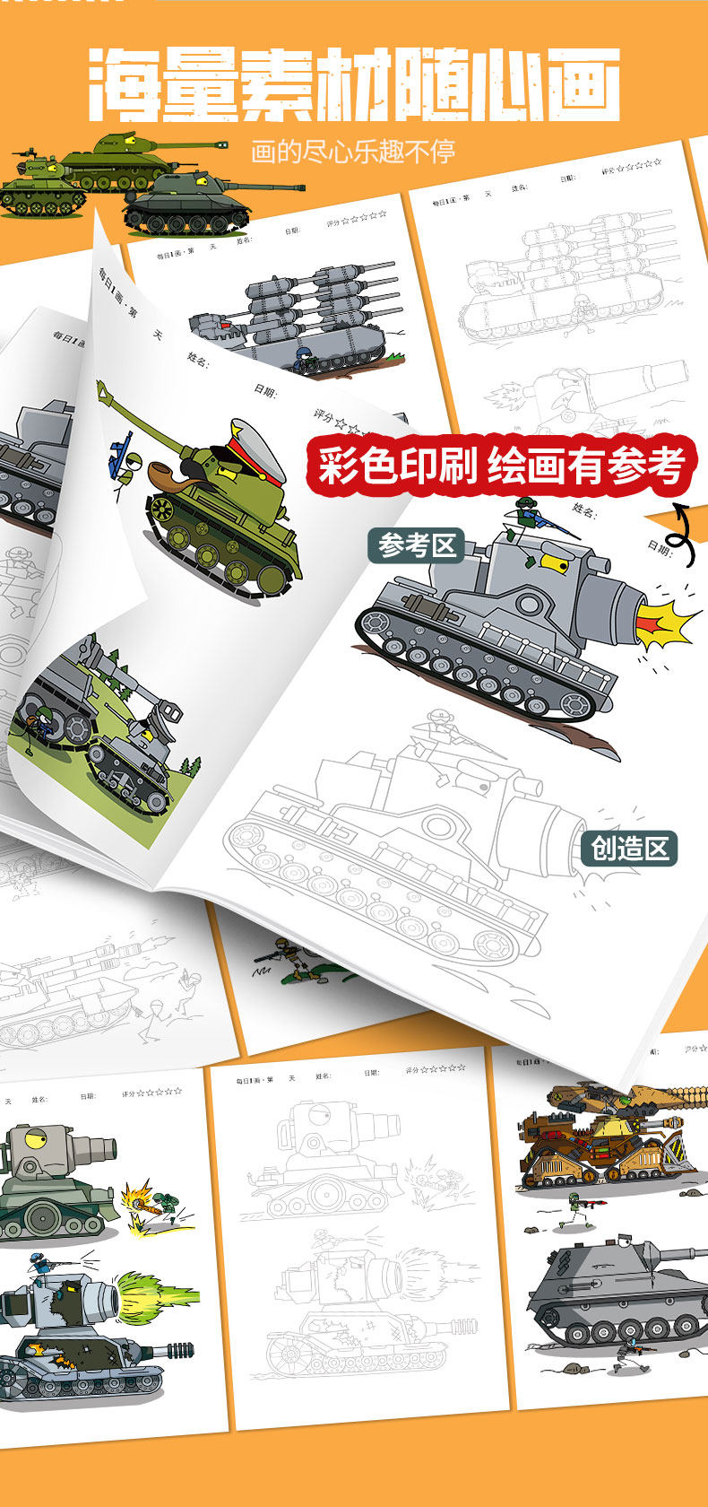 Kv44 World of Tanks Tracing Book Military Model Cartoon Line Drawing Kidsren's Coloring Tracing Book Pen Control Practice Copy Sketch Book Kindergarten Special Graffiti Picture Book Boy Drawing Book Picture Book