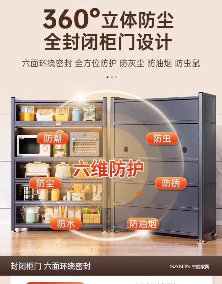 Sanjian Kitchen Storage Rack Floor-Standing Multi-Layer Storage Cabinet Microwave Oven Household Dust-Proof Multi-Functional Cabinet Storage Cabinet