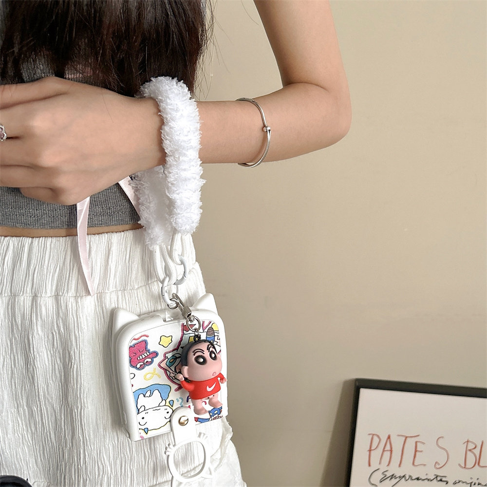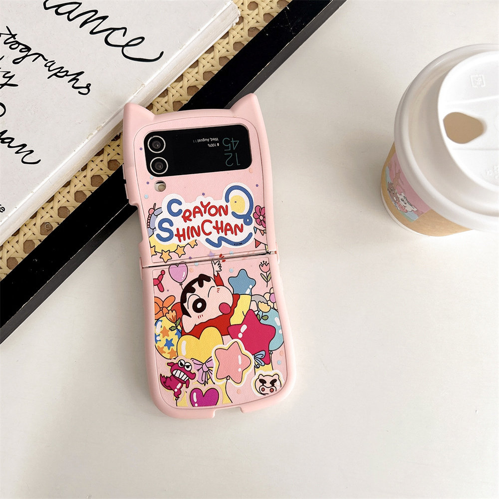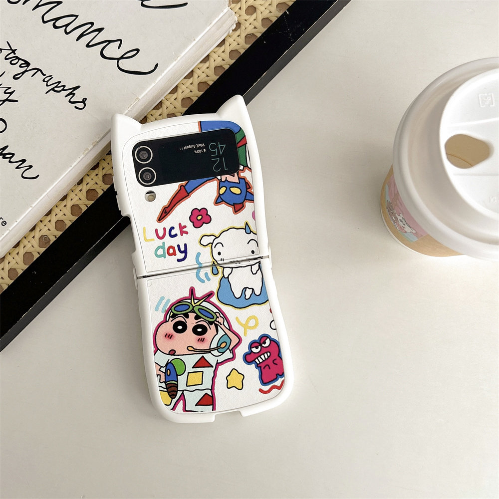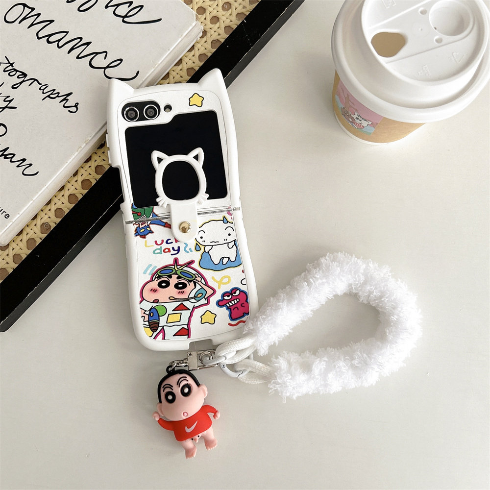 Suitable for Samsung Zflip5 Phone Case Zflip 40% off Stackable Phone Protective Case with 3D Cat Ears Cartoon Cute Zflip4 Silicone Soft Case Zflip3 New Crayon Shin-Chan Style for Men and Women with Lanyard
