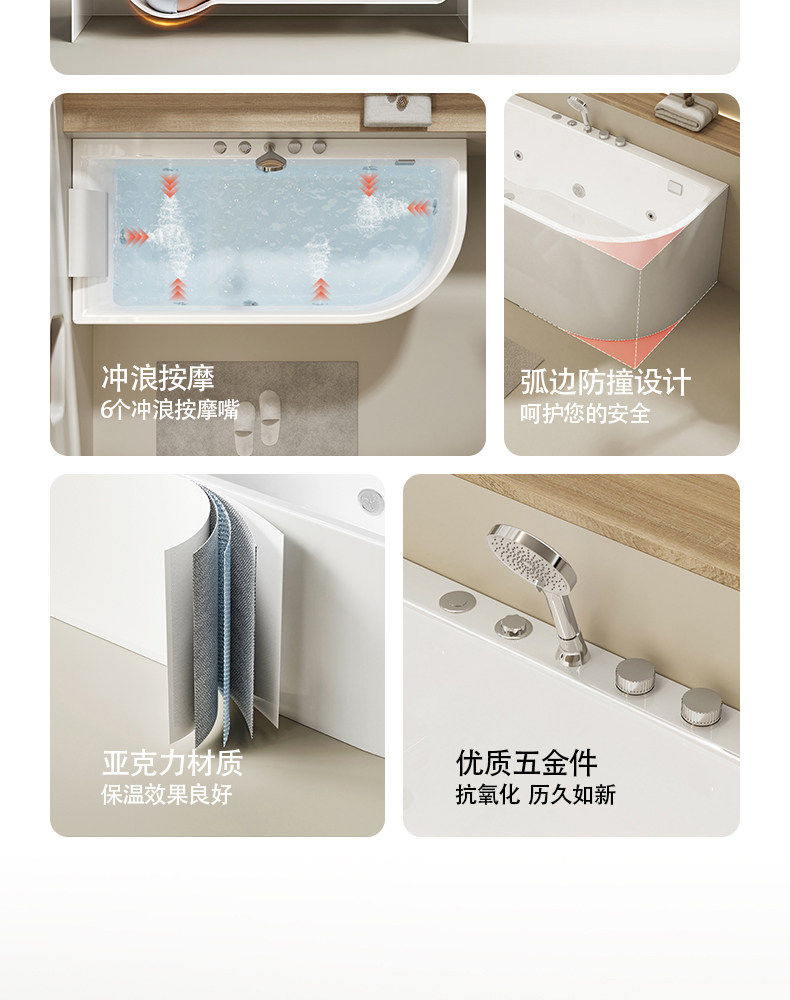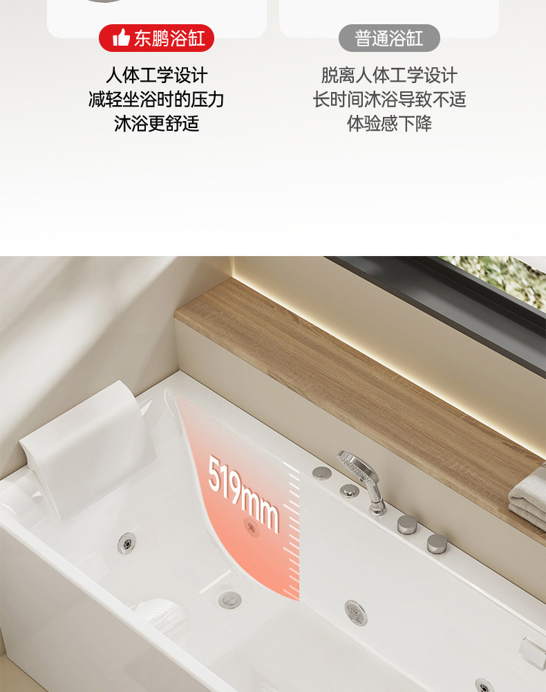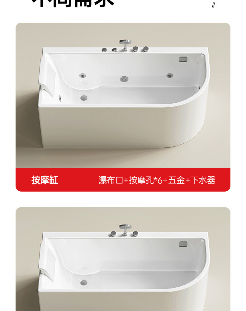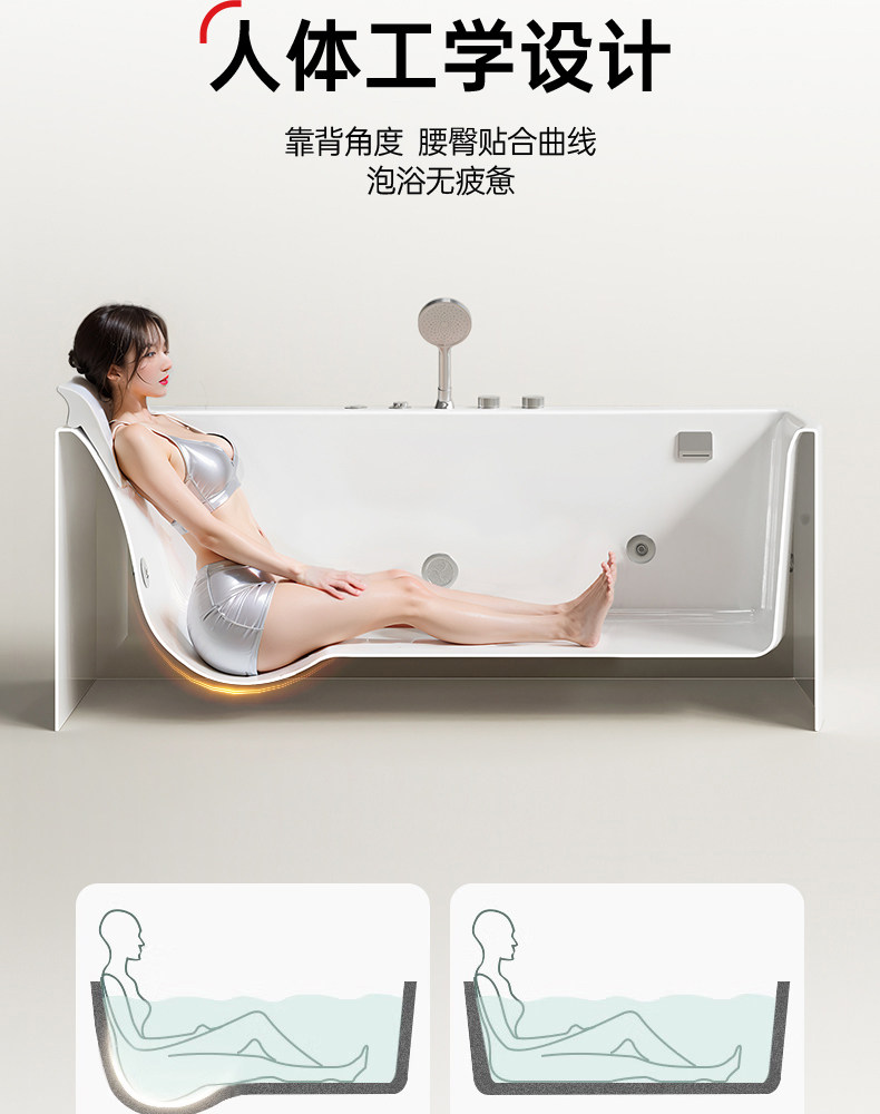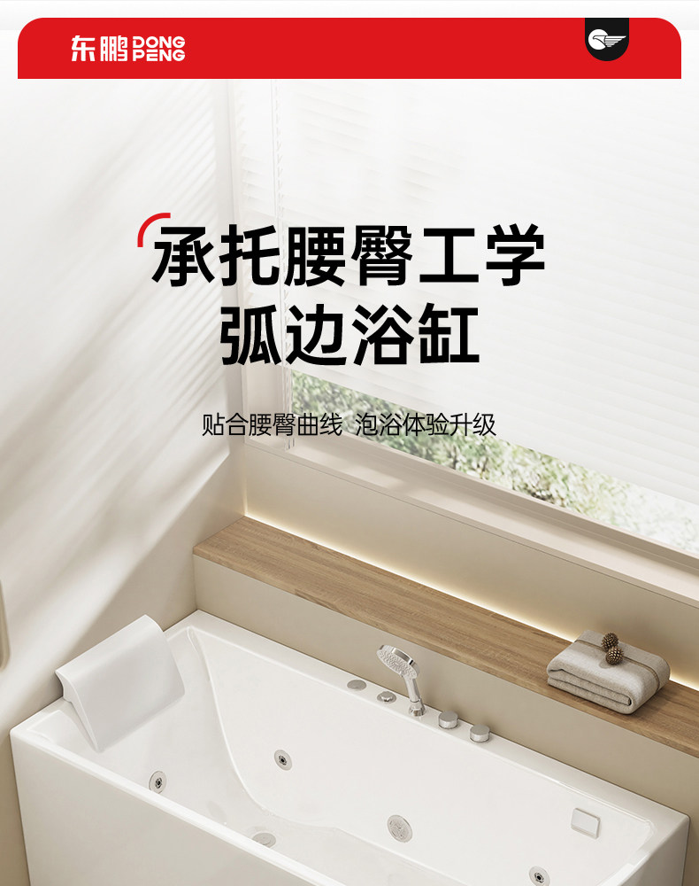 Dongpeng 2025 New Model Acrylic Surfing Massage Bathtub for Adults, Deep Soaking, Curved Edge, Anti-Collision, Small Household Use, Hip-Supporting Bathtub