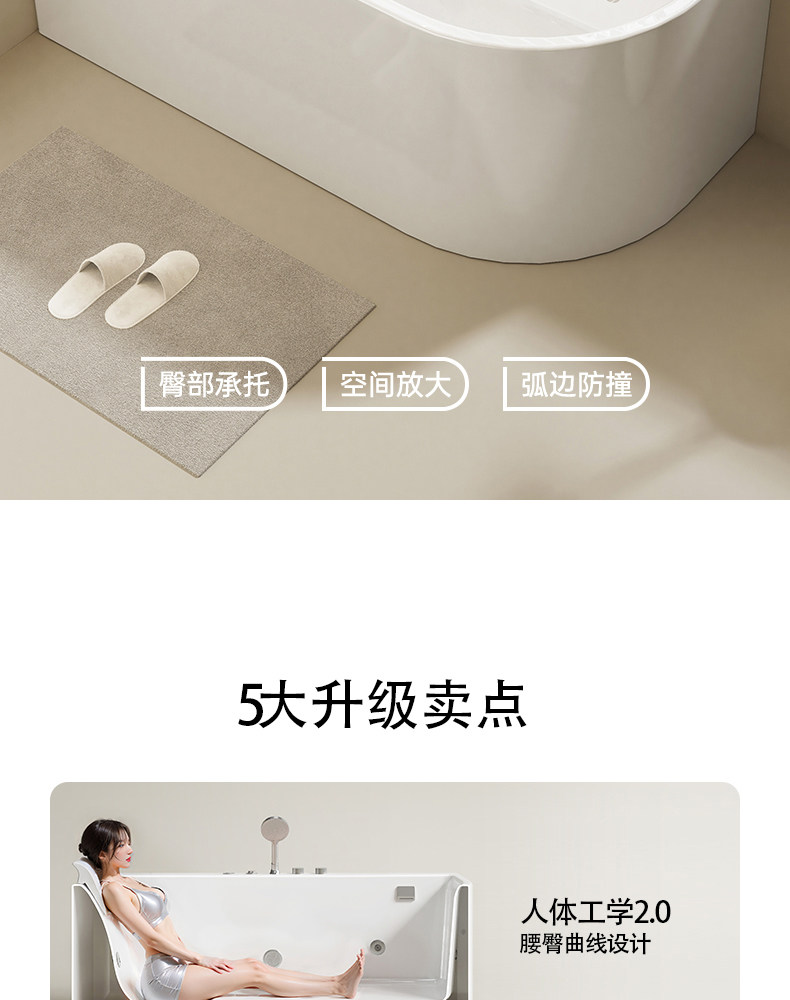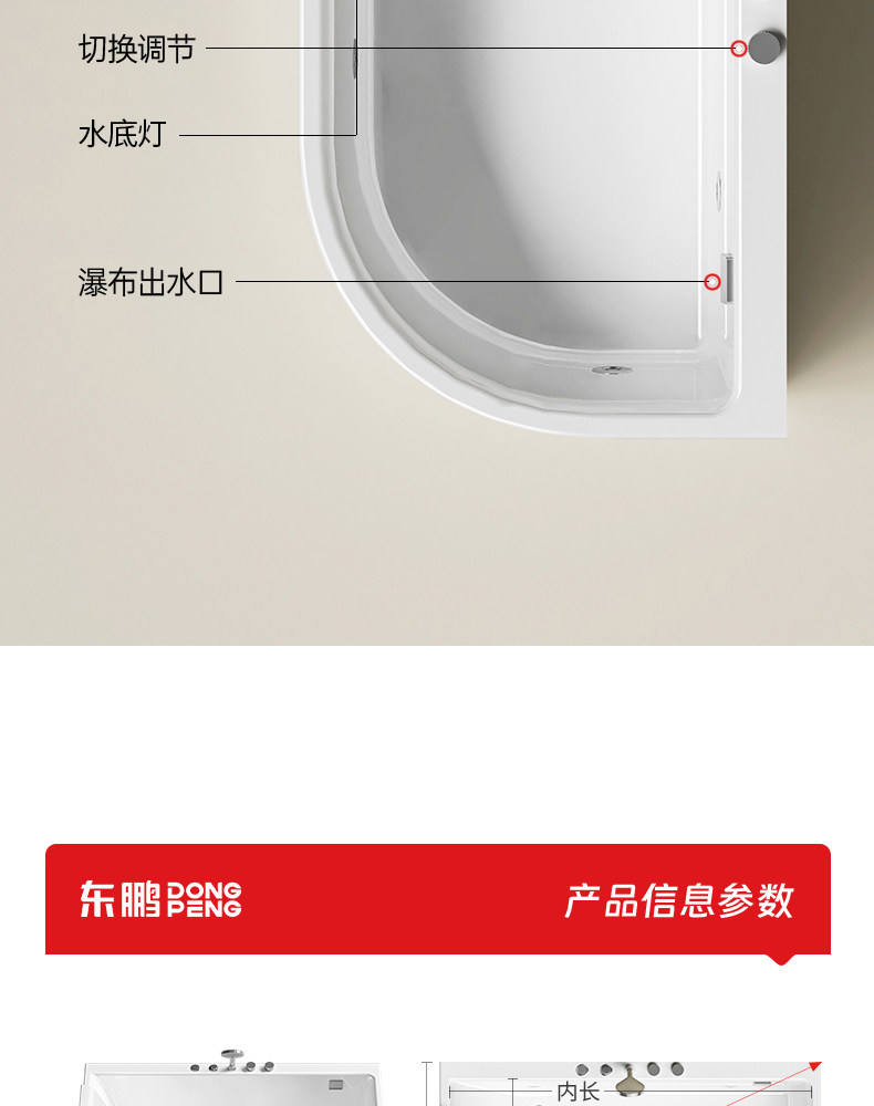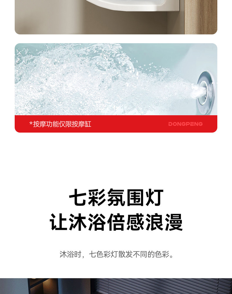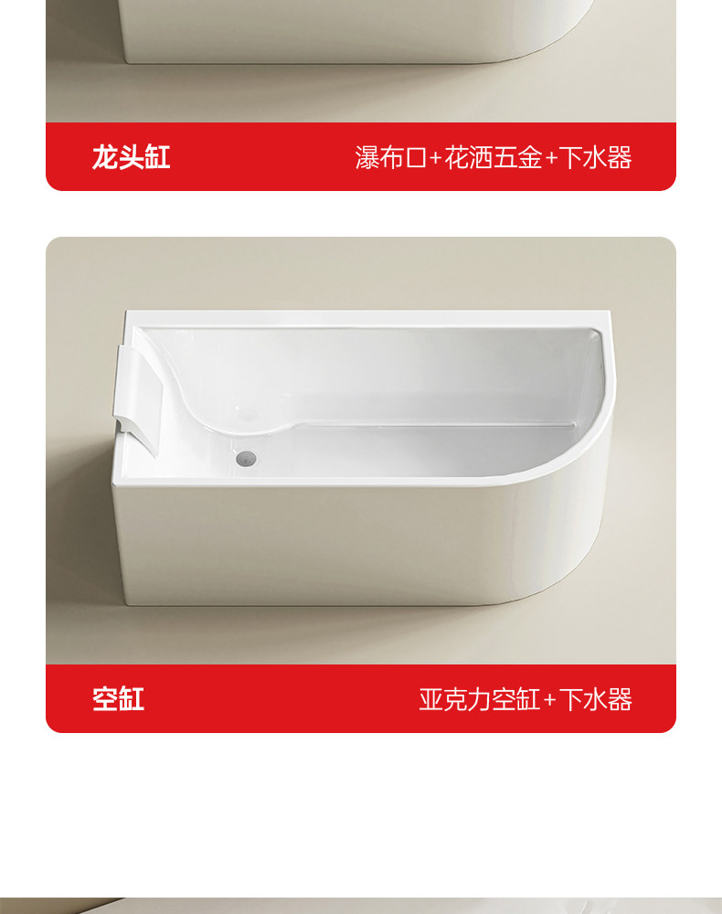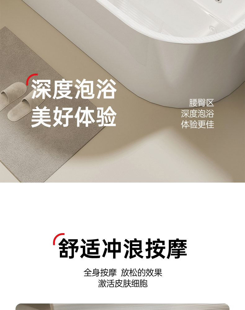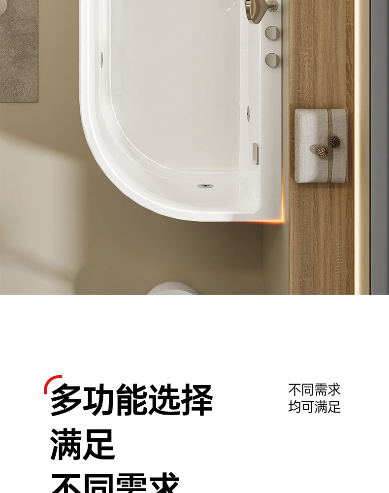 Dongpeng 2025 New Model Acrylic Surfing Massage Bathtub for Adults, Deep Soaking, Curved Edge, Anti-Collision, Small Household Use, Hip-Supporting Bathtub