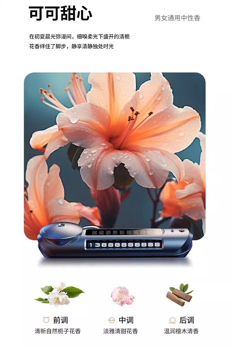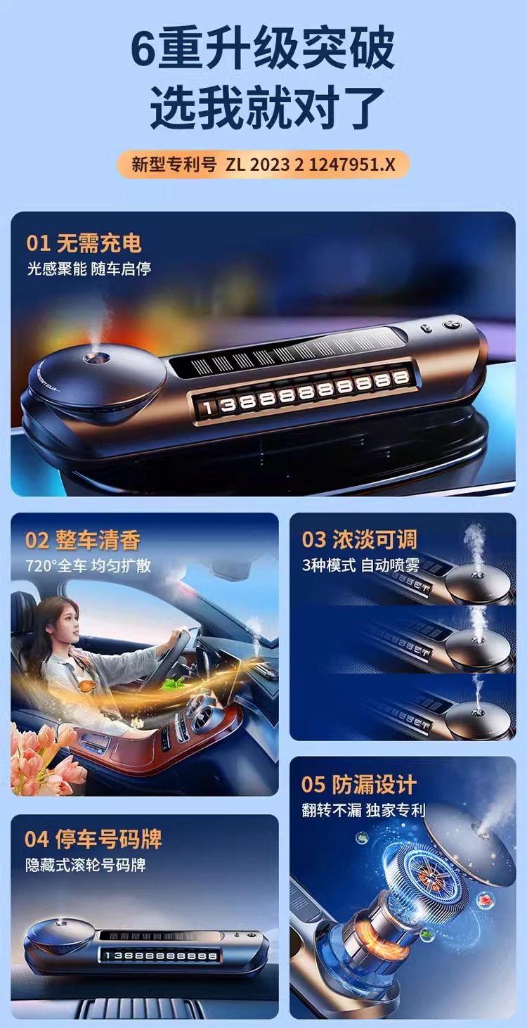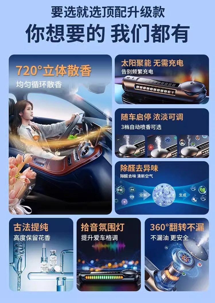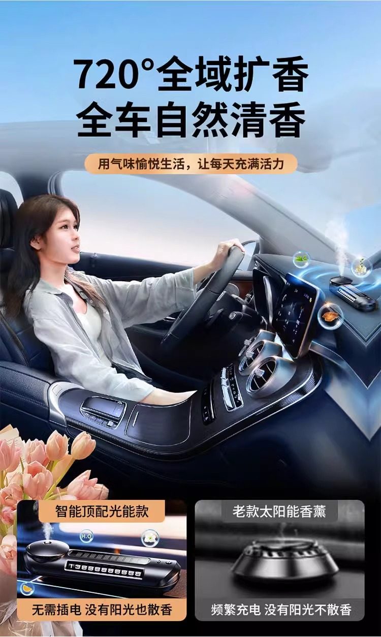 Car Air Freshener Solar-Powered Car Perfume Automatic Fragrance Diffuser for Car Interior Light Fragrance High-End Ornament New Model 97648