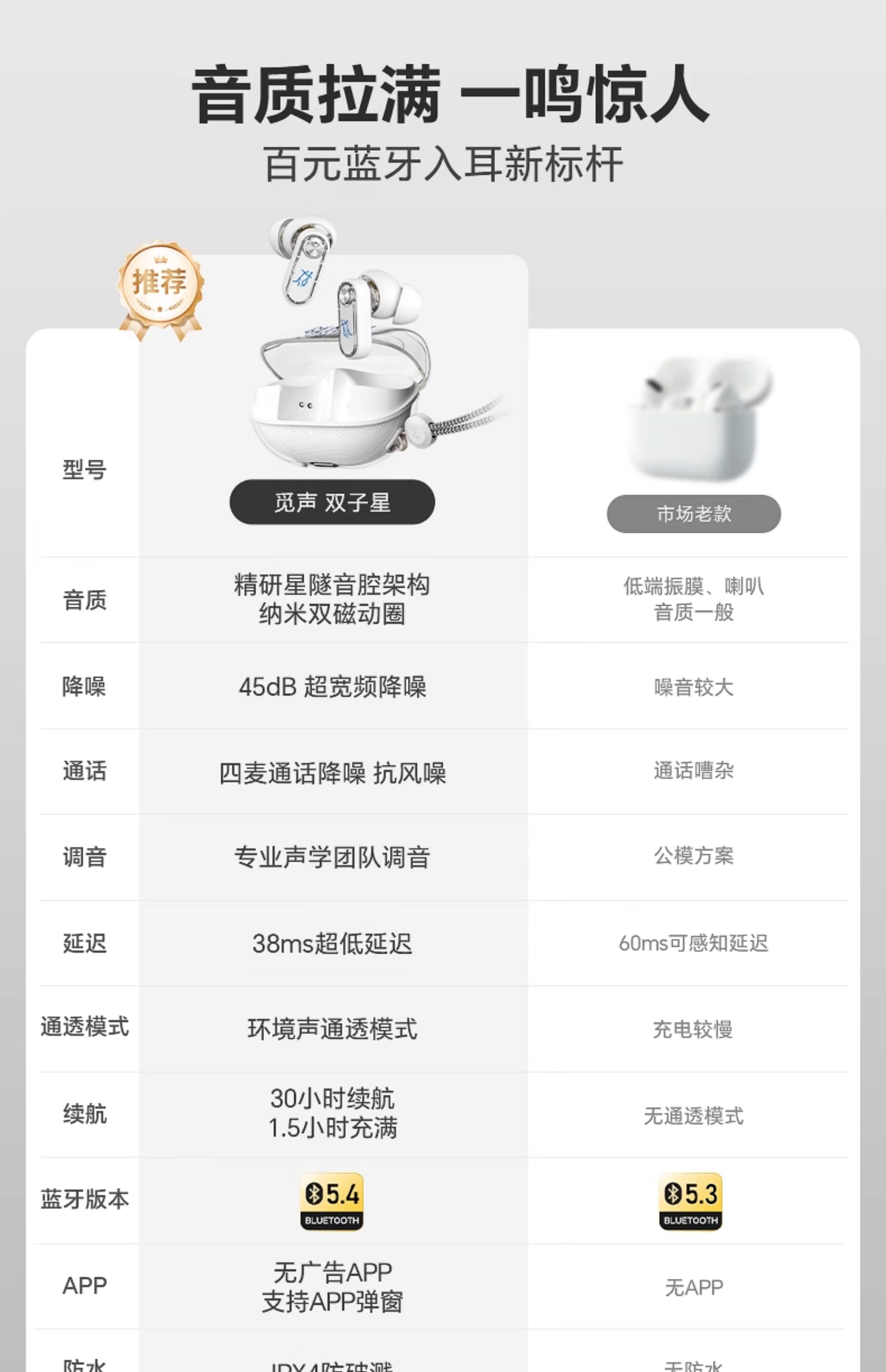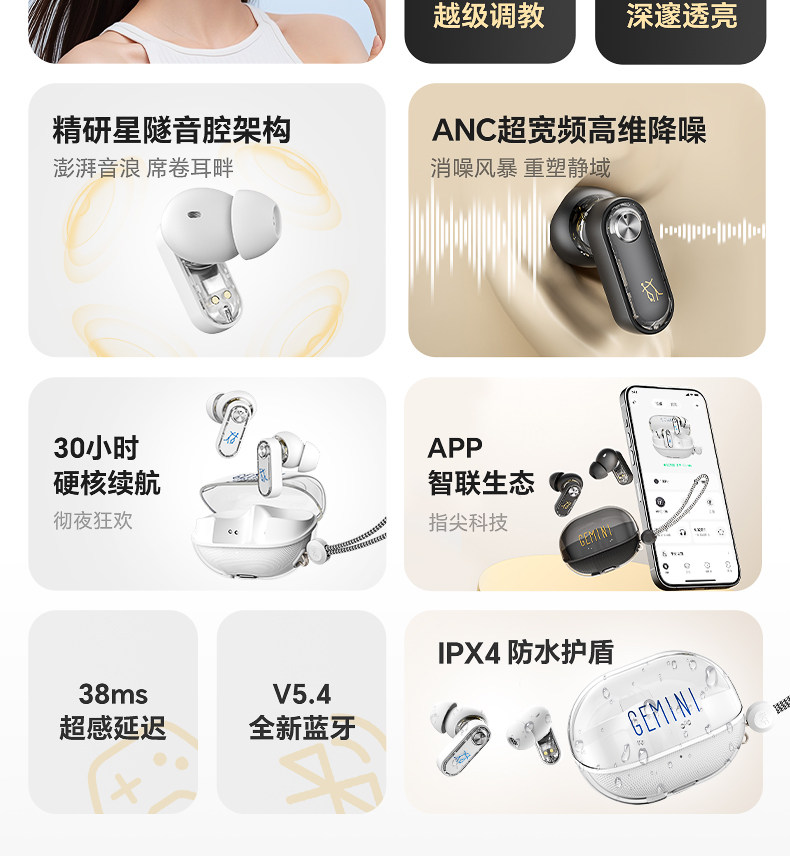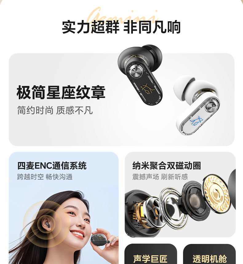 | Color Classification | Worry-Free Purchase - 2-Year Warranty - Free Trial, Return after Unpacking, We Bear the Return Shipping Fee [All Options Support Worry-Free Purchase],Classic White [Hifi Powerful Sound Quality|Meticulously Crafted Star Tunnel Acoustic Cavity|Broadband Deep Sea Noise Reduction|Four-Mic Hd Calling|30 Hours of Battery Life],Classic Black [Hifi Powerful Sound Quality|Meticulously Crafted Star Tunnel Acoustic Cavity|Broadband Deep Sea Noise Reduction|Four-Mic Hd Calling|30 Hours of Battery Life],Classic White + Transparent Protective Case [Hifi Surging Sound Quality|Meticulously Crafted Star Tunnel Acoustic Cavity|Broadband Deep Sea Noise Reduction|Four-Mic Hd Calling|30 Hours of Battery Life],Classic Black + Transparent Protective Case [Hifi Surging Sound Quality|Meticulously Crafted Star Tunnel Acoustic Cavity|Broadband Deep Sea Noise Reduction|Four-Mic Hd Calling|30 Hours of Battery Life],Gemini Pro Classic White [10mm Carbon Nano Diaphragm | Ldac Hd Decoding | Anc Noise Reduction | 30 Hours of Battery Life],Gemini Pro Classic Black [10mm Carbon Nano Diaphragm | Ldac Hd Decoding | Anc Noise Reduction | 30 Hours of Battery Life] |
