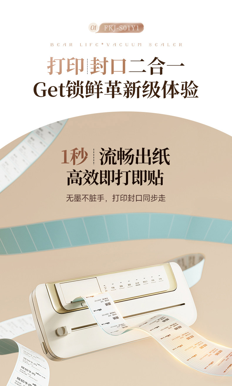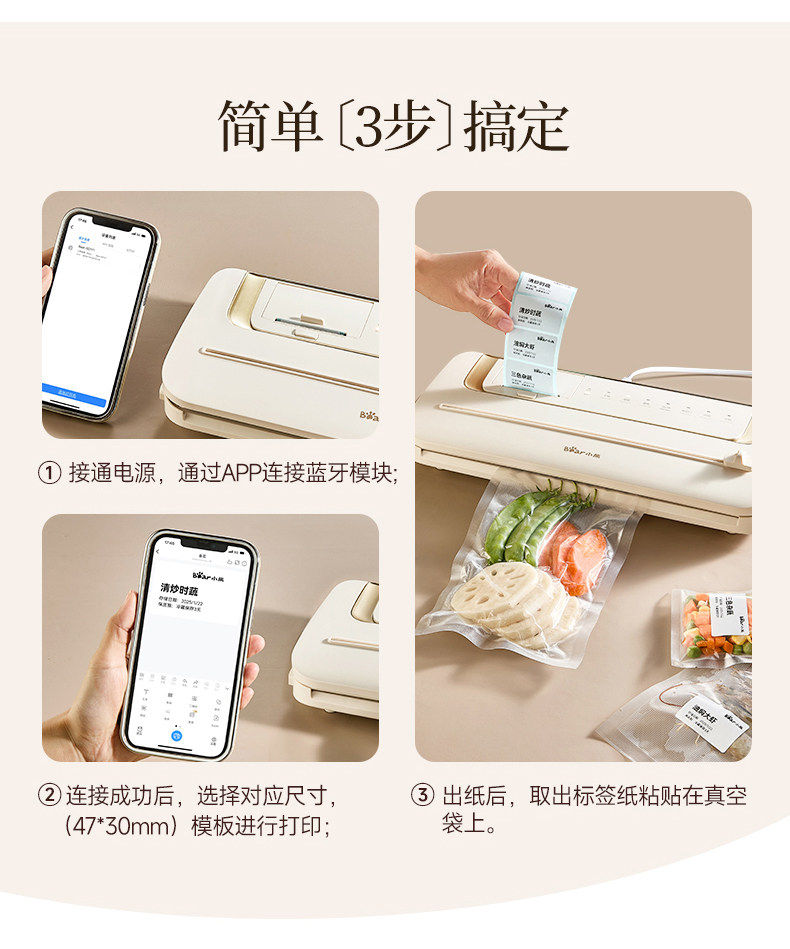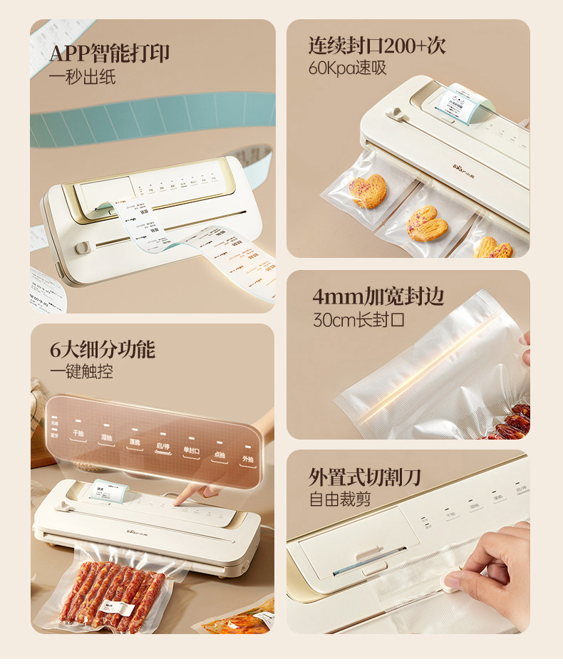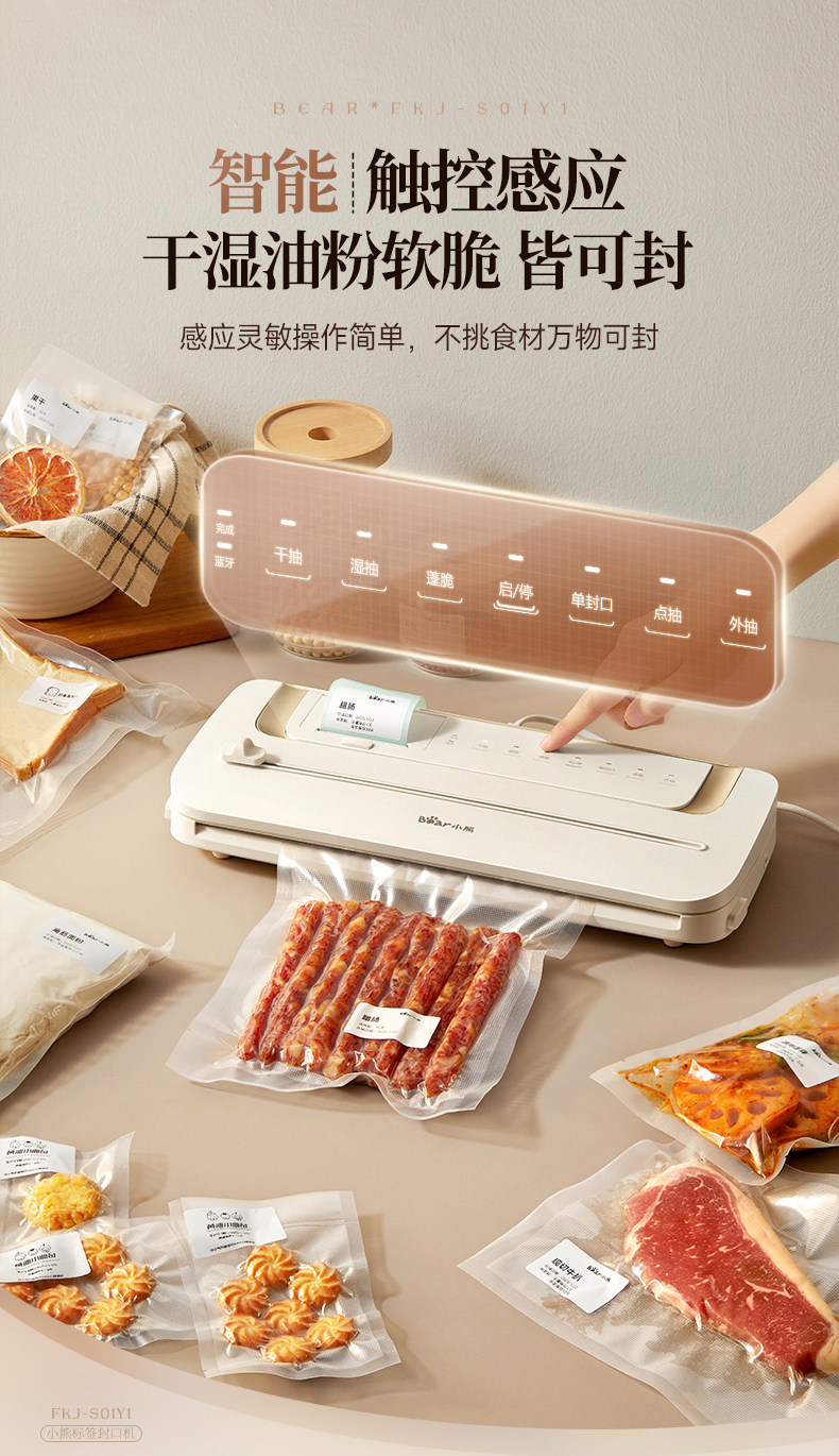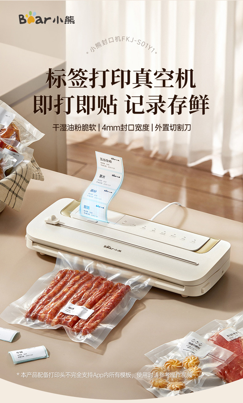 Bear Vacuum Sealer Label Printing Sealing Machine Small Household Food Preservation Packaging Machine Plastic Sealing Machine Sealer