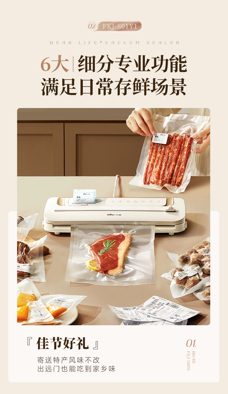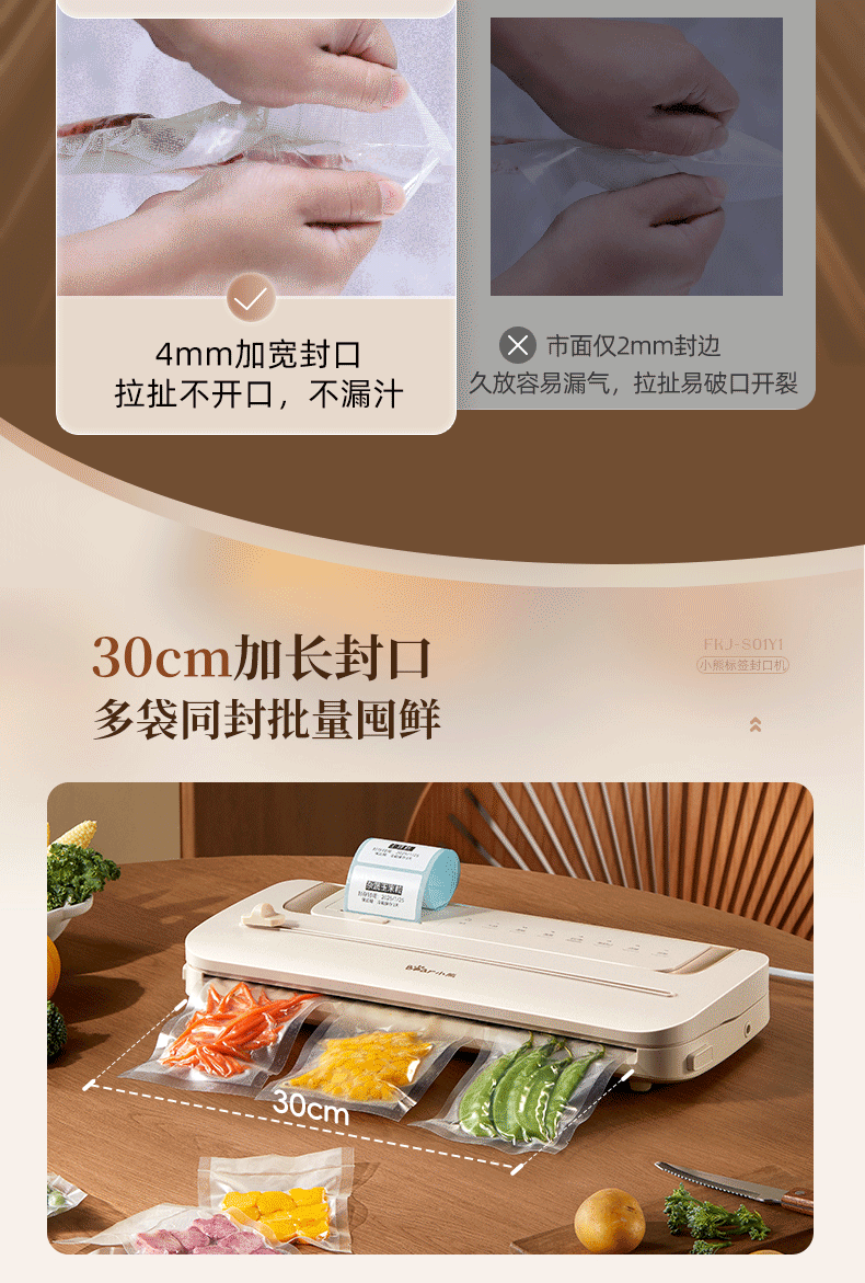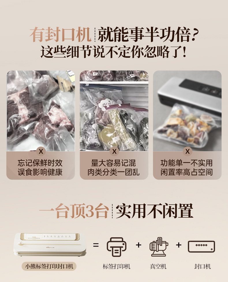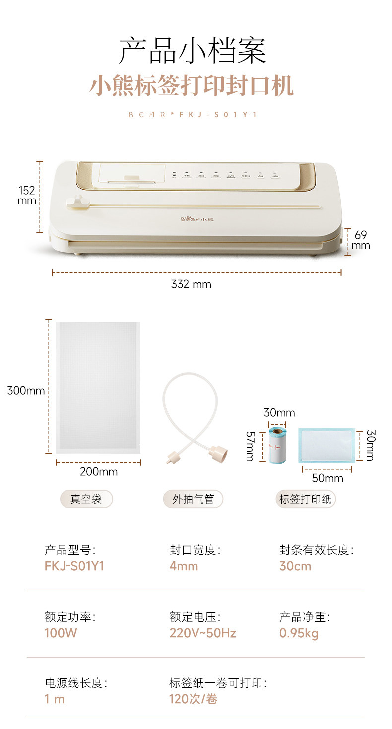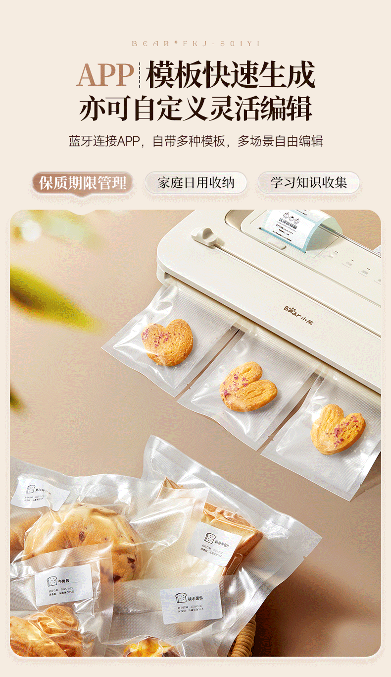Bear Vacuum Sealer Label Printing Sealing Machine Small Household Food Preservation Packaging Machine Plastic Sealing Machine Sealer