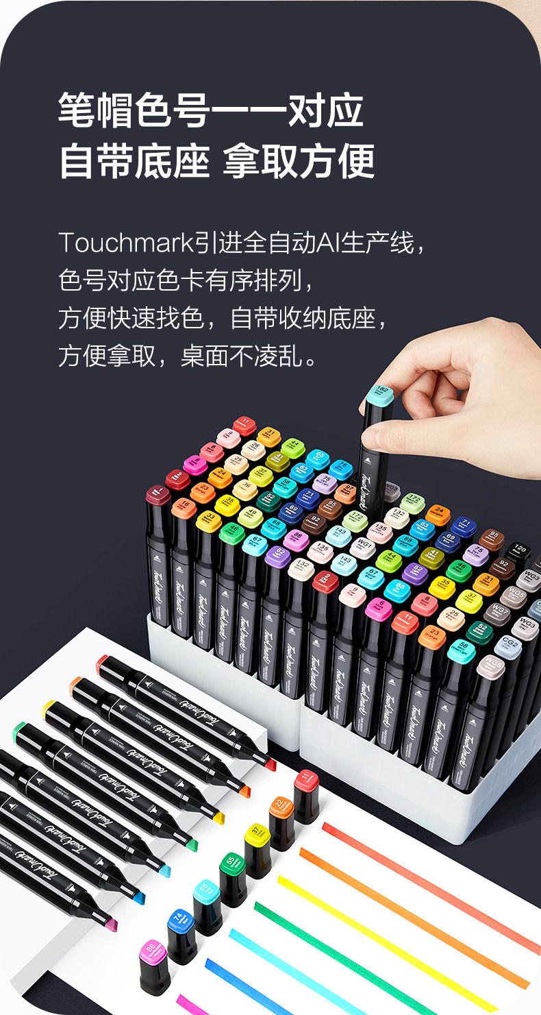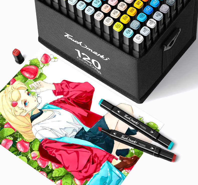 Touchmark 168-Color Marker Pen Art Set, Alcohol-Based Oil-Based Children's Elementary School 120-Color Complete Set of Watercolor Pens, Exam Preparation, Anime Skin Color Double-Headed Drawing Pens