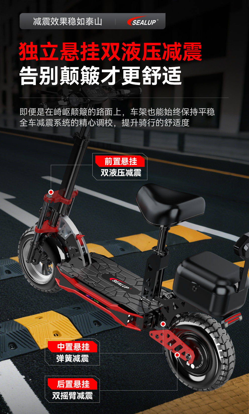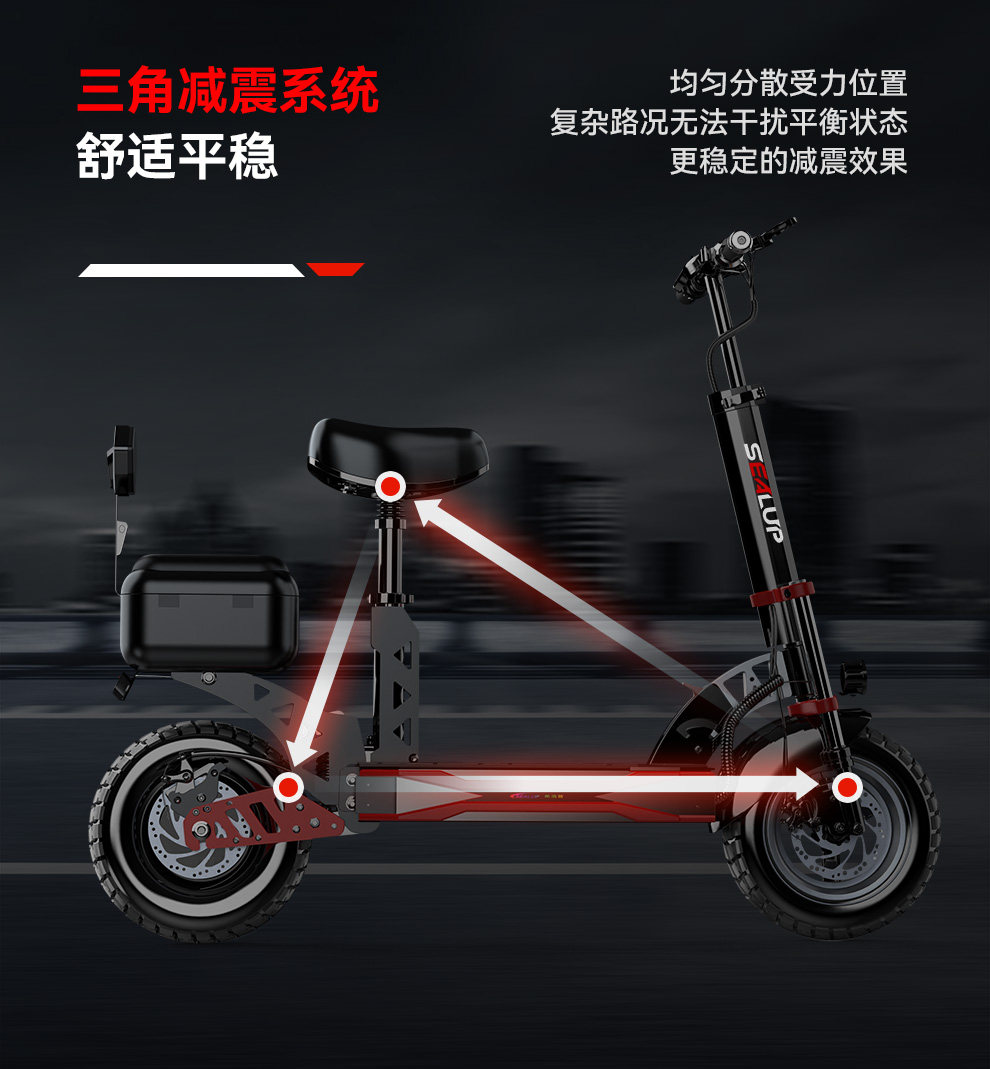 Hilop Electric Scooter, Commuter Scooter, Electric Folding Scooter with Trunk, Off-Road Shock-Absorbing Small Electric Scooter