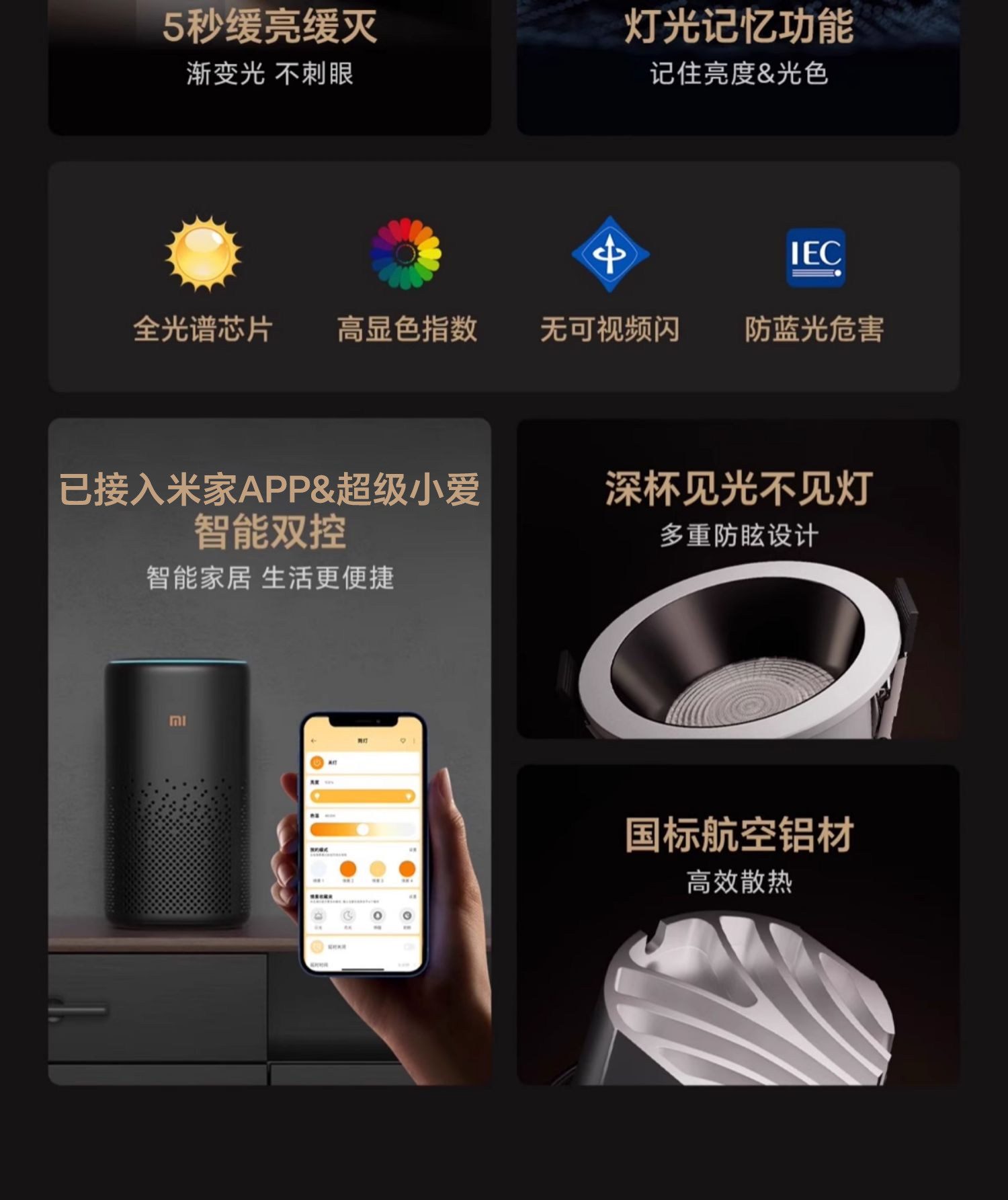 | Color Classification | Smart Downlight - White - 7W - Stepless Dimming & Color Temperature Adjustment [Cutout 75-80mm] - Mijia App Enabled,Smart Downlight - White - 10W - Stepless Dimming & Color Temperature Adjustment [Cutout 75-80mm] - Mijia App Enabled,Smart Downlight - White - 12W - Stepless Dimming & Color Temperature Adjustment [75-80mm Cutout] - Mijia App Enabled,Smart Spotlight - White - 7W - Stepless Dimming & Color Temperature Adjustment [Surface Mounted, No Drilling Required] - Mijia App Enabled,Smart Spotlight - White - 12W - Stepless Dimming & Color Temperature Adjustment [Surface Mounted, No Drilling Required] - Mijia App Enabled,Smart Spotlight - White - 15W - Stepless Dimming & Color Temperature Adjustment [Surface Mounted, No Drilling Required] - Mijia App Enabled,Smart Spotlight - Black - 7W - Stepless Dimming & Color Temperature Adjustment [Surface Mounted, No Drilling Required] - Mijia App Enabled,Smart Spotlight - Black - 12W - Stepless Dimming & Color Temperature Adjustment [Surface Mounted, No Drilling Required] - Connected to Mi Home App,Smart Spotlight - Black - 15W - Stepless Dimming & Color Temperature Adjustment [Surface Mounted, No Drilling Required] - Mijia App Enabled,Smart Spotlight - Black/White - 7W - Stepless Dimming & Color Temperature Adjustment [Surface Mounted, No Drilling Required] - Mijia App Enabled,Smart Spotlight - Black/White - 12W - Stepless Dimming & Color Temperature Adjustment [Surface Mounted, No Drilling Required] - Mijia App Enabled,Smart Spotlight - Black/White - 15W - Stepless Dimming & Color Temperature Adjustment [Surface Mounted, No Drilling Required] - Mijia App Enabled |