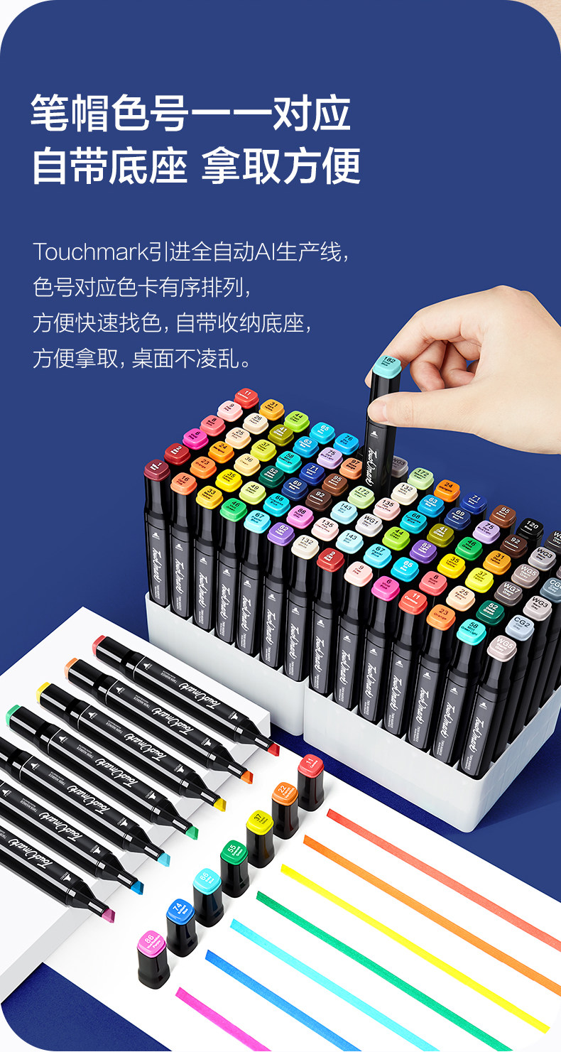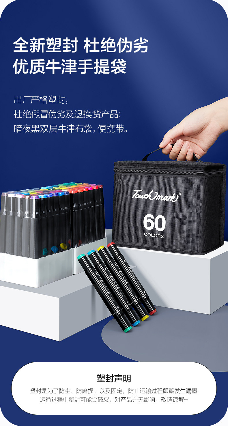 Touchmark Marker Pens for Elementary School Students, Oil-Based Waterproof Set for Middle School Students, Children, Kindergarten Art Drawing Animation Pens, Watercolor Pens, 48/60/80/120 Colors, Double-Ended Colored Pens