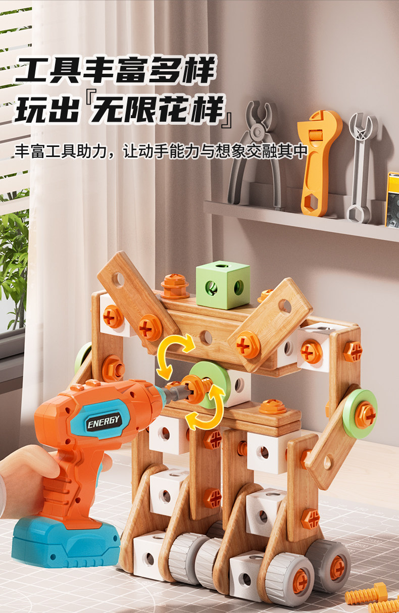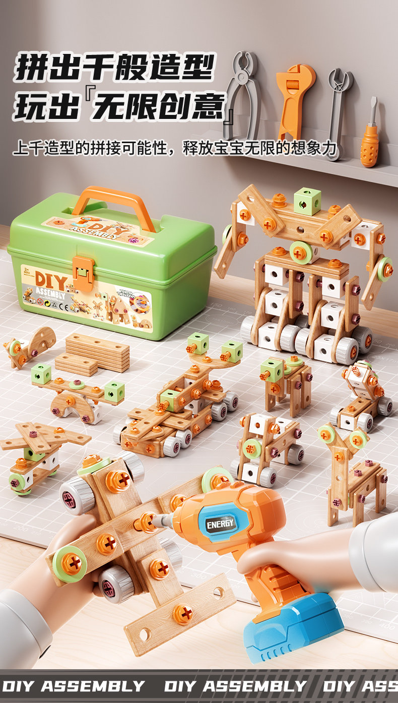 Screw Toy Children's Repair Tool Box Boys' Educational Hands-On Screwdriver Electric Drill Assembly for Babies Aged 3 to 6 Years Old