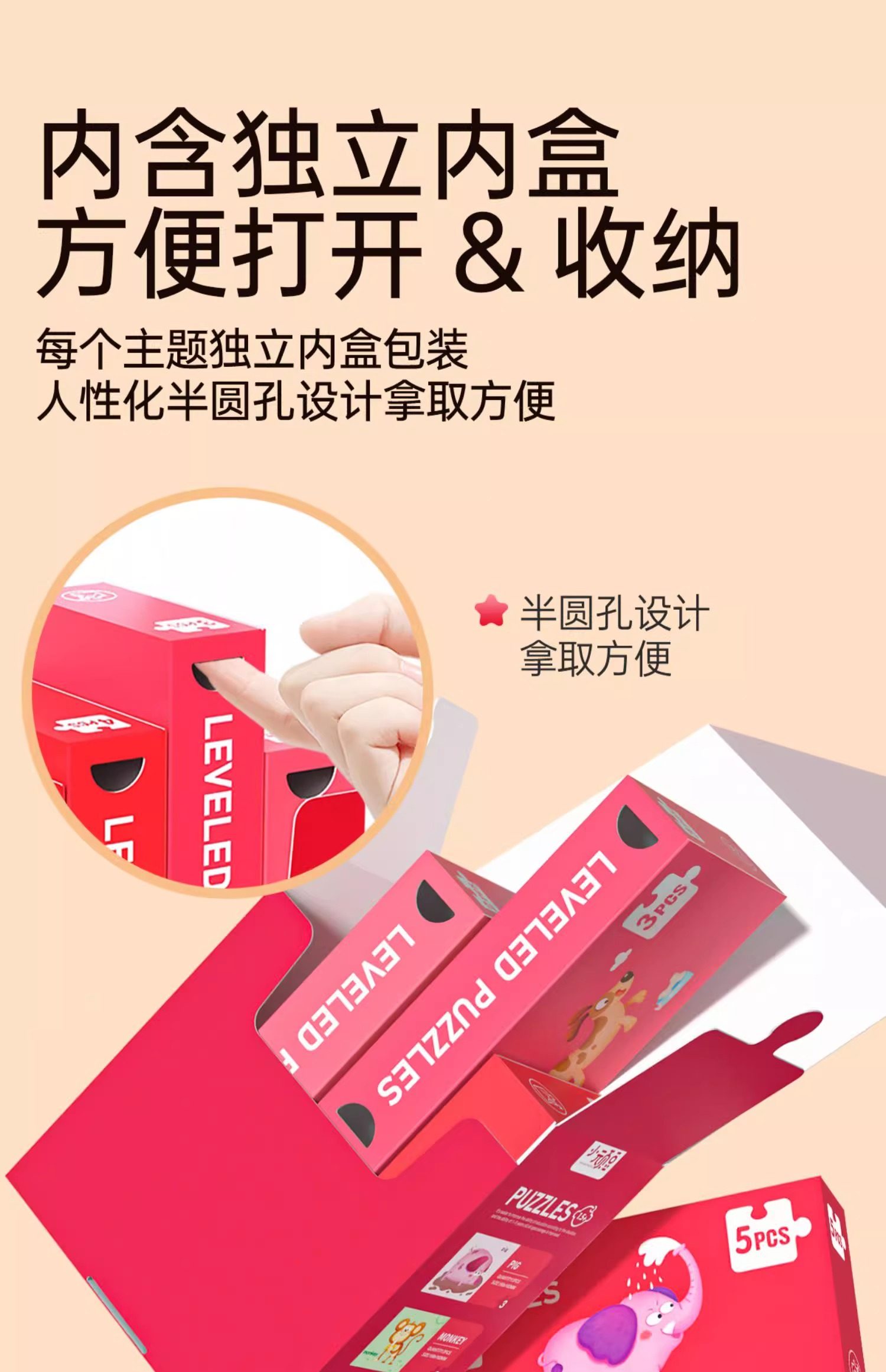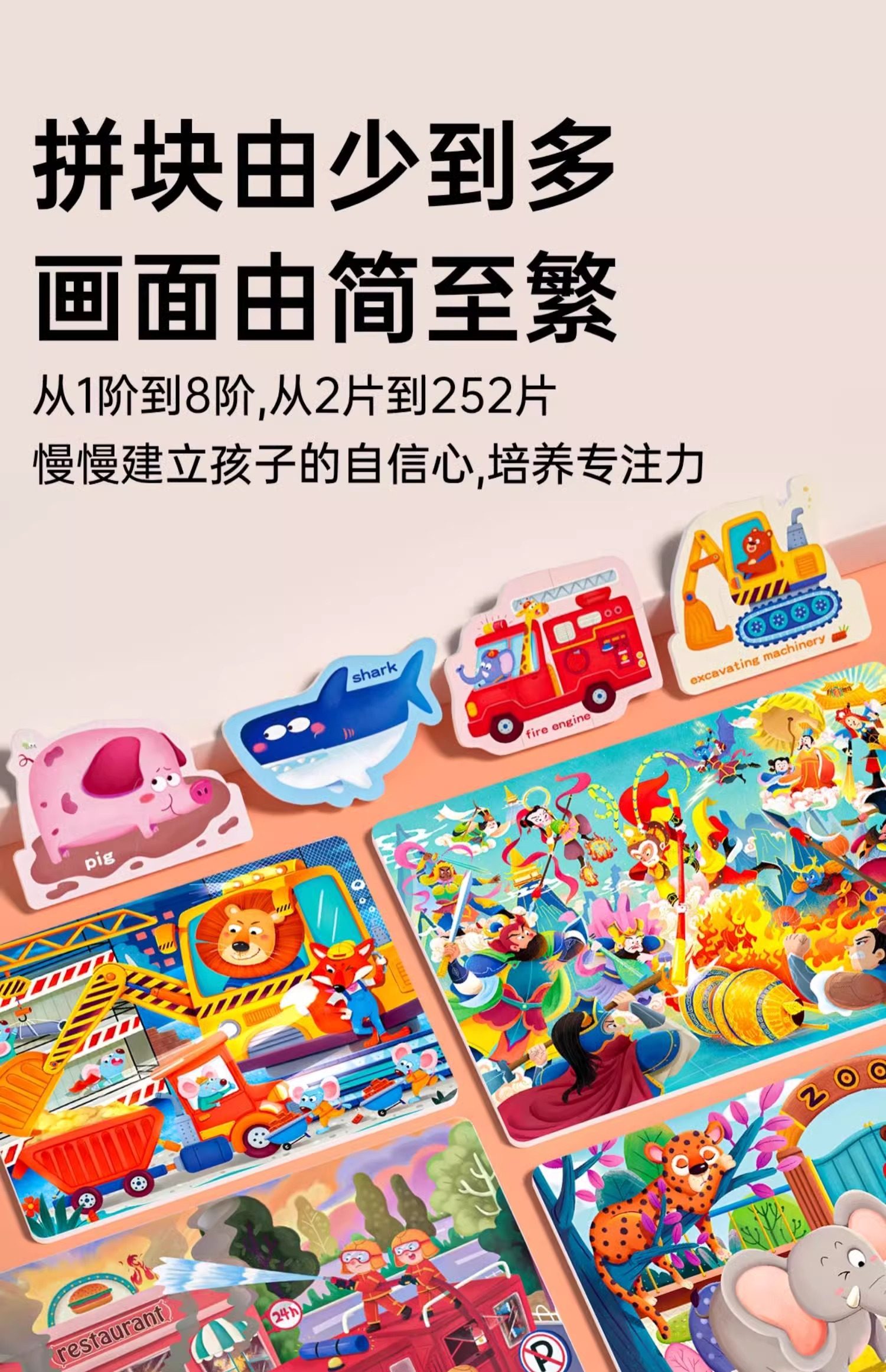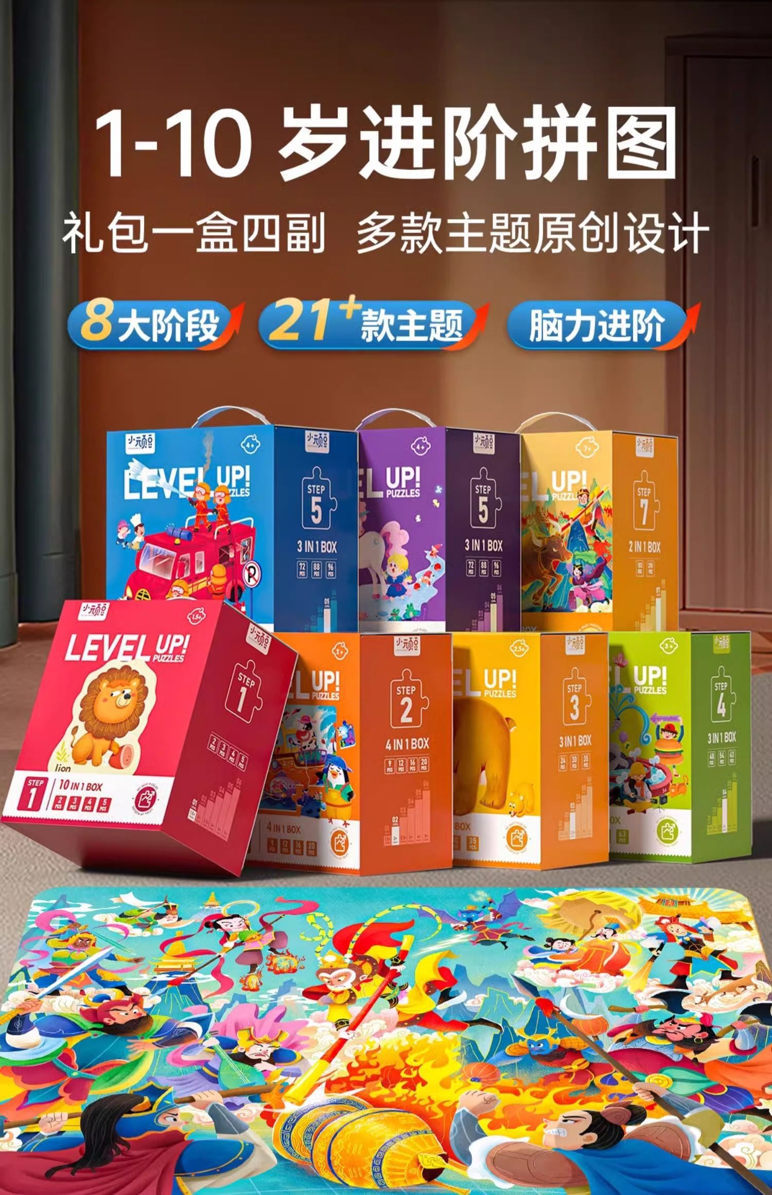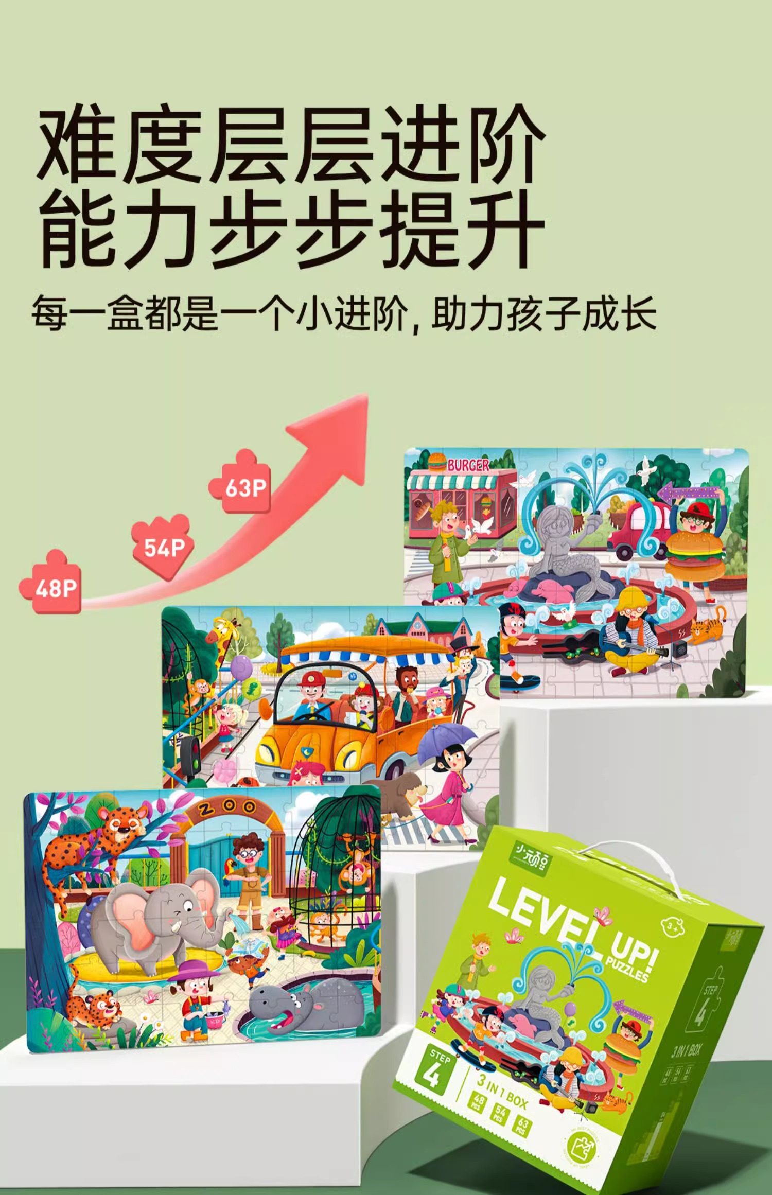 | Color Classification | [Level 1]Animal Cognition (Recommended for 1-2 Years Old_4 Boxes Included),[Level 1]Shape Engineering Vehicle (Recommended for 1-2 Years Old_4 Boxes Included),[Level 2]Fables (Recommended for 2-3 Years Old_Contains 4 Boxes),[Level 2]Four Seasons Awareness (Recommended for 2-3 Years Old_4 Boxes Included),[Level 2]Scene Traffic (Recommended for 2-3 Years Old_Contains 4 Boxes),[Level 2]Scene Animals (Recommended for 2-3 Years Old - Includes 4 Boxes),[Level 3]Transportation (Recommended for 3-4 Years Old_Includes 3 Boxes_Jigsaw Puzzle),[Level 3]Pastoral Farm (Recommended for 3-4 Years Old_Contains 3 Boxes_Jigsaw Puzzle),[Level 3]Forest Animals (Recommended for 3-4 Years Old_Contains 3 Boxes_Puzzle Together),[Level 4]A Princess's Day Out (Recommended for Ages 3+).5-4.5 Years Old (3 Boxes Included),[Level 4]City Scene (Recommended 3).5-4.5 Years Old (3 Boxes Included),[Level 4]Aerospace Engineering (Recommendation 3.5-4.5 Years Old (3 Boxes Included),[Level 4]Dinosaur World (Recommended 3.5-4.5 Years Old (3 Boxes Included),[Level 5]Ocean Adventure (Recommended for Ages 4-5).5 Years Old (3 Boxes Included),[Level 5]Fantasy World (Recommended 4-5.5 Years Old (3 Boxes Included),[Level 5]Firefighter (Recommended 4-5.5 Years Old (3 Boxes Included),[Level 5]Jurassic Dinosaur (Recommended for Ages 4-5).5 Years Old (3 Boxes Included),[Level 5]Candy World (Recommended 4-5.5 Years Old (3 Boxes Included),[Level 6]Space Alien (Recommended for Ages 5-6).5 Years Old (3 Boxes Included),[Level 6]Primitive Tribe (Recommended 5-6.5 Years Old (3 Boxes Included),[Level 6]Ancient Era (Recommended 5-6.5 Years Old (3 Boxes Included),[Level 6]Family Fun (Recommended for Ages 5-6).5 Years Old (3 Boxes Included),[Level 7]Brainstorm (Recommended for 7 Years Old +_Includes 2 Boxes),[Level 7]National Trend Story Telling (Recommended for 7 Years Old +_Includes 2 Boxes_Joined Together),[Level 7]National Trend Journey to the West (Recommended for 7 Years Old +_Includes 2 Boxes_Joined Together),[Level 7]Traditional Festival (Recommended for Ages 7+; Includes 2 Boxes; Combination Puzzle),[Level 8]Trendy Chinese Mythology Stories (Recommended for Ages 8 and up + Includes 2 Boxes),[Level 8]Tang and Song Dynasty Elegance (Recommended for Ages 8 and up + Includes 2 Boxes) |