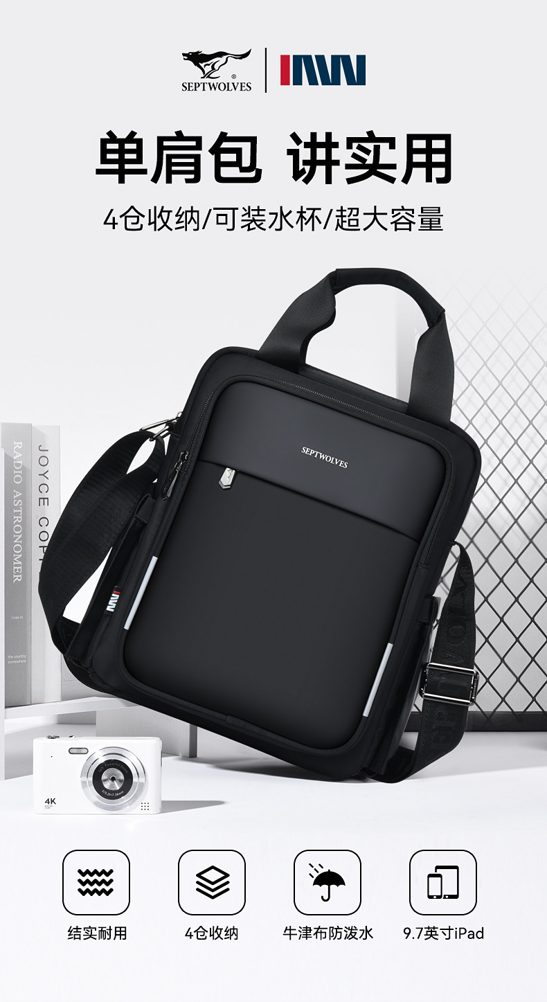 Septwolves Men's Shoulder Bag 2025 New Trendy Casual Crossbody Bag Multifunctional Versatile Fashion Men's Bag