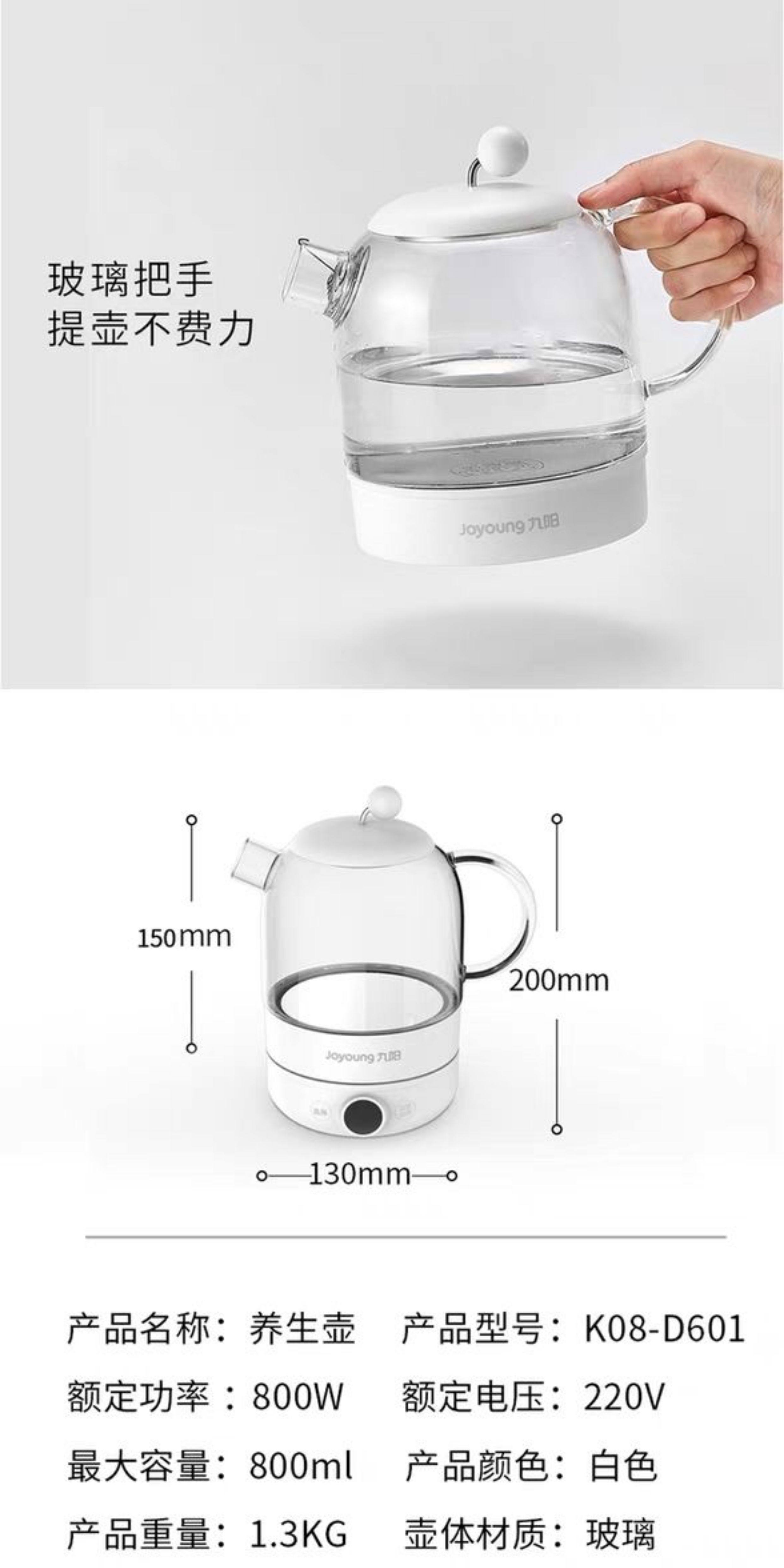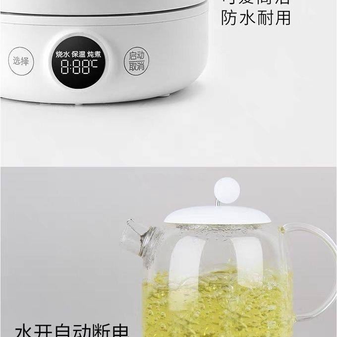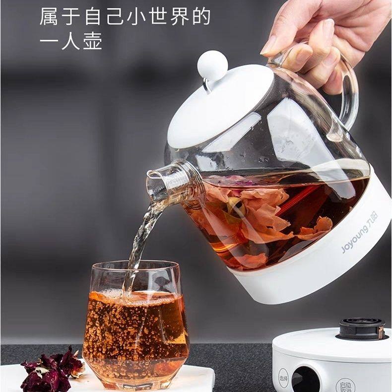 Joyoung D601 White Small Multifunctional Tea Maker for Home Use, Health-Preserving Glass Pot, Cute for Office, 0.8L Capacity