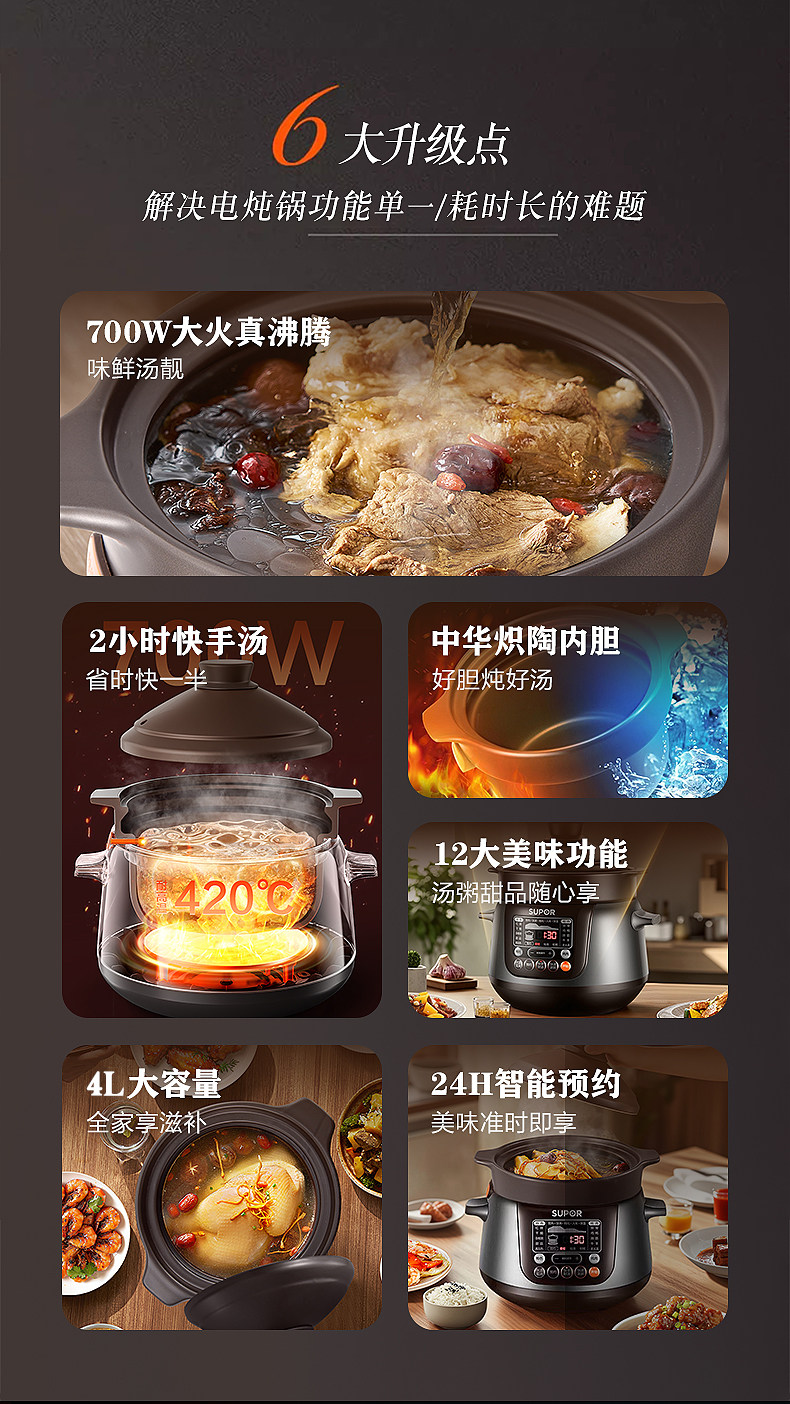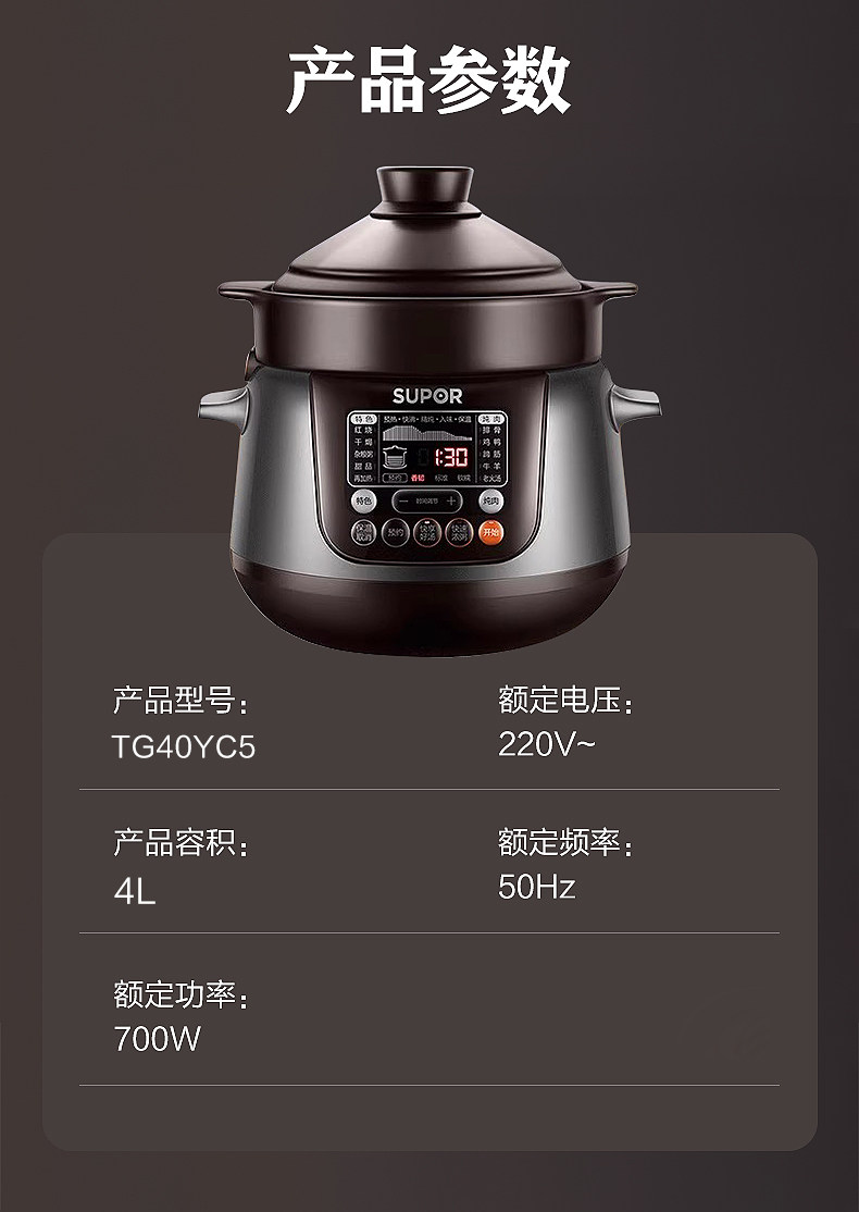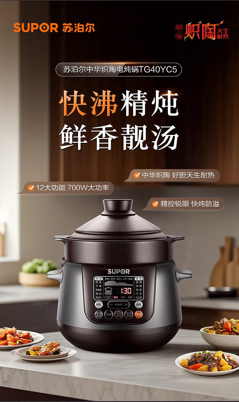 [Same as in Supermarkets] Supor Electric Stew Pot Tg40Yc5 Ceramic Multifunctional Household Fully Automatic 4L Cooking Machine