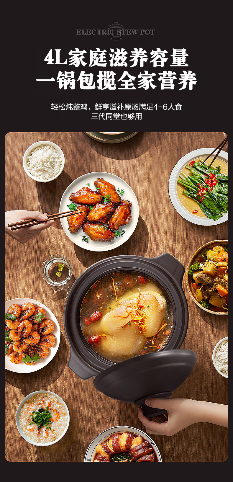 | Menu Function | Steamed Egg Custard,Stew/Poach Meat,Cook Multigrain Porridge,Stewed Fish Maw,Cook White Porridge,Bird's Nest,Nutritional Steaming,Stewed Dessert |